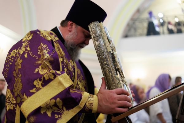 В завершение духовенство и миряне совершили поклонение Кресту.