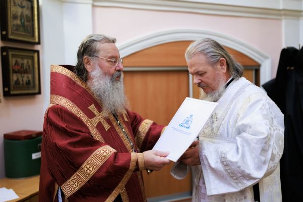 Его Высокопреосвященству сослужили наместник Богородицкой обители игумен Марк (Виленский), клирик храма благоверного князя Александра Невского города Казани протоиерей Сергий Хохлов, насельники монастыря в священном сане.