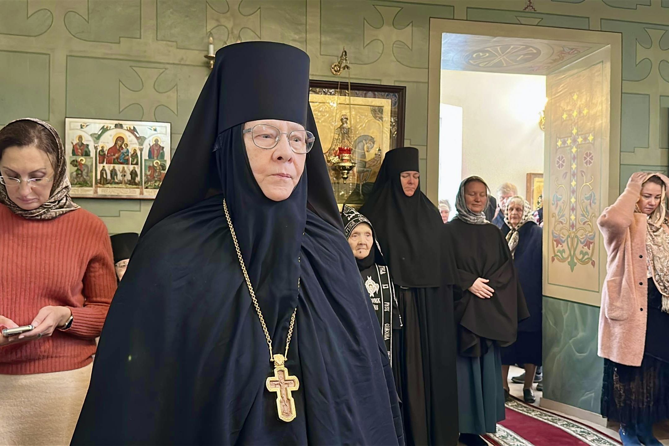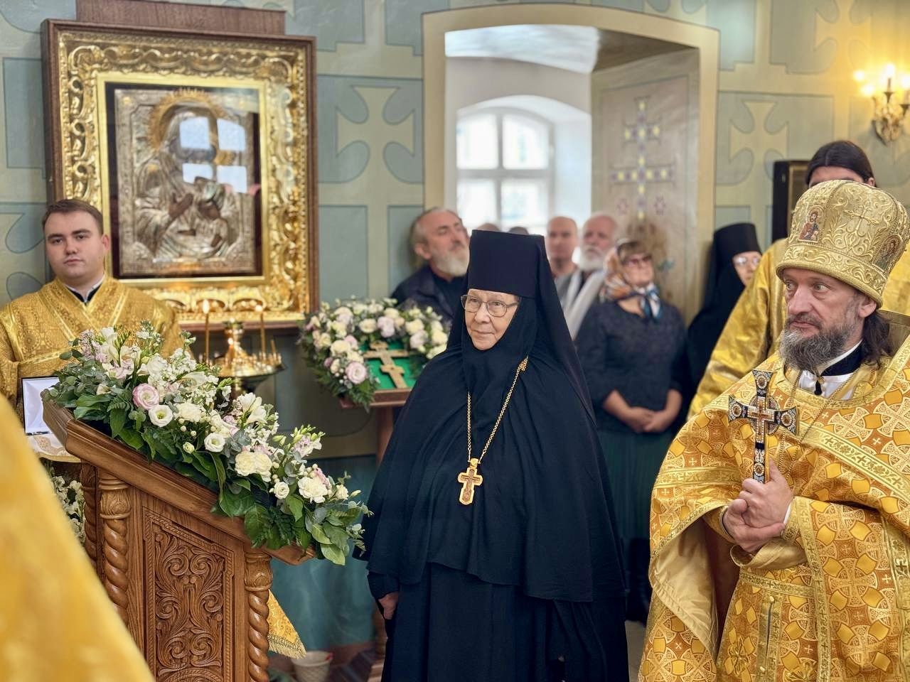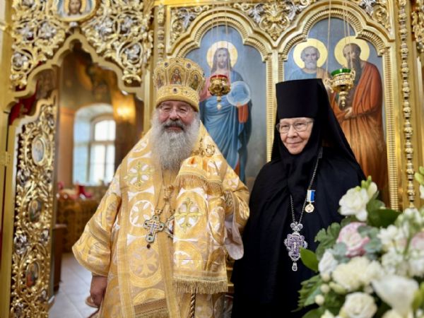 Владыка Кирилл тепло поздравил игумению Евстолию с наступившим 70-летием со дня рождения. Архипастырь вручил настоятельнице обители медаль Казанской иконы Божией Матери и передал в дар наперсный крест с украшениями.