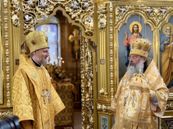 Сегодняшний день всегда должен быть памятным для нас, ведь освящение храма — это вселенское торжество, день утверждения Божиего престола, на котором будет совершаться Божественная Евхаристия. Само слово «Евхаристия» означает «благодарение». Сегодня также мы молитвенно совершаем праздник святителя Димитрия Ростовского, и многие-многие верующие в этот день утешаются у его святых мощей. Мы же сегодня утешаемся любовью и трудами владыки Феоктиста, матушки игумении, сестёр, прихожан обители здесь, в этом новоосвященном храме. Благодарим Бога, святителя Николая, первоверховных апостолов Петра и Павла, которые сподобили нас в этот день быть здесь, совершить и освящение престола, и Божественную литургию.