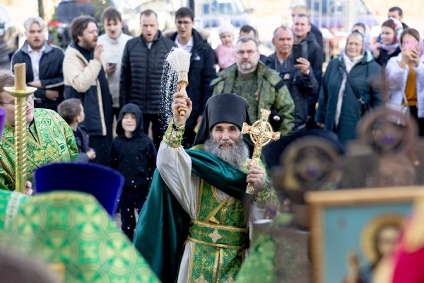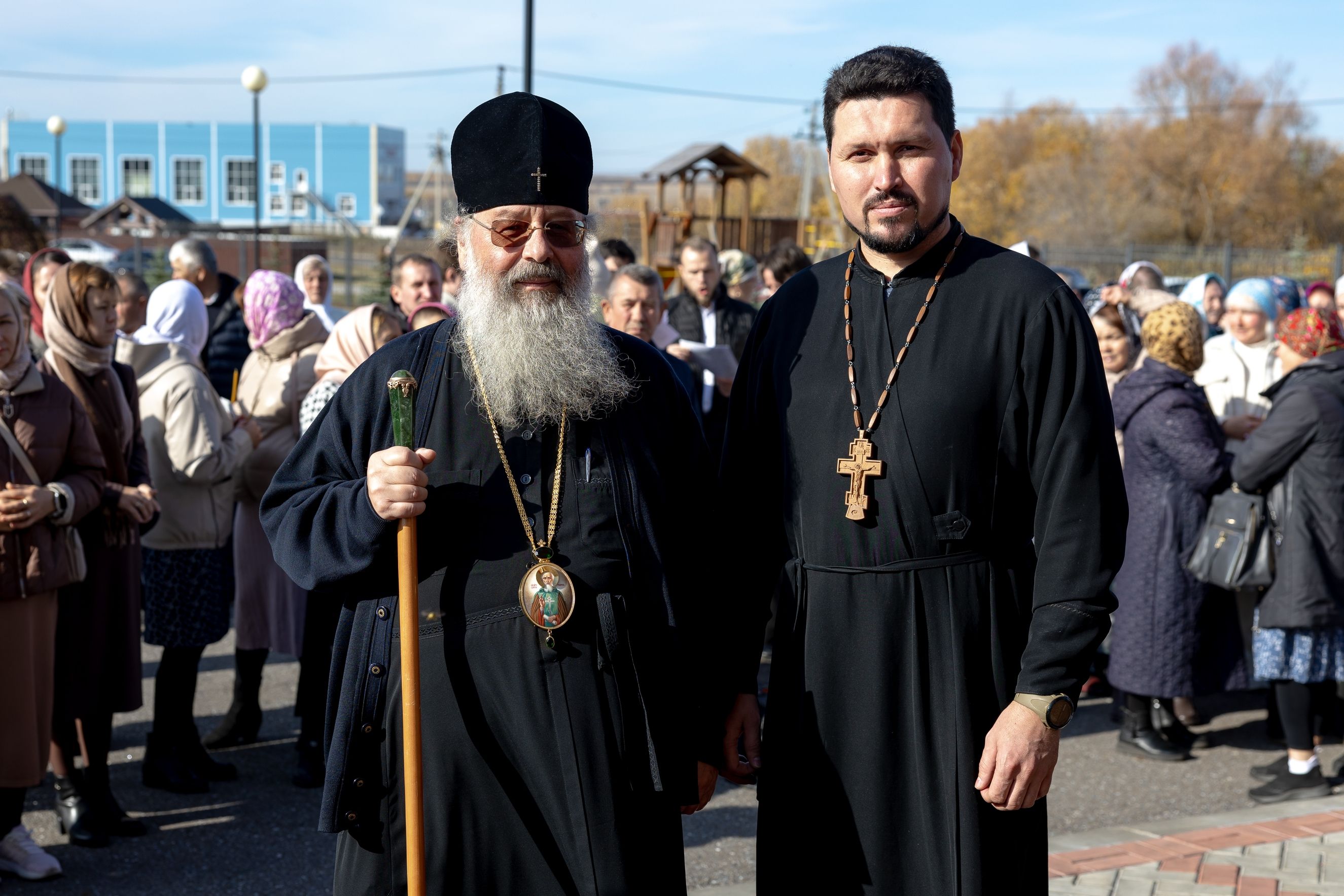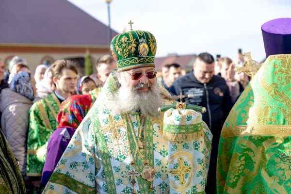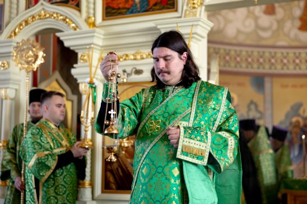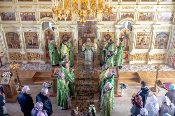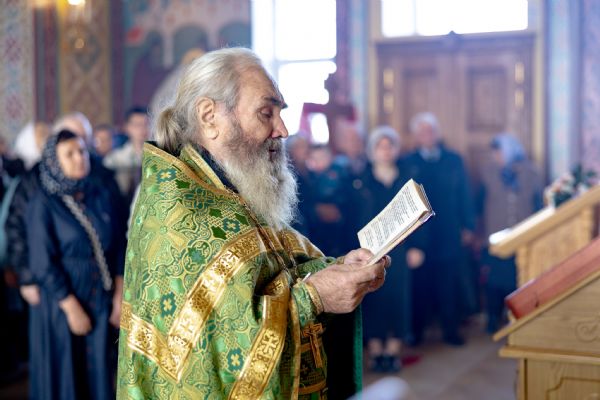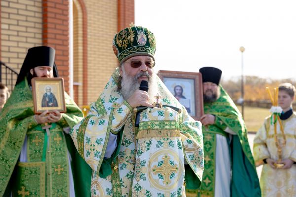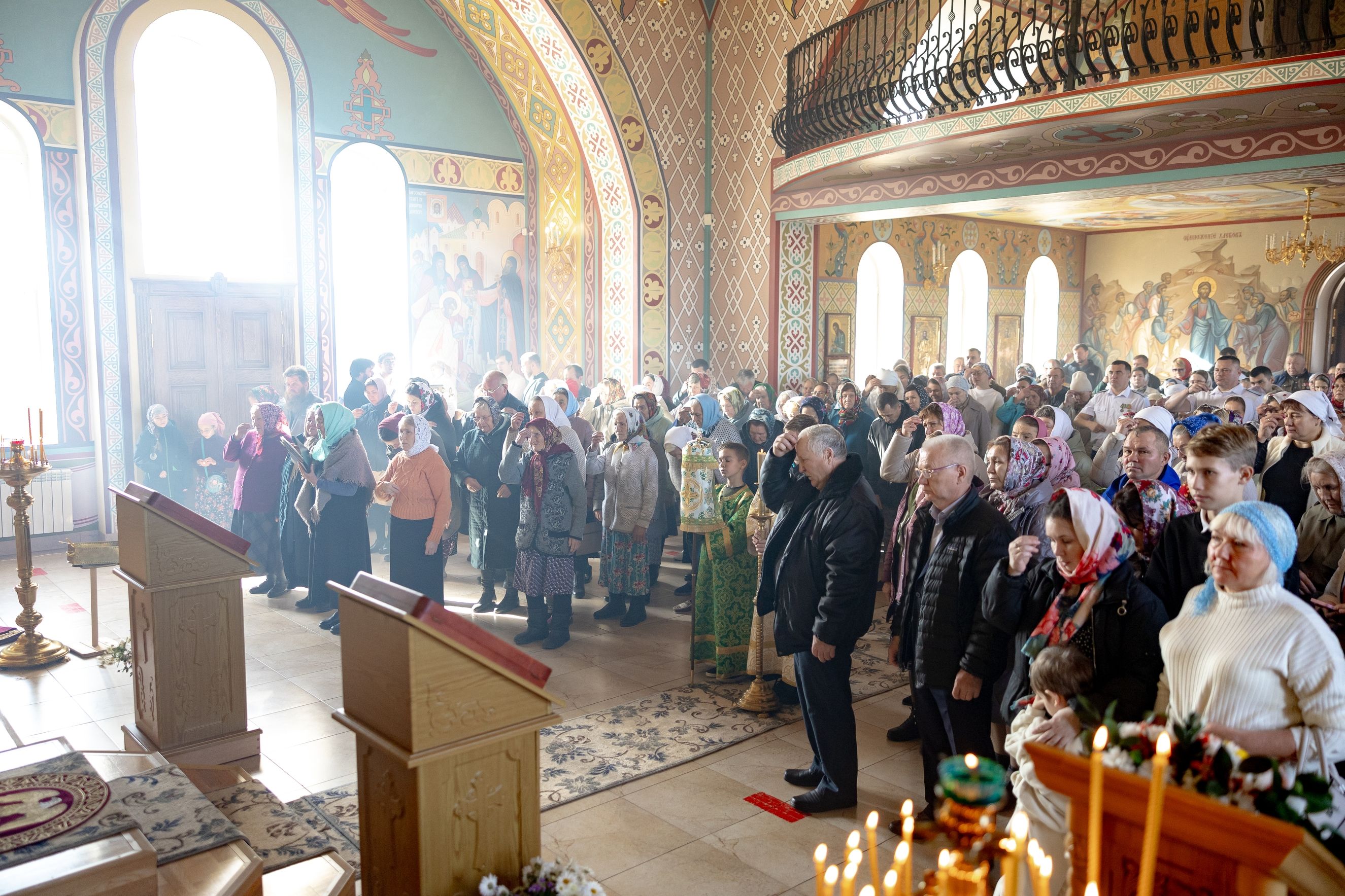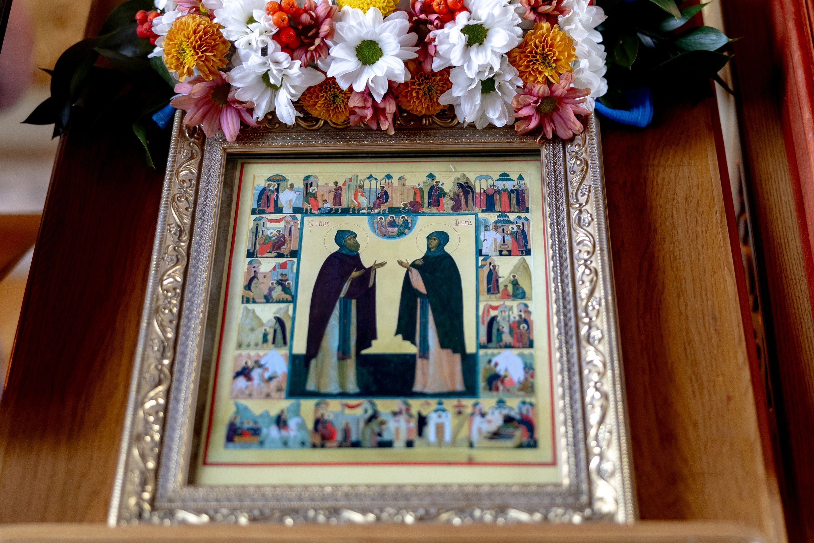 Мы совершаем праздничное богослужение в год 10-летия освящения этого святого храма. Великое освящение совершил владыка Феофан 15 августа 2015 года. Строительство храма во имя преподобного Сергия Радонежского, Игумена Земли Русской, стало очень радостным и утешительным событием. Сегодня совершается память преподобных Кирилла и Марии, родителей преподобного Сергия. Утешительно, что именно в родительский день мы сугубо прославляем родителей этого великого святого. Некоторые участники сегодняшнего богослужения несколько дней назад побывали на празднике преподобного Сергия в Лавре, помолились у его святых мощей. Мы передаём всем вам благословение от мощей преподобного старца Сергия. Дай вам Бог всего самого доброго, радостного, благословенного и утешительного! Желаю вам подлинной духовной радости.