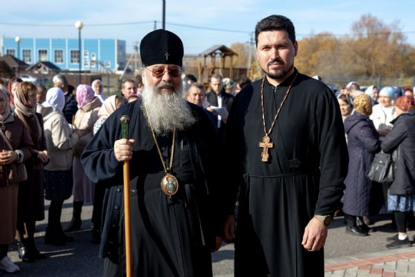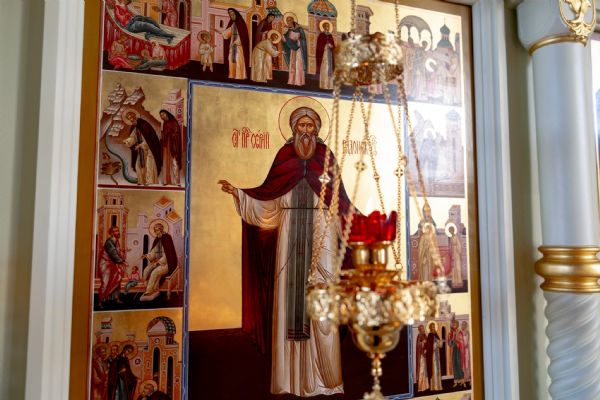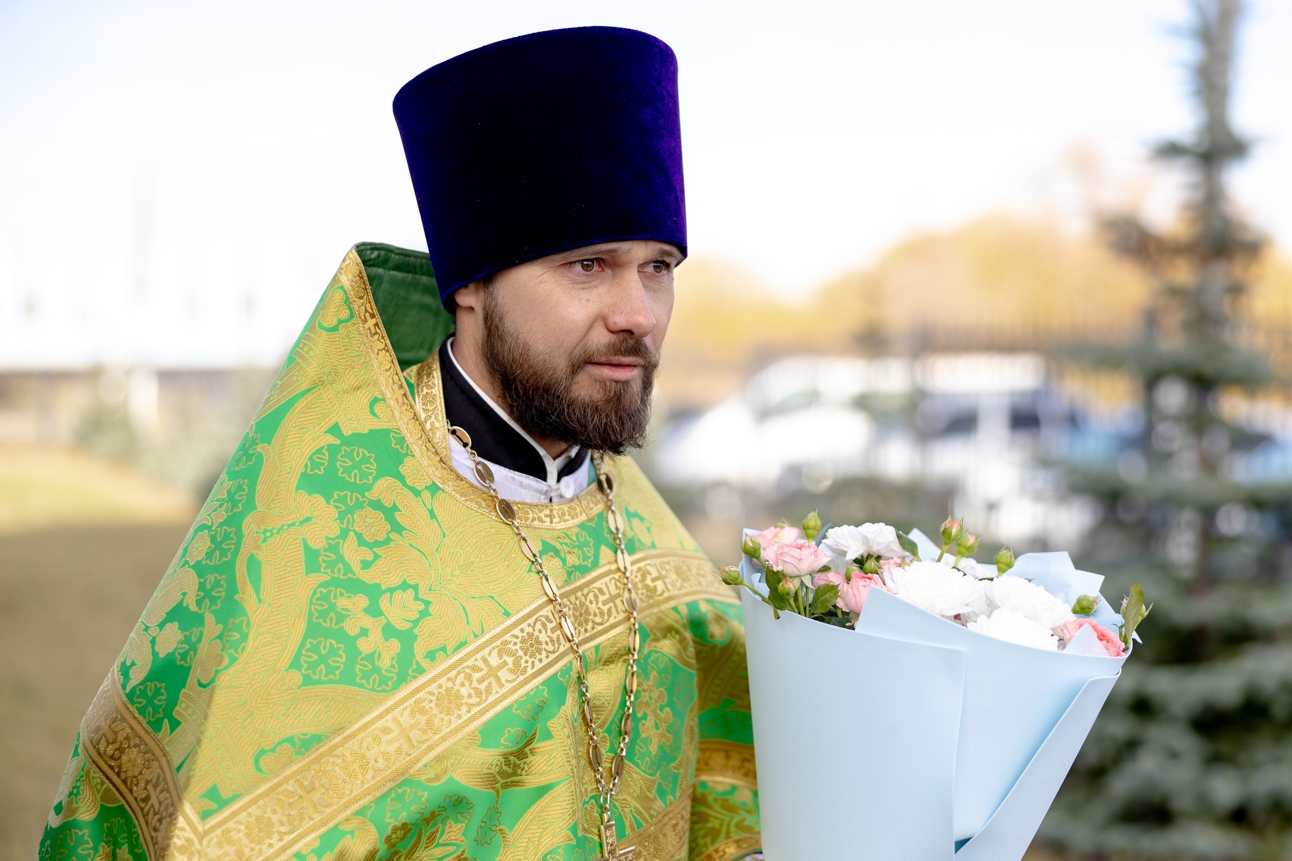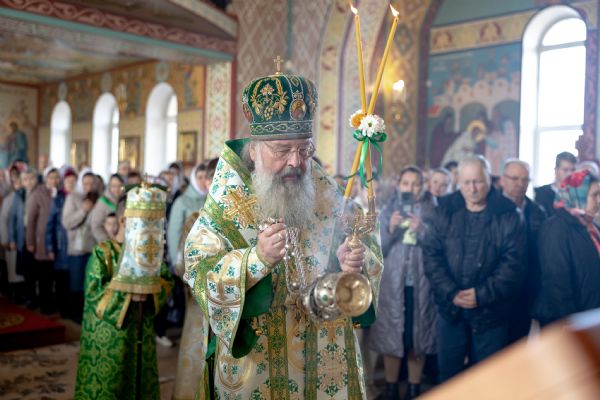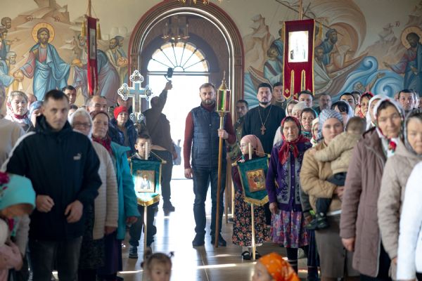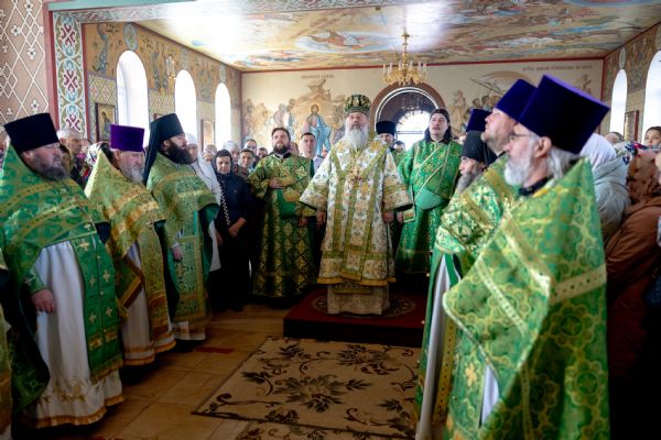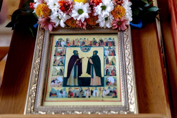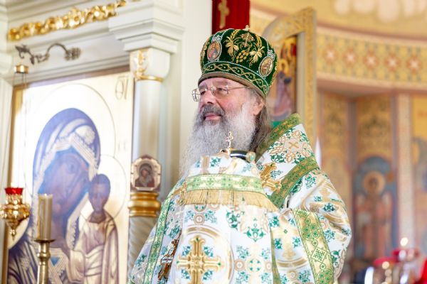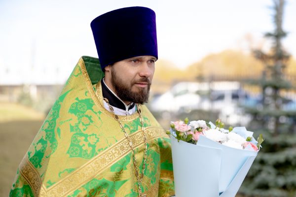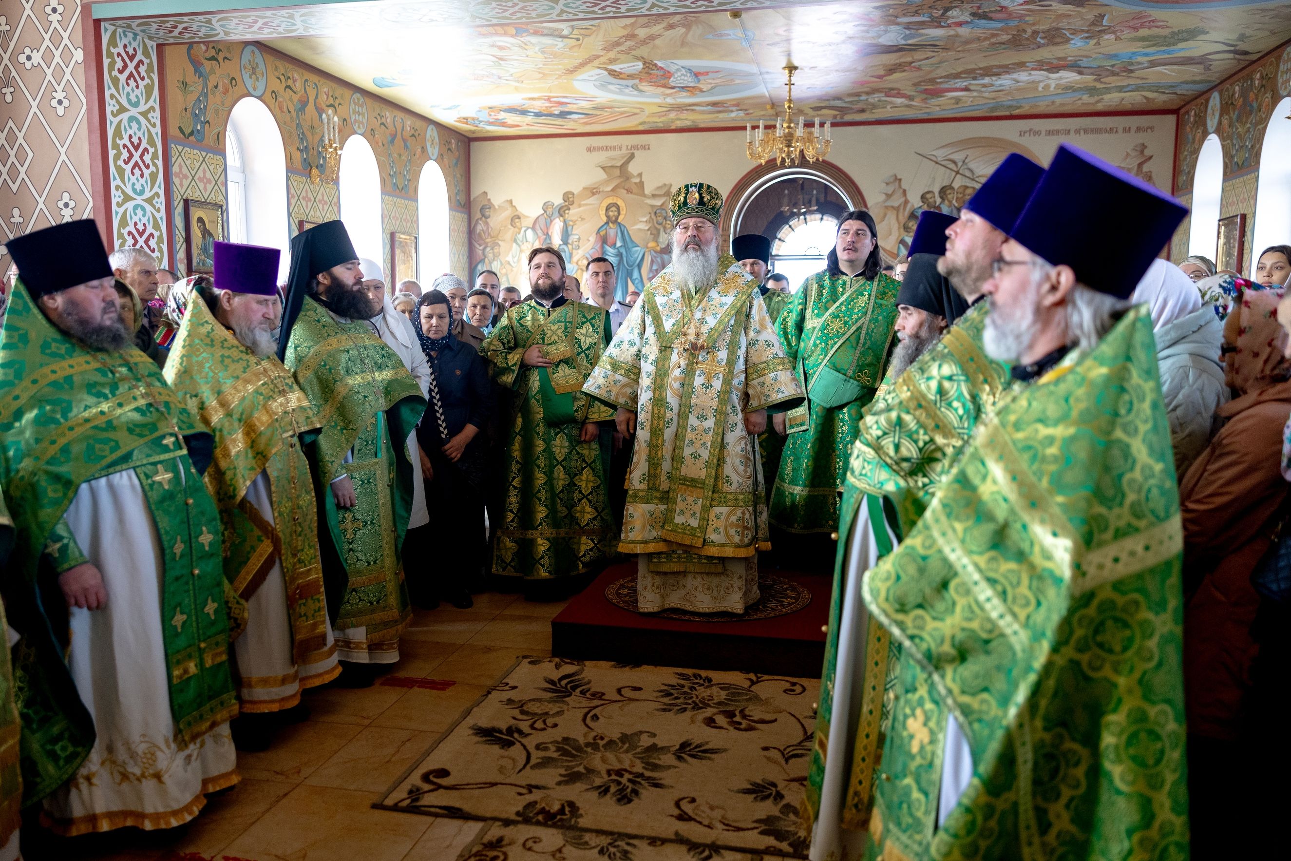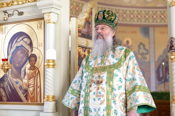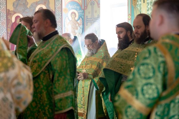 Мы совершаем праздничное богослужение в год 10-летия освящения этого святого храма. Великое освящение совершил владыка Феофан 15 августа 2015 года. Строительство храма во имя преподобного Сергия Радонежского, Игумена Земли Русской, стало очень радостным и утешительным событием. Сегодня совершается память преподобных Кирилла и Марии, родителей преподобного Сергия. Утешительно, что именно в родительский день мы сугубо прославляем родителей этого великого святого. Некоторые участники сегодняшнего богослужения несколько дней назад побывали на празднике преподобного Сергия в Лавре, помолились у его святых мощей. Мы передаём всем вам благословение от мощей преподобного старца Сергия. Дай вам Бог всего самого доброго, радостного, благословенного и утешительного! Желаю вам подлинной духовной радости.