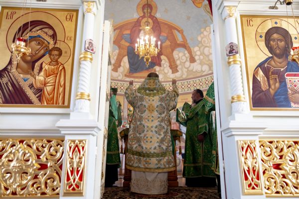 На мирной и сугубых ектениях были вознесены молитвы о Российском воинстве и о мире.