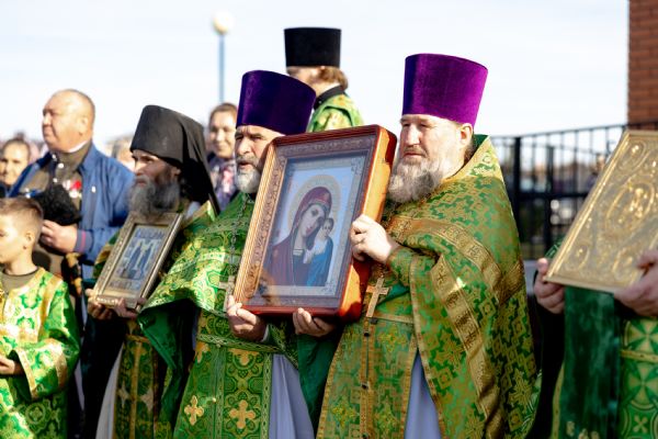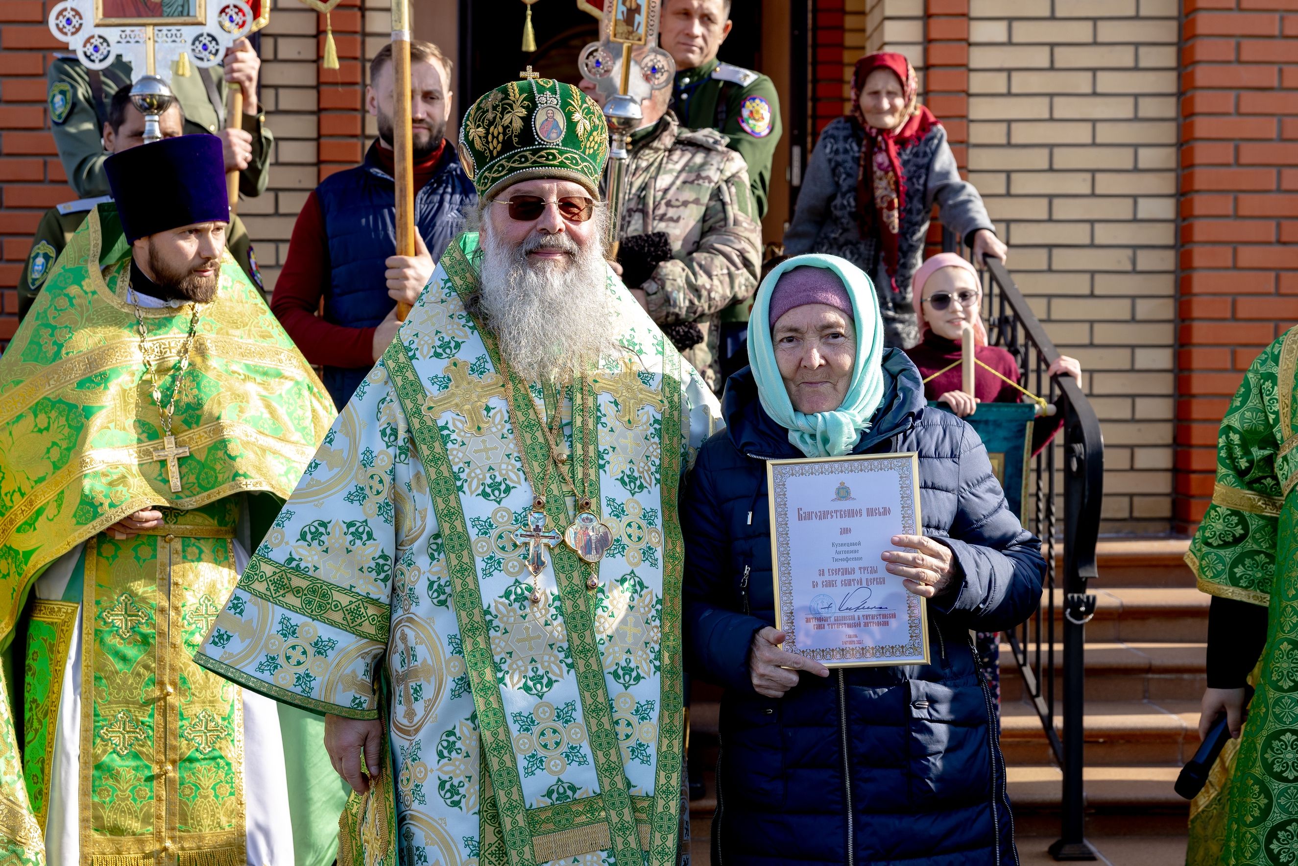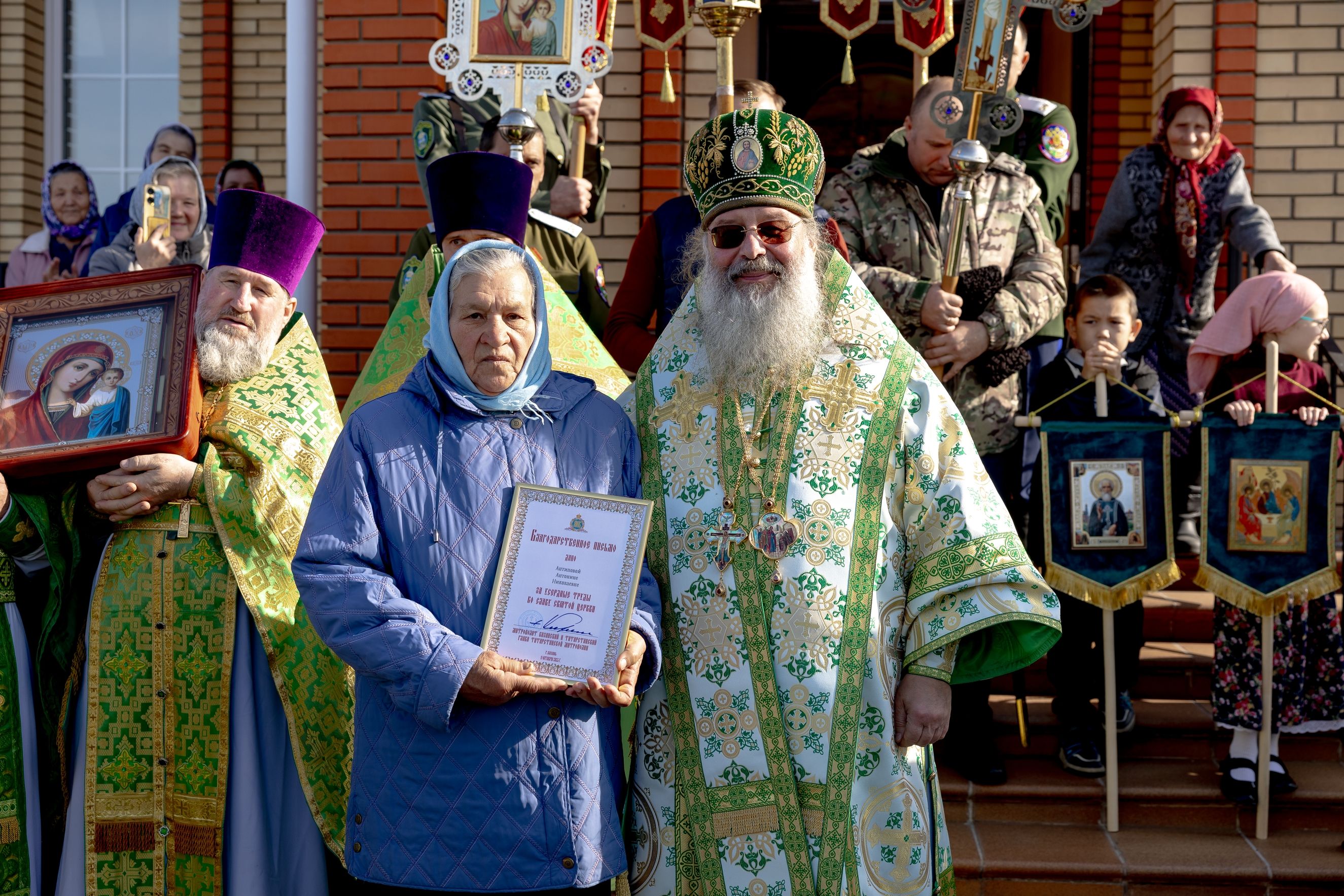 Прихожанам на молитвенную память вручили Казанские иконы Божией Матери с Патриаршим благословением.