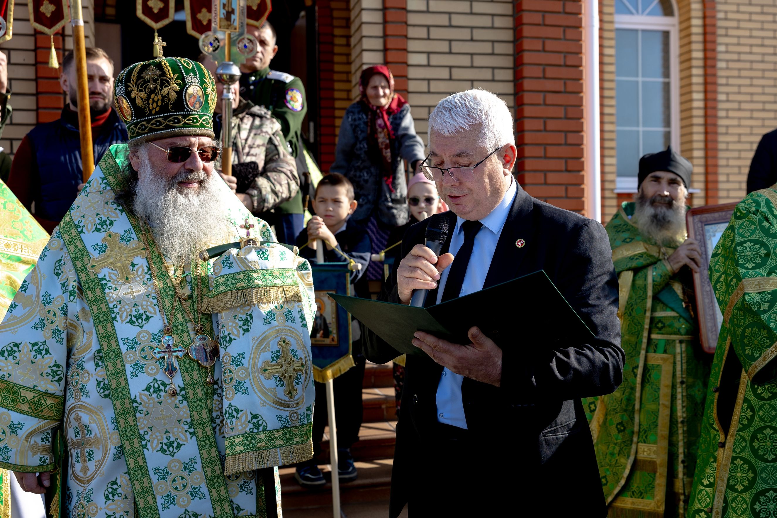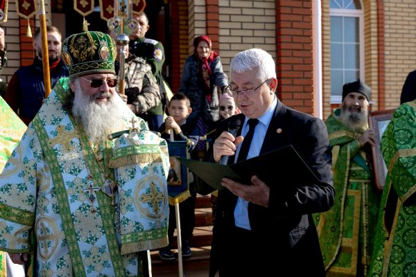 Заместитель главы Дрожжановского муниципального района Алексей Ярухин поблагодарил митрополита Кирилла за попечение о приходах Дрожжановского района и поздравил жителей с праздником.