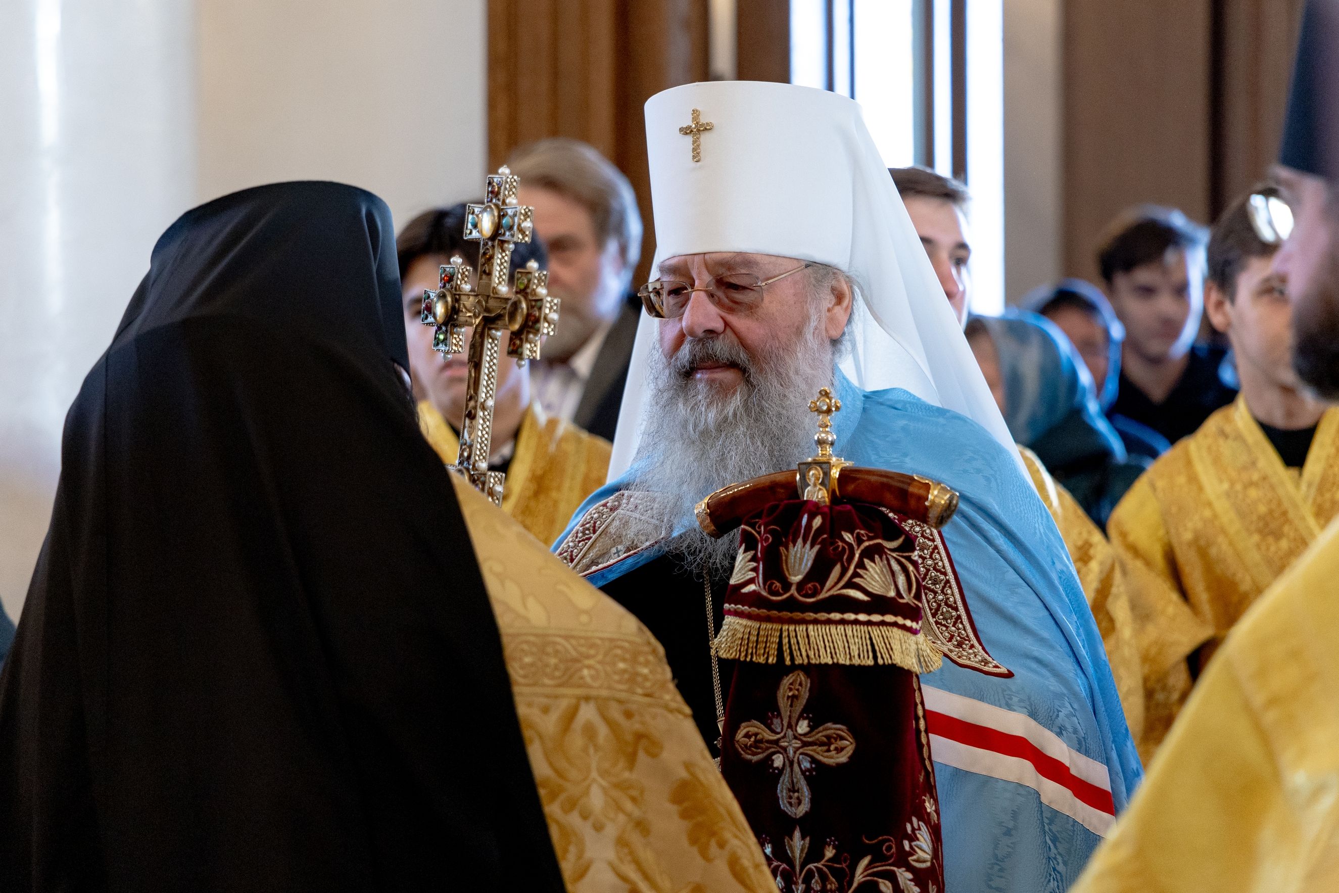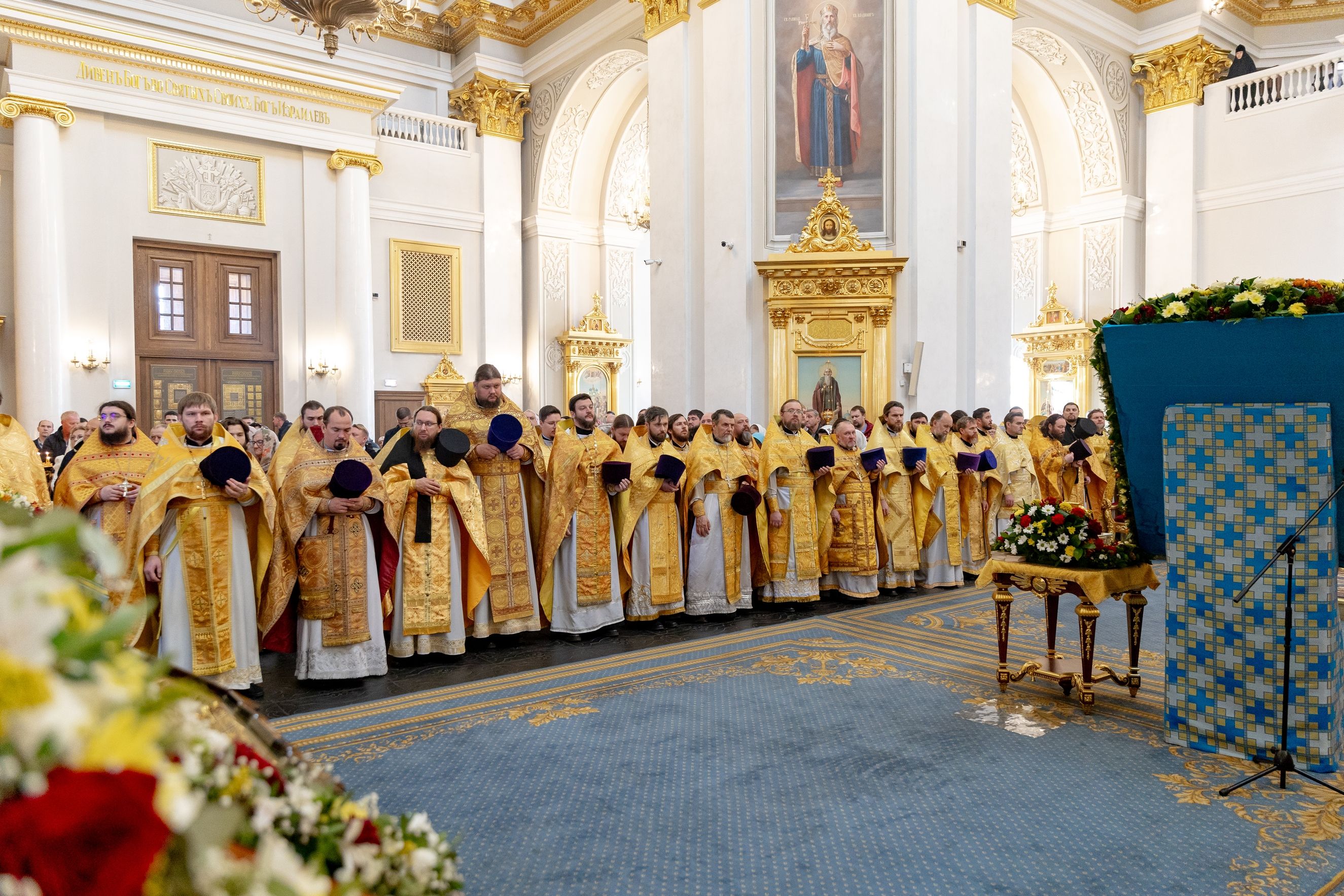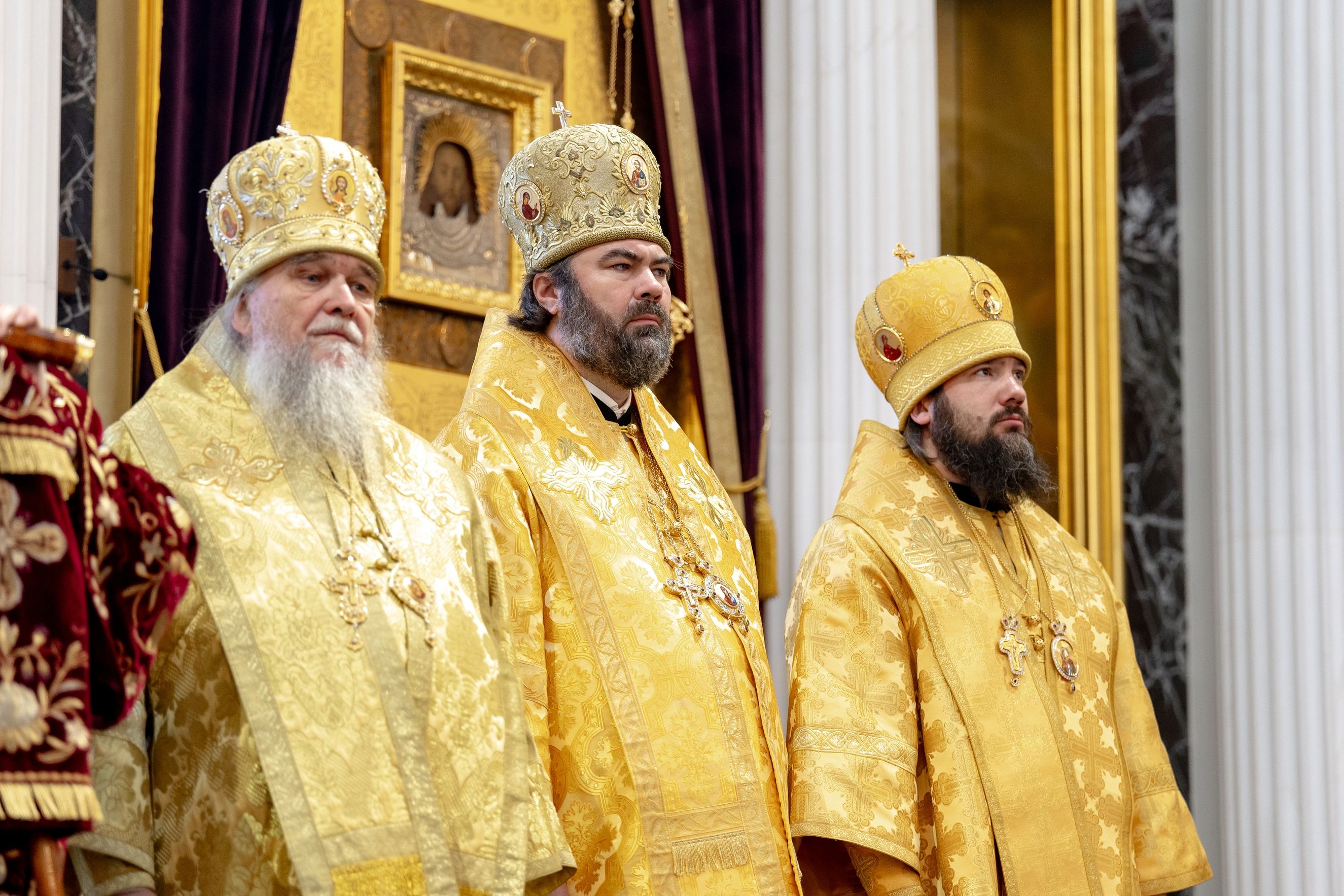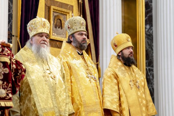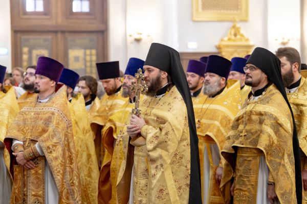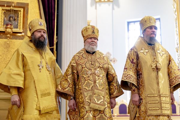 Архипастырям сослужили секретарь Татарстанской митрополии иеромонах Кирилл (Корытко), наместник Казанского Богородицкого монастыря игумен Марк (Виленский), благочинный монастырей Казанской епархии игумен Пимен (Ивентьев), наместник Раифского Богородицкого мужского монастыря игумен Гавриил (Рожнов), настоятель Иоанно-Предтеченского мужского монастыря города Казани игумен Аркадий (Логинов), духовенство Татарстанской митрополии.