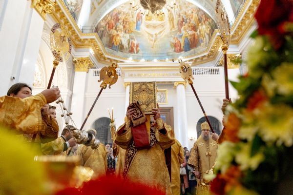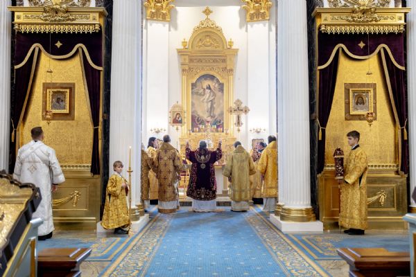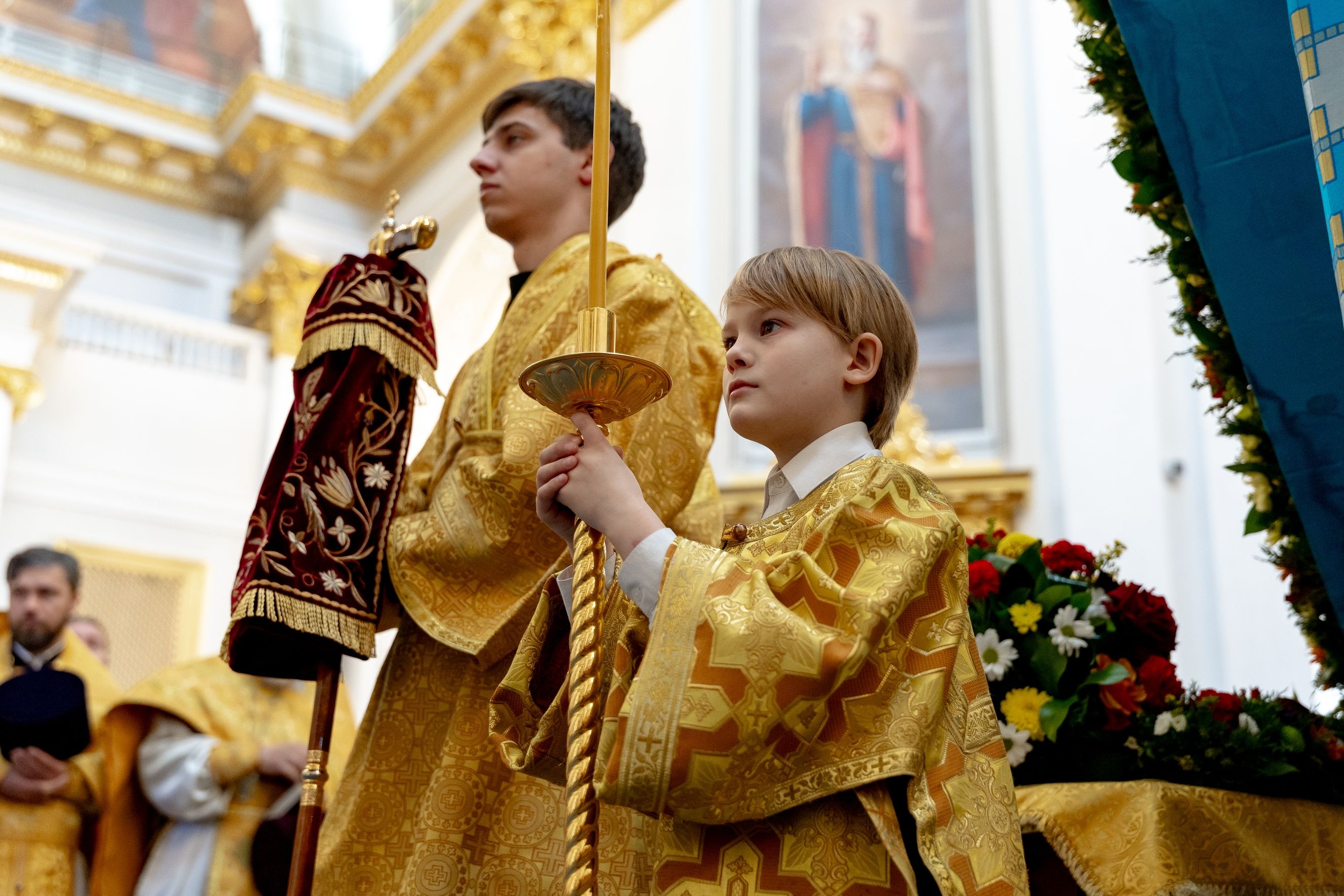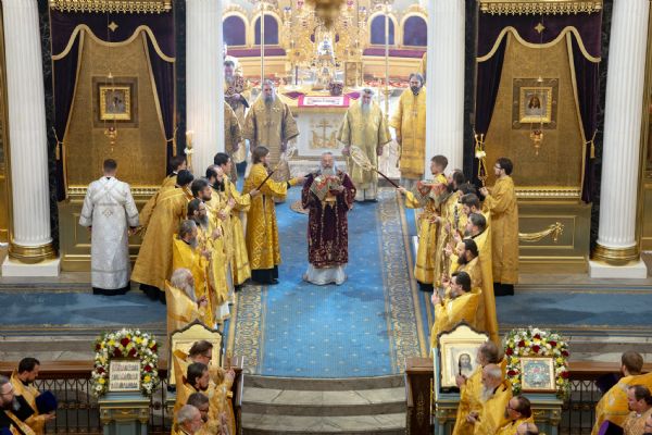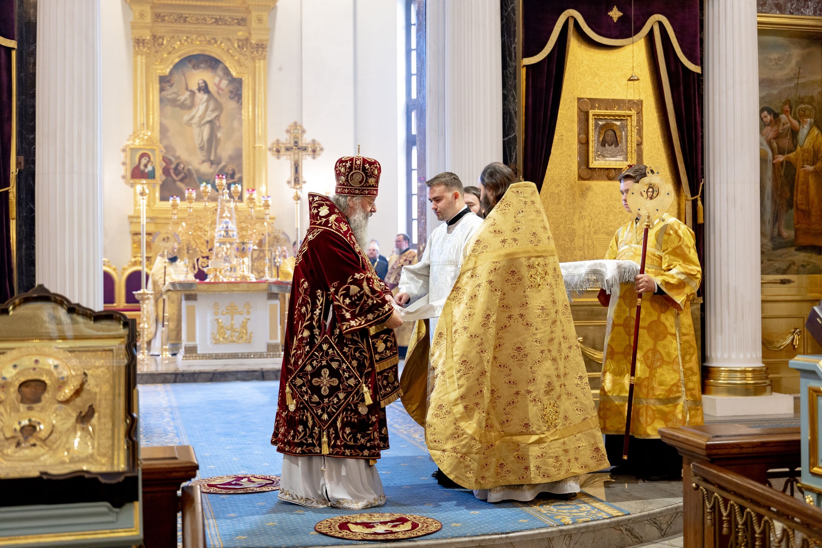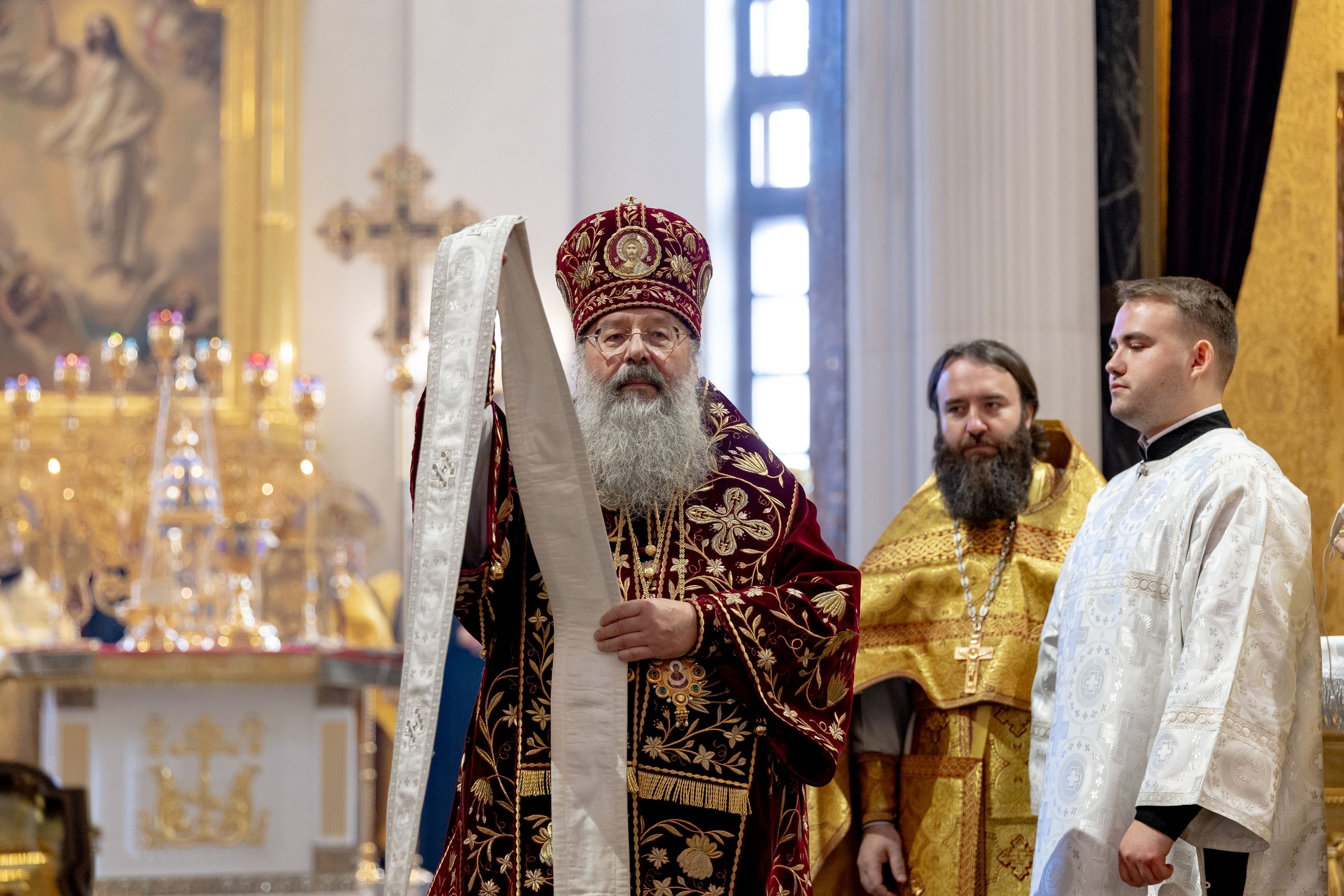 На середине храма для молитвенного поклонения верующих был установлен ковчег с частицей мощей святителя Луки Крымского, принесённый накануне в Казанский собор.