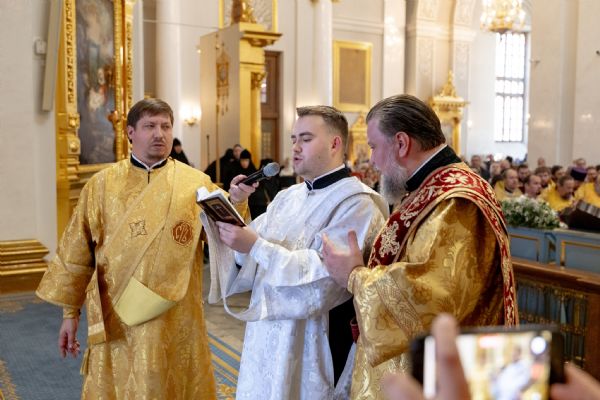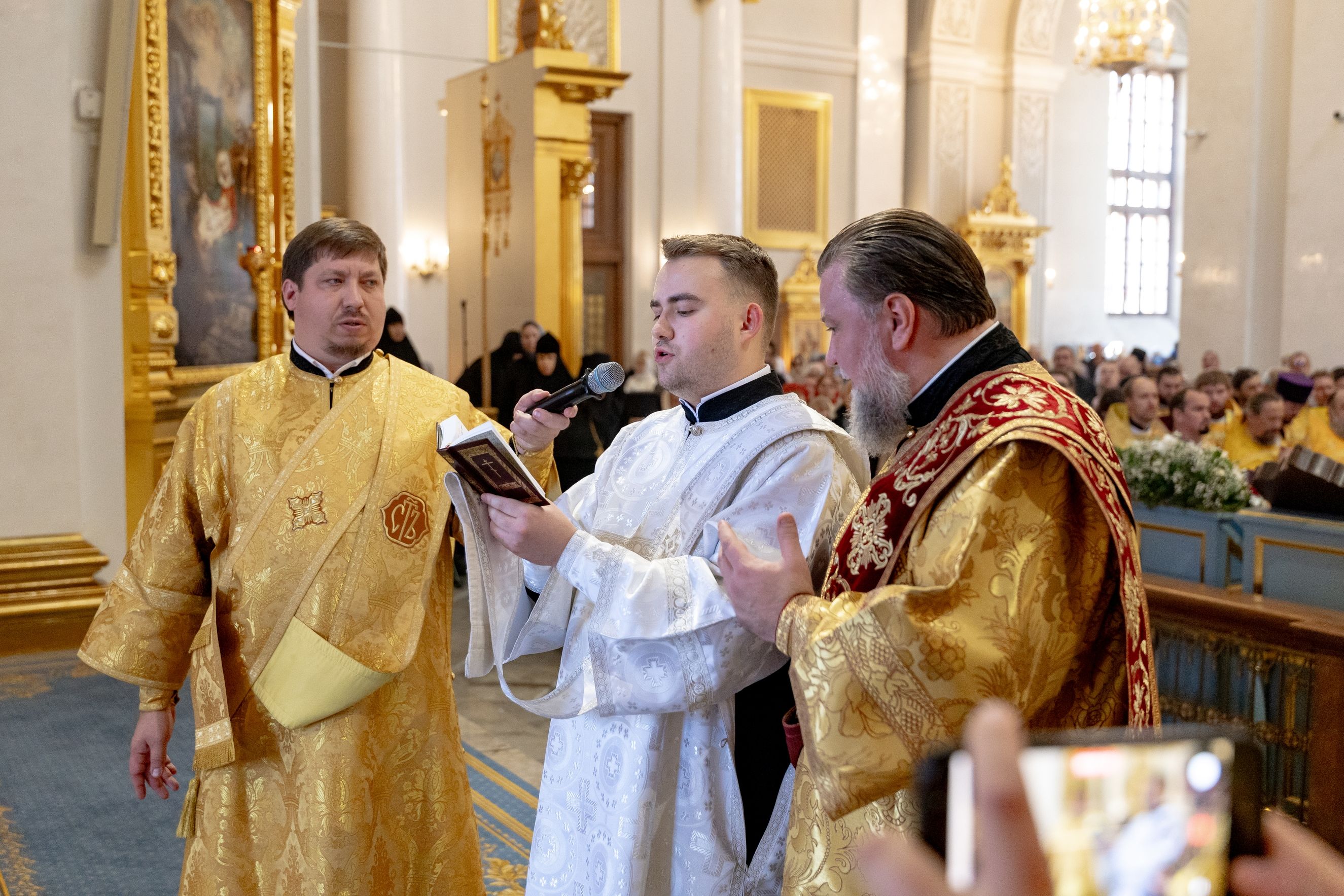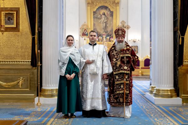 Владыка Кирилл сугубо поздравил диакона Романа Ермолаева с принятием священного сана и пожелал ему помощи Божией в несении церковных трудов.