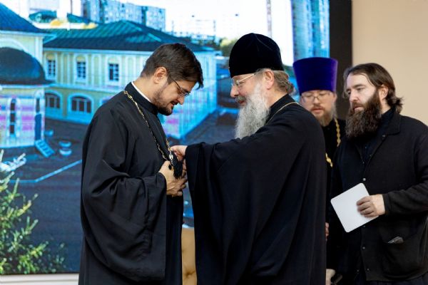 В завершение владыка Кирилл поблагодарил представителя Отдела внешних церковных связей за выступление и вручил отцу Стефану медаль святителя Гурия Казанского II степени.
