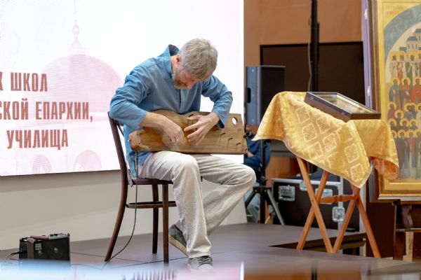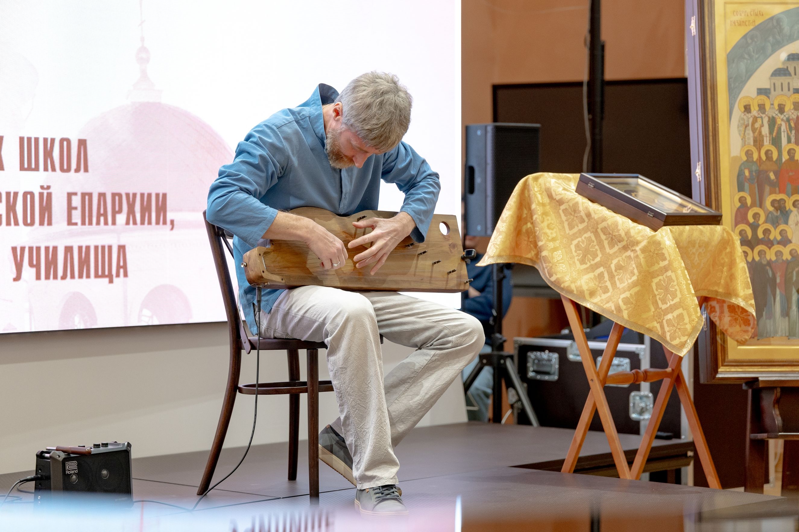 Затем состоялось выступление вокального ансамбль «Голубица» и гусляра, участника фолк-коллектива «Медвежий угол» Михаила Вырина. В завершение для гостей была организована экскурсия по выставке.