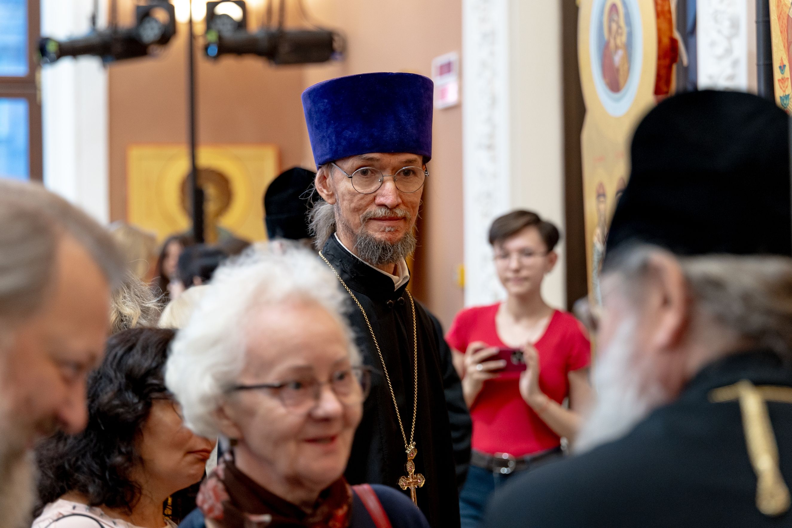 Хотел бы поблагодарить всех иконописцев за предоставленные прекрасные работы. Выражаю сугубую благодарность вам, Ольга Александровна, за возможность экспонировать эти святые иконы в этом красивом зале художественного училища. Очень рад, что у нас есть замечательные мастера, продолжатели традиций преподобных Андрея Рублёва, Феофана Грека и других выдающихся русских иконописцев, благодаря которым мы можем хотя бы краешком своего внутреннего естества соприкоснуться с небом.