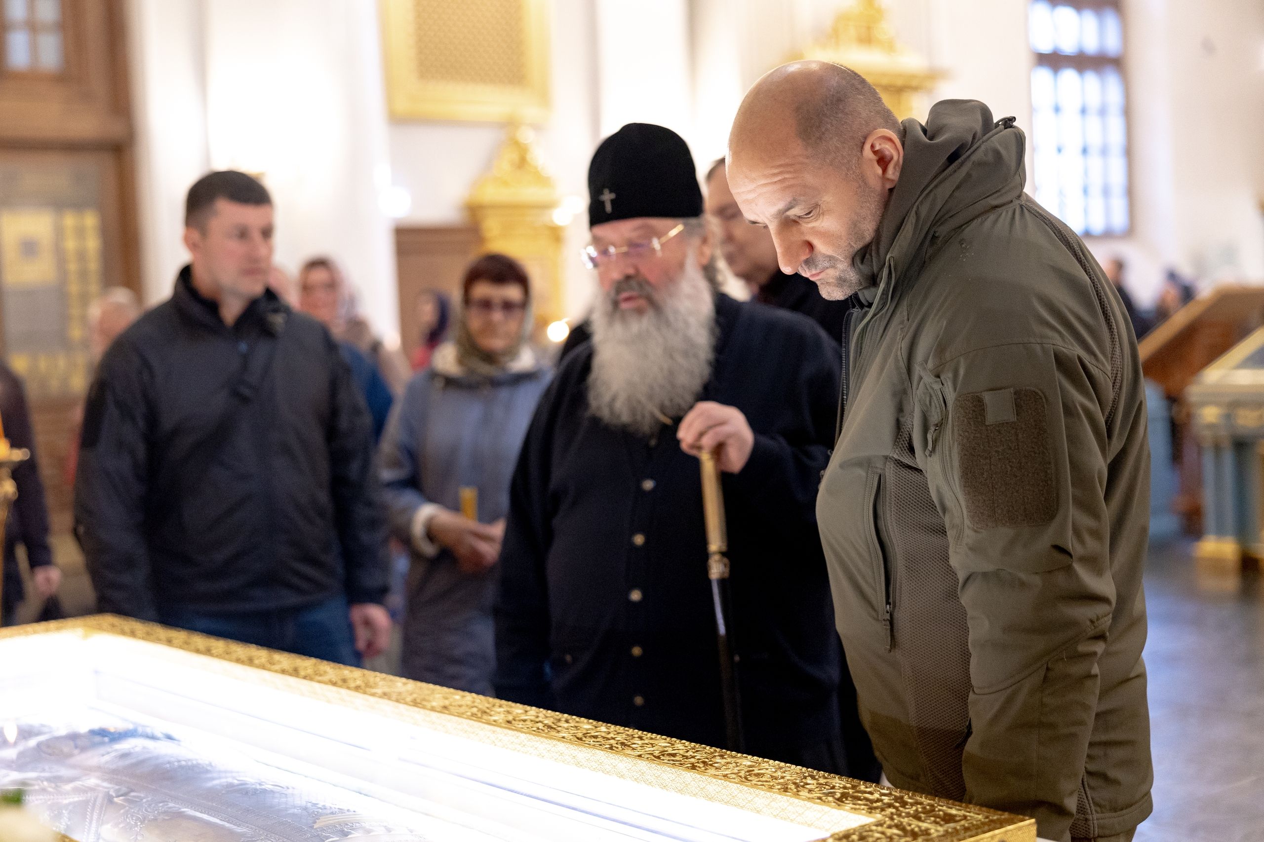 В сопровождении правящего архиерея политический деятель посетил кафедральный собор Казанской иконы Божией Матери. Владыка рассказал высокому гостю об истории собора и основных этапах его воссоздания. Артем Жога ознакомился с убранством храма, помолился перед чудотворной Казанской иконой Божией Матери и приложился к окладу первоявленного образа Царицы Небесной. Представитель власти также посетил Пещерный храм в честь Рождества Пресвятой Богородицы в подземной части Казанского собора.
