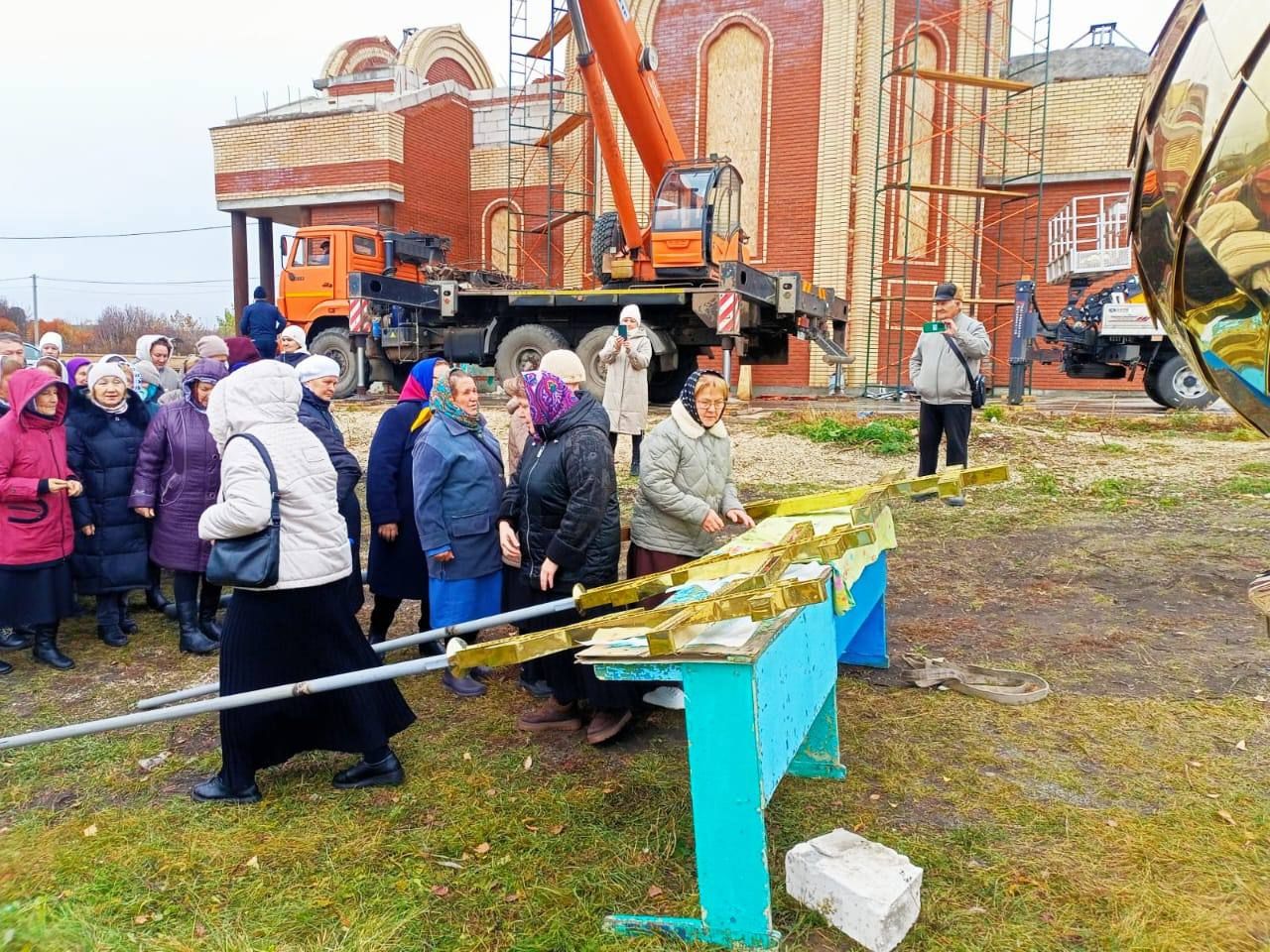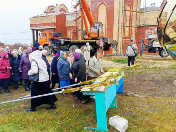 После завершения чина освящения купола и кресты были установлены на строящиеся храм.