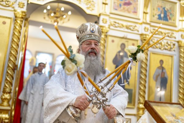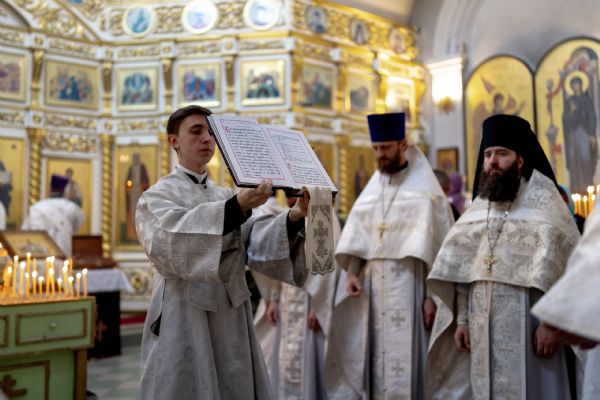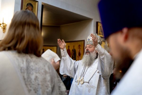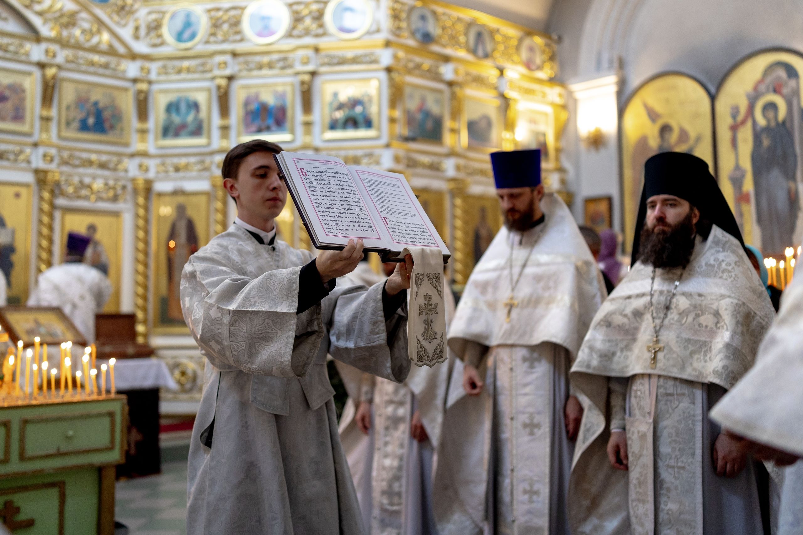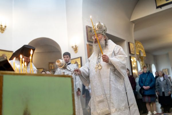 На мирной и сугубой ектениях были вознесены молитвы о Российском воинстве и о мире. Также за богослужением возносились сугубые молитвы об упокоении души приснопамятного архиепископа Михея (Хархарова), который отошёл ко Господу ровно 20 лет назад.