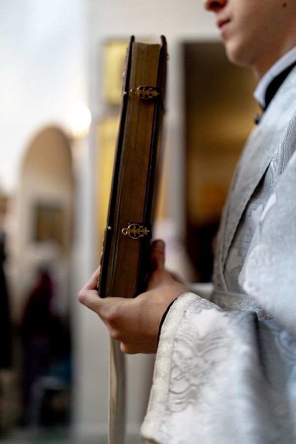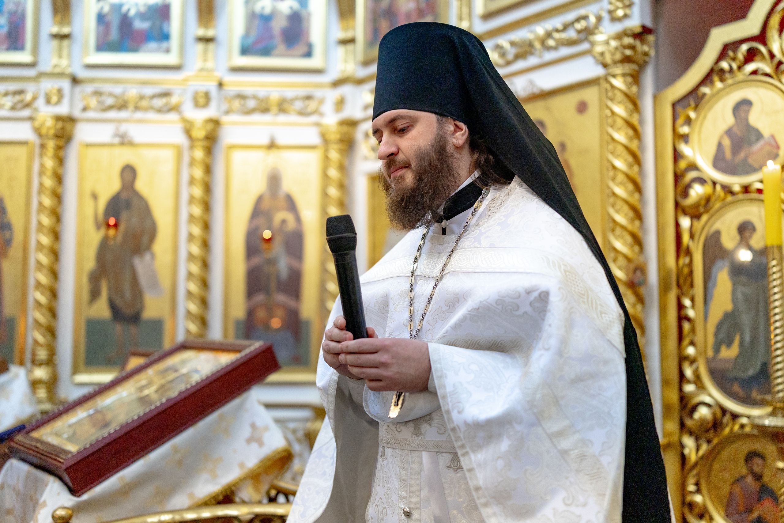 По запричастном стихе иеромонах Кирилл (Корытко) произнёс проповедь, посвящённую жизни и служению архиепископа Михея.