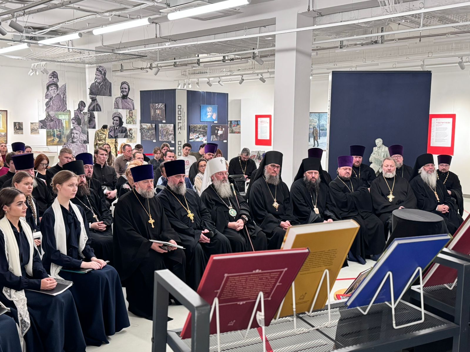 Перед началом презентации хор воспитанников духовной школы под управлением Дениса Рогова исполнил тропарь Казанской иконе Божией Матери.