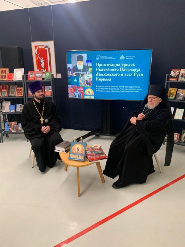 Главный редактор Издательства Московской Патриархии представил новые издания, посвящённые 100-летию со дня блаженной кончины святителя Тихона Московского. Владыка Николай рассказал о выпущенных в Издательстве богослужебных, духовно-просветительских и исторических книгах. Участники встречи познакомились с тематическими книжными сериями «Слово Святейшего Патриарха», «Популярная библиотека отцов и учителей Церкви», «На путях веры», «Каждому человеку», «Наша Победа» и др.
