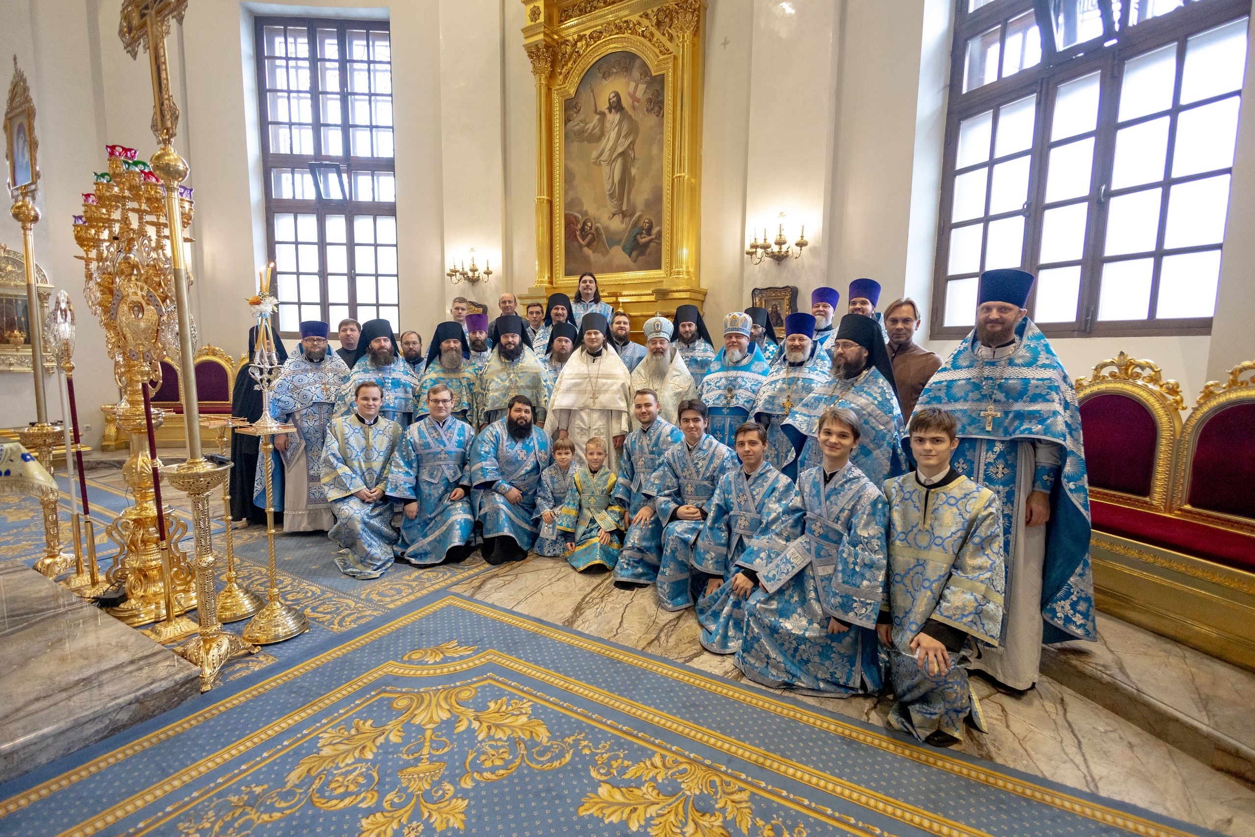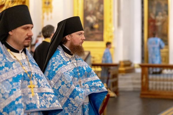 Его Высокопреосвященству сослужили секретарь Татарстанской митрополии иеромонах Кирилл (Корытко), наместник Казанского Богородицкого монастыря игумен Марк (Виленский), благочинный монастырей Казанской епархии игумен Пимен (Ивентьев), наместник Свияжского Иоанно-Предтеченского монастыря игумен Аркадий (Логинов), настоятель Иоанно-Предтеченского мужского монастыря города Казани игумен Алексий (Яцейко), ректор Казанской духовной семинарии иерей Никита Кузнецов, благочинные церковных округов, настоятели храмов Казанской епархии.