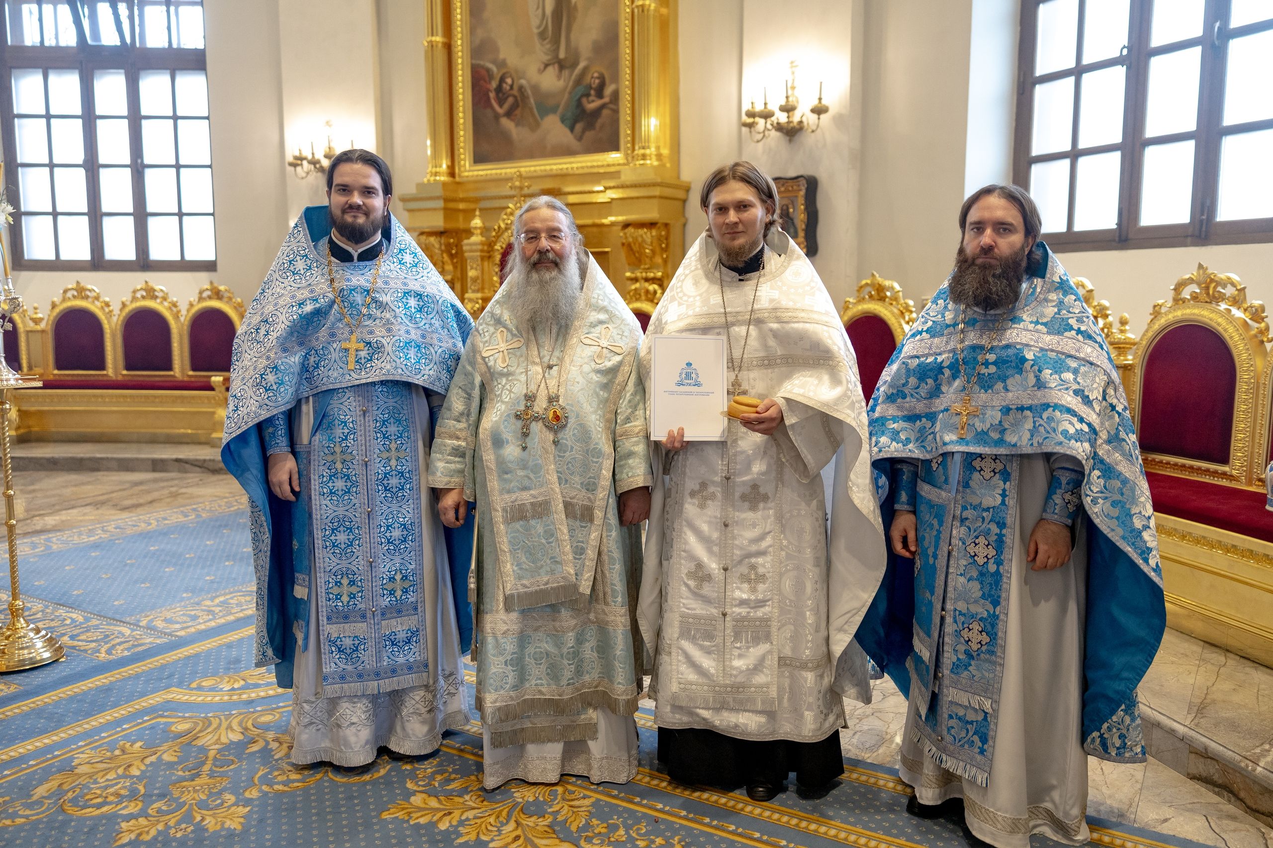 Особые поздравления в сегодняшний день все мы адресуем отцу Платону, который принял благодать священства. Сердечно поздравляю отца Платона! Поздравляю ректора Казанской семинарии отца Никиту с тем, что воспитанники духовной школы становятся пастырями Церкви Христовой! Поздравляю отца игумена Алексия с братией древнего Иоанно-Предтеченского монастыря с тем, что в обители появился ещё один священноинок, который будет совершать Божественные литургии и молиться в этом святом месте.