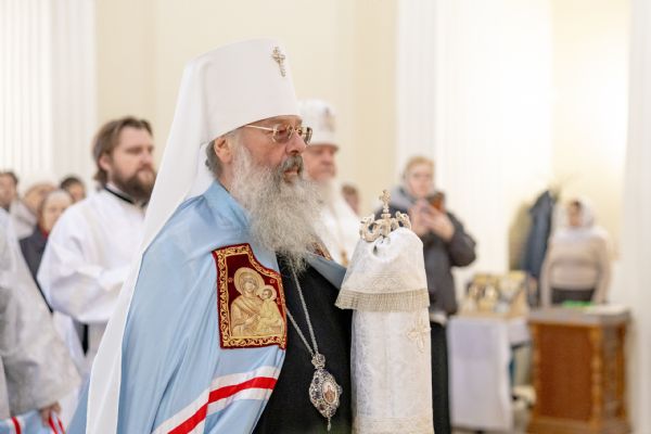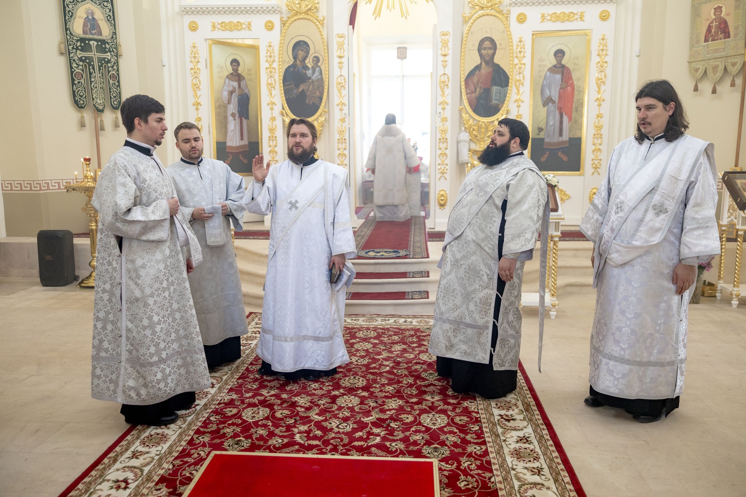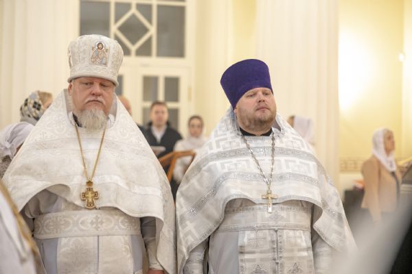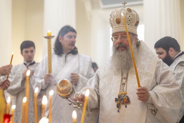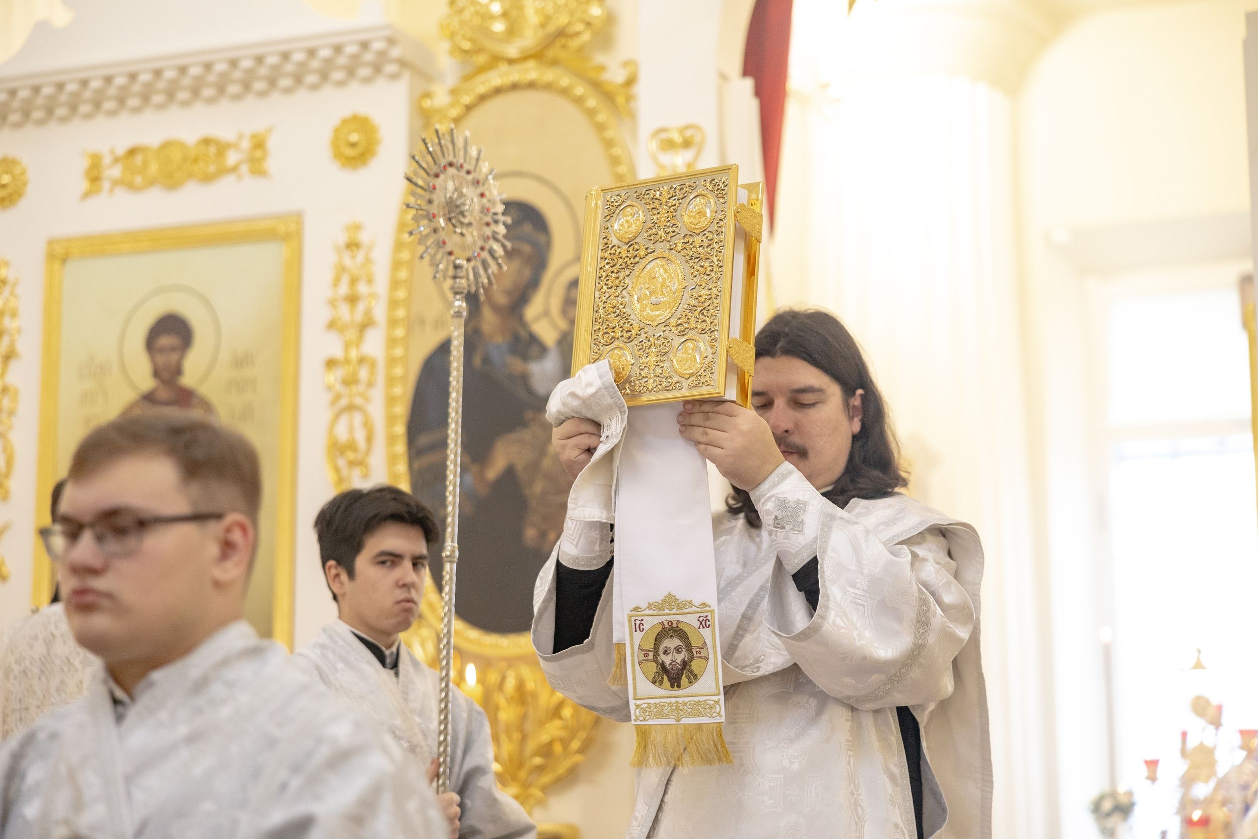 Песнопения исполнил архиерейский смешанный хор под управлением Марины Литвиненко. На мирной и сугубой ектениях были вознесены молитвы о Российском воинстве и о мире. За богослужением также возносились сугубые прошения об упокоении душ вождей и воинов, за веру и Отечество жизнь положивших.