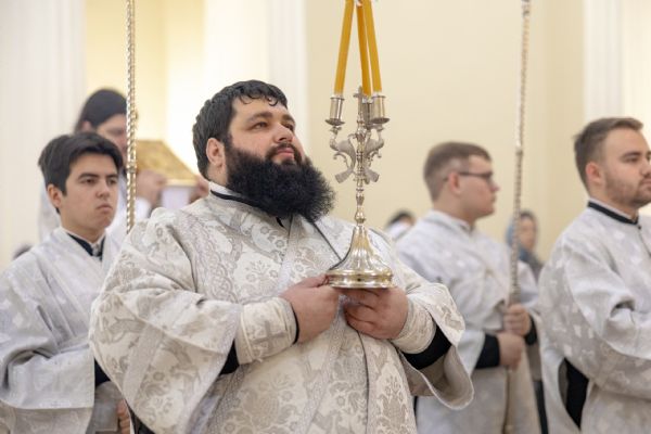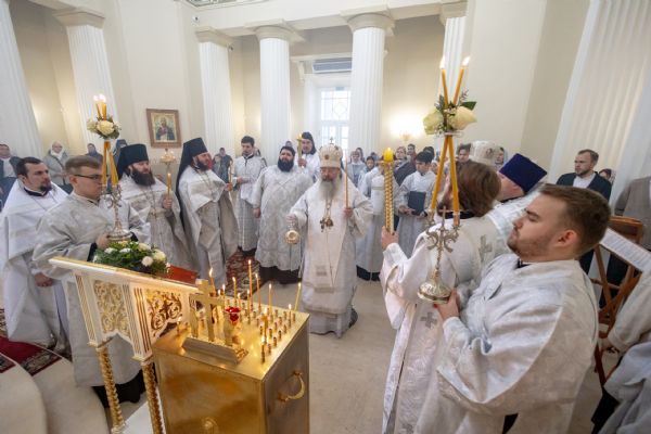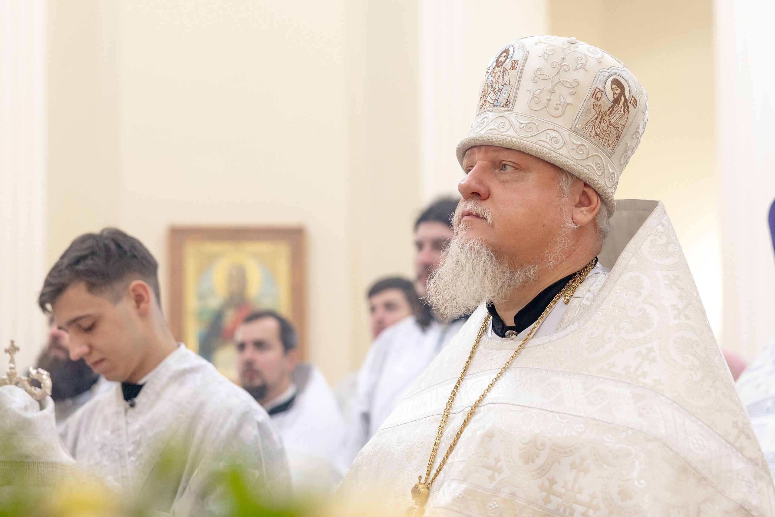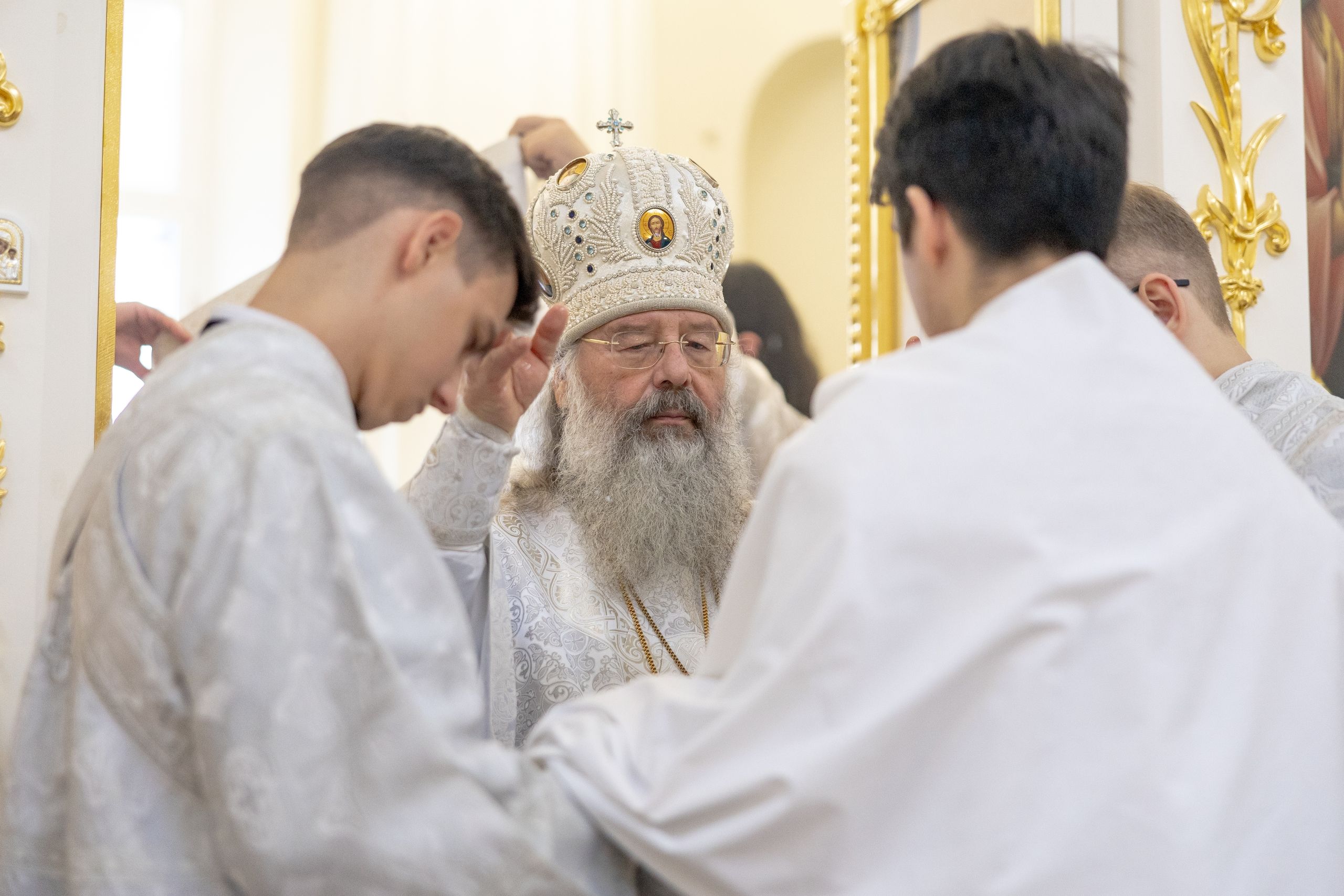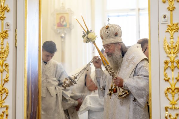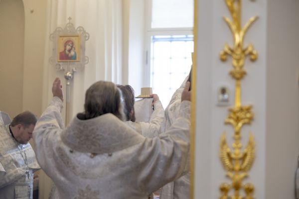 Песнопения исполнил архиерейский смешанный хор под управлением Марины Литвиненко. На мирной и сугубой ектениях были вознесены молитвы о Российском воинстве и о мире. За богослужением также возносились сугубые прошения об упокоении душ вождей и воинов, за веру и Отечество жизнь положивших.