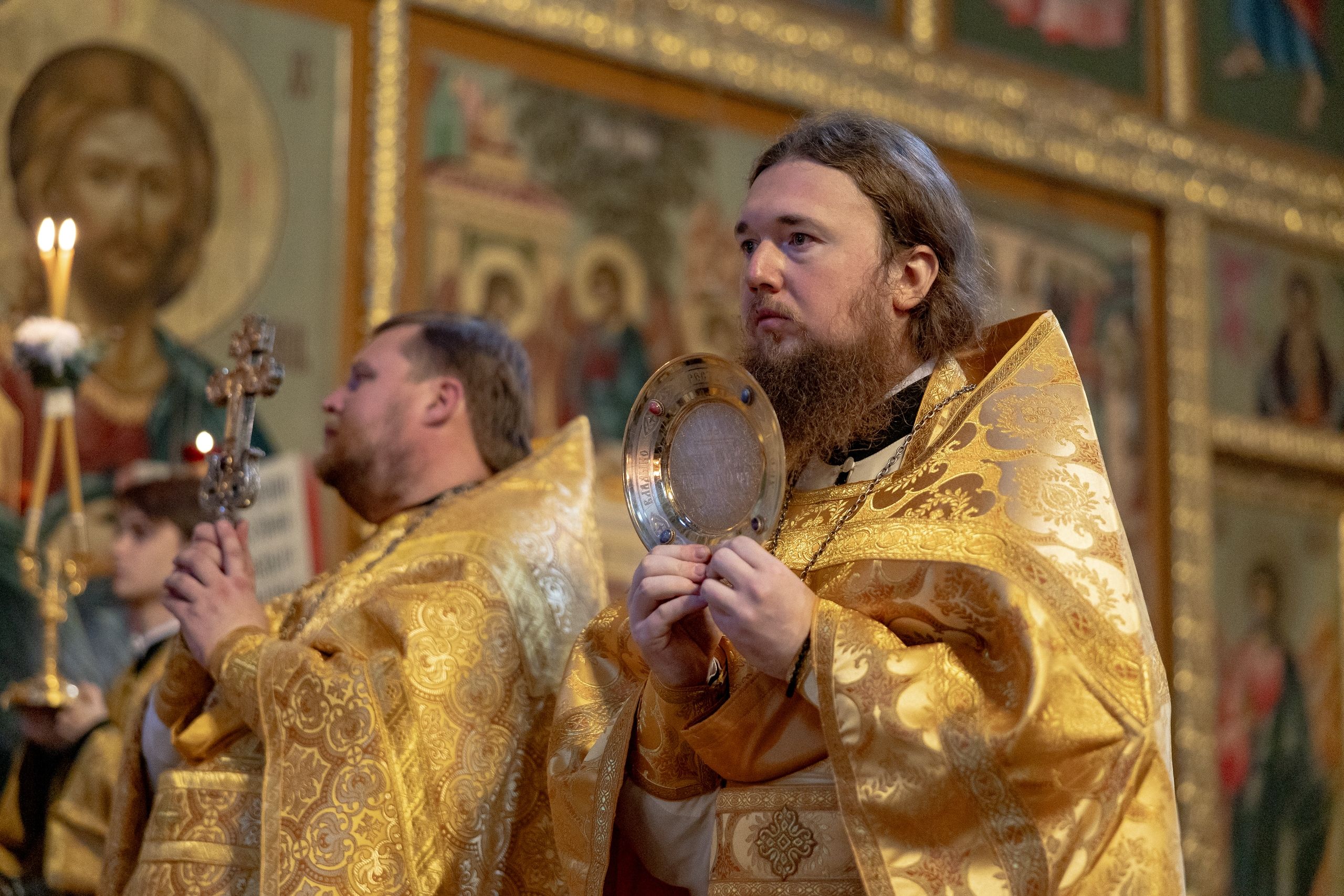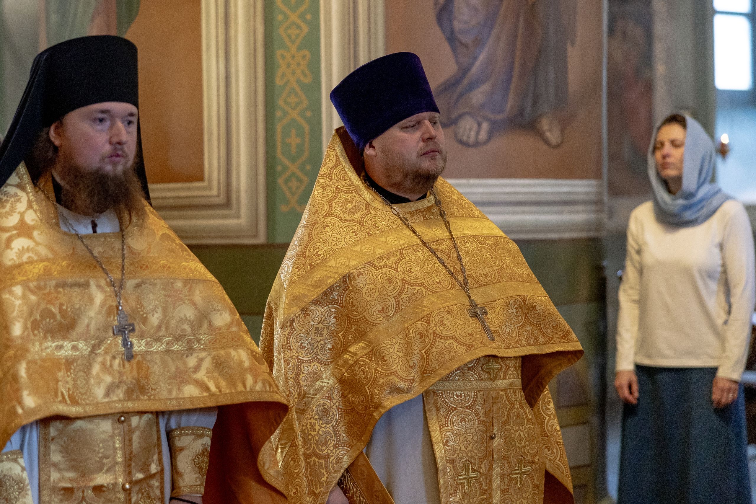 На мирной и сугубой ектениях были вознесены молитвы о Российском воинстве и о мире. По запричастном стихе проповедь произнес иеромонах Иларион (Шпаков).