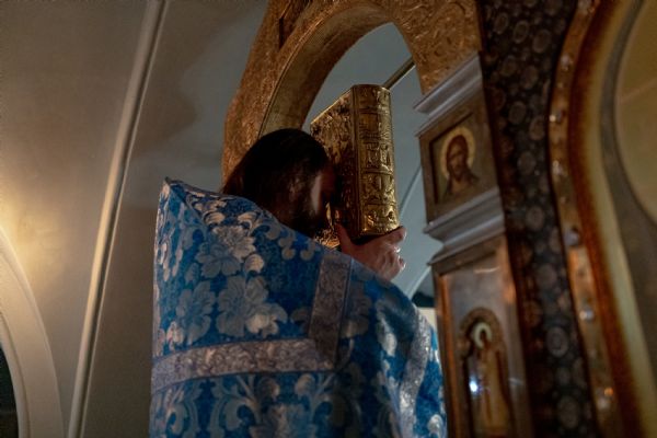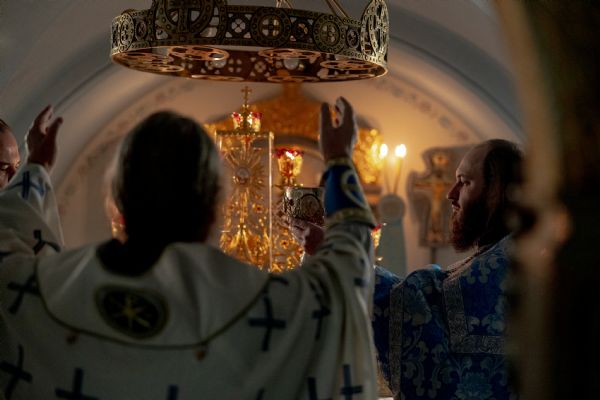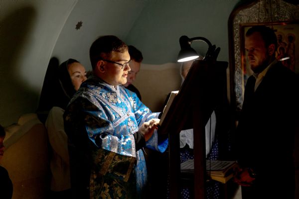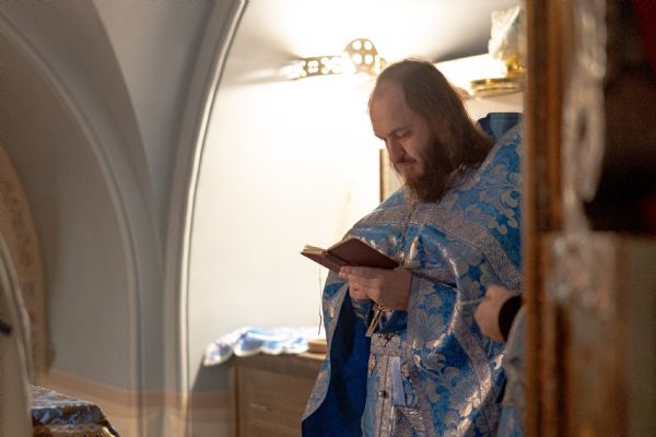 За богослужением молились насельники обители и прихожане. На мирной и сугубой ектениях были вознесены молитвы о Российском воинстве и о мире.