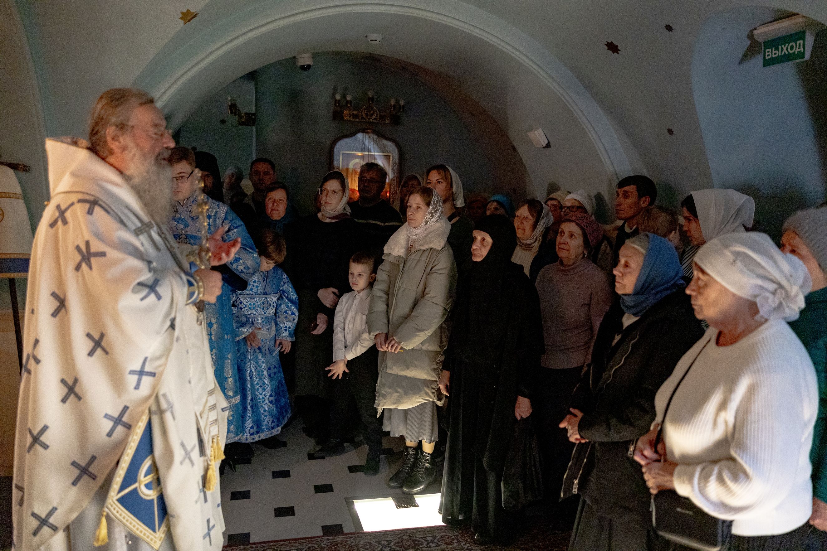 3 ноября 2025 года, в понедельник седмицы 22-й по Пятидесятнице, митрополит Казанский и Татарстанский Кирилл совершил Божественную литургию в Пещерном храме кафедрального собора Казанской иконы Божией Матери.