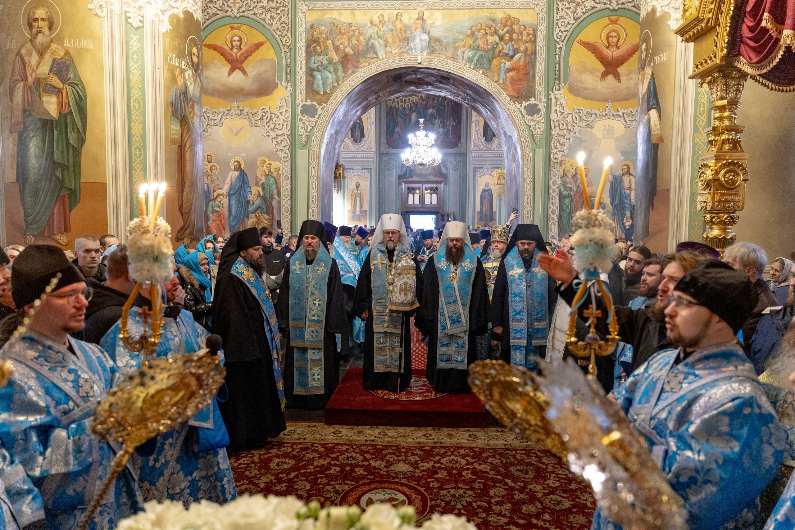Богослужение совершают представитель Патриарха Антиохийского и всего Востока при Патриархе Московском и всея Руси митрополит Филиппопольский Нифон, митрополит Казанский и Татарстанский Кирилл, митрополит Рязанский и Михайловский Марк, митрополит Кемеровский и Прокопьевский Аристарх, митрополит Сыктывкарский и Коми-Зырянский Филипп, митрополит Леонид (Горбачев), епископ Чистопольский и Нижнекамский Пахомий, епископ Альметьевский и Бугульминский Мефодий, епископ Мариинский и Юргинский Иннокентий, епископ Галичский и Макарьевский Алексий, епископ Гедеон (Харон), епископ Набережночелнинский и Елабужский Гавриил, епископ Алапаевский и Ирбитский Сергий.