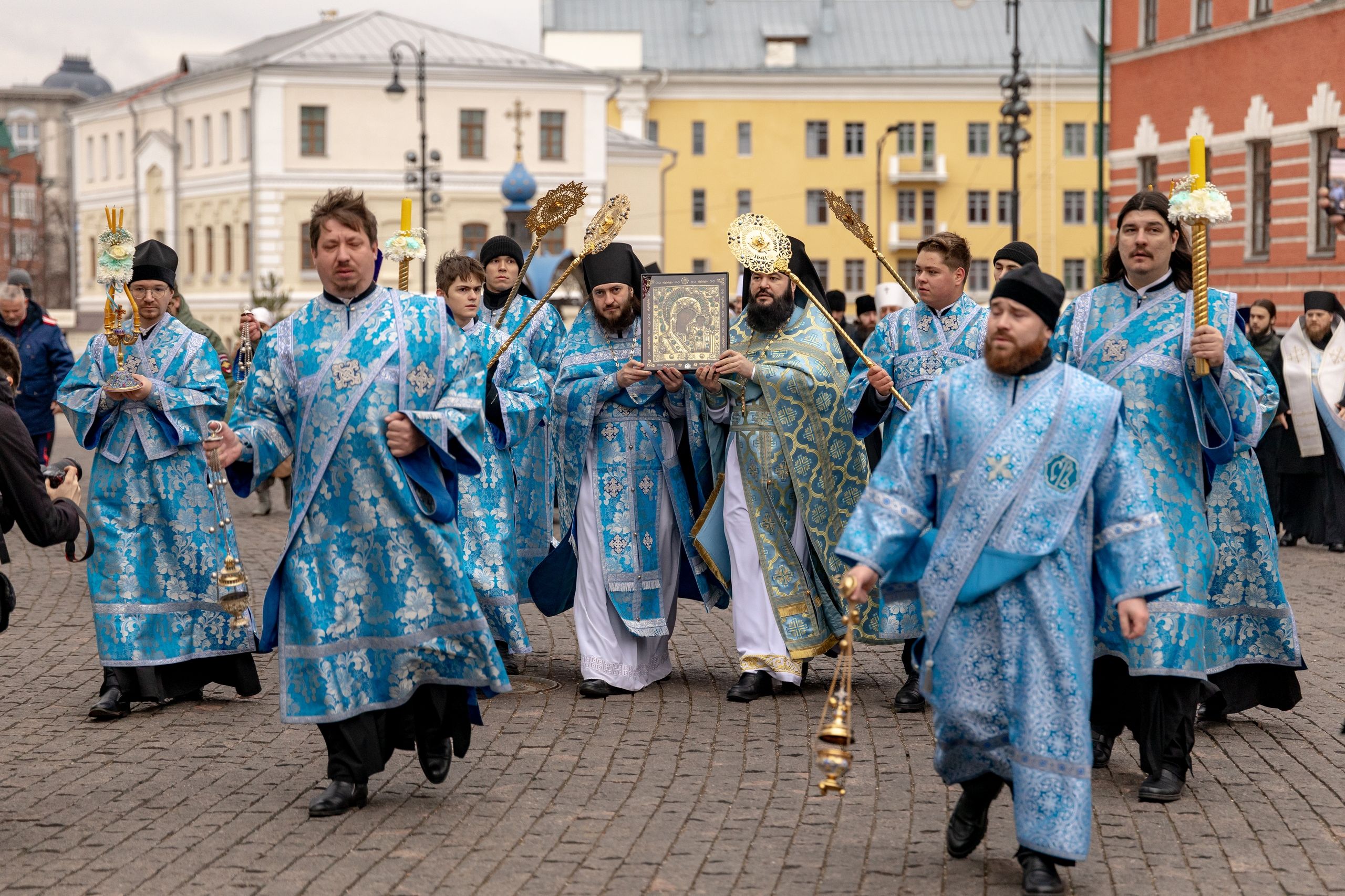 Вместе с архипастырями по историческому центру Казани с чтимым образом Богородицы крестным ходом прошли священнослужители Казанской епархии, жители столицы Татарстана, паломники из разных регионов России.
