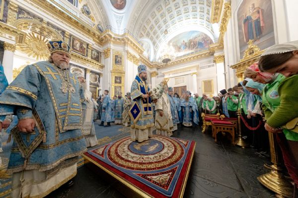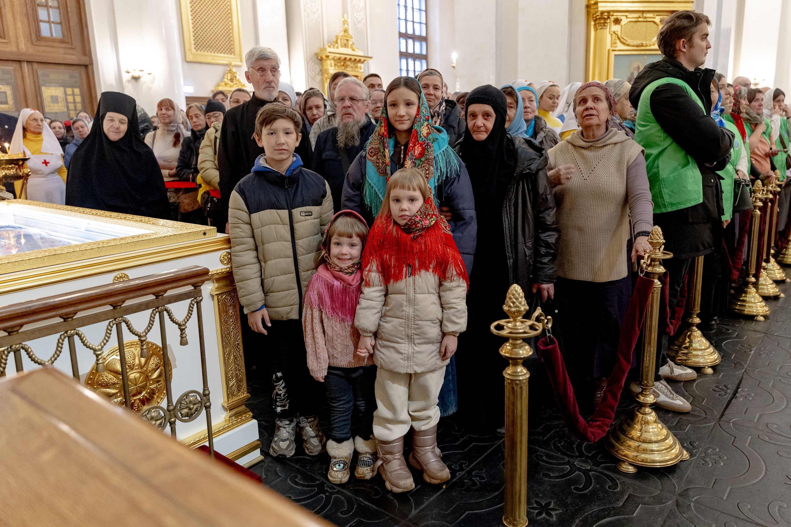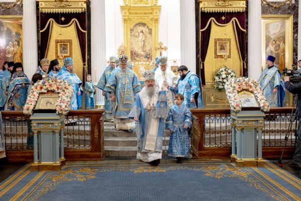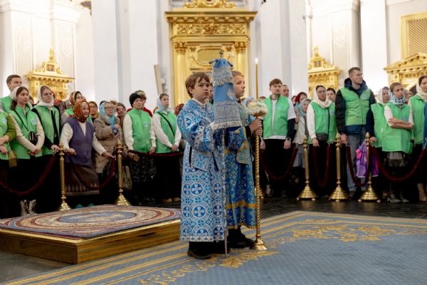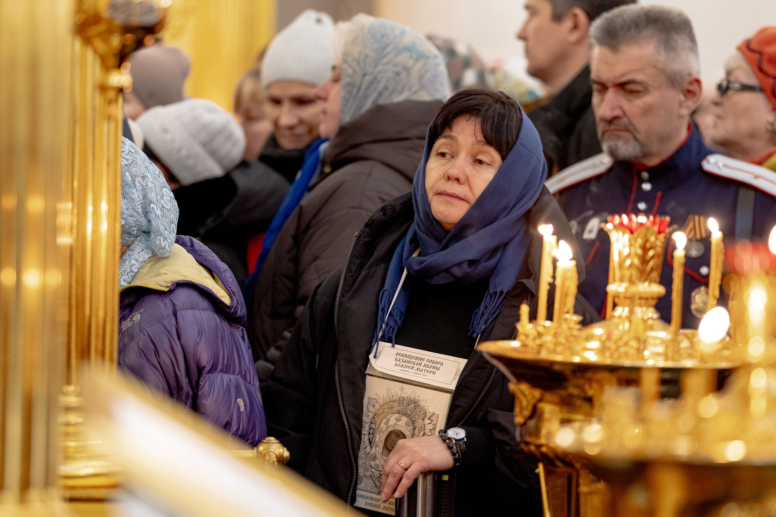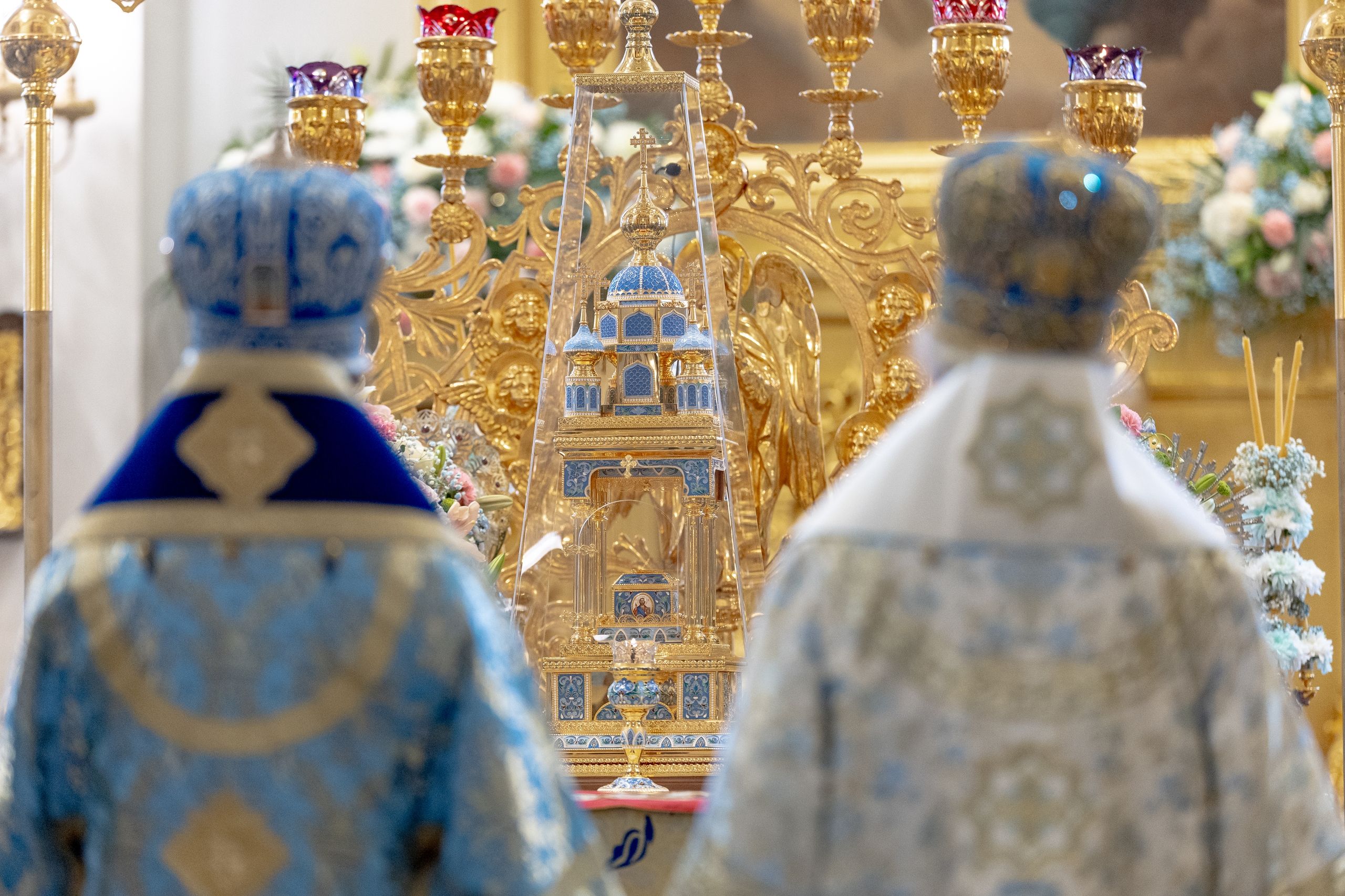 Накануне, 3 ноября, в Казанском кафедральном соборе, построенном на месте явления чудотворного образа Пресвятой Богородицы в 1579 году, было совершено всенощное бдение.