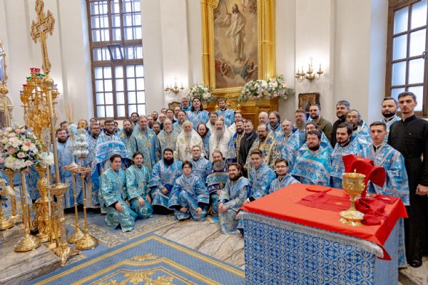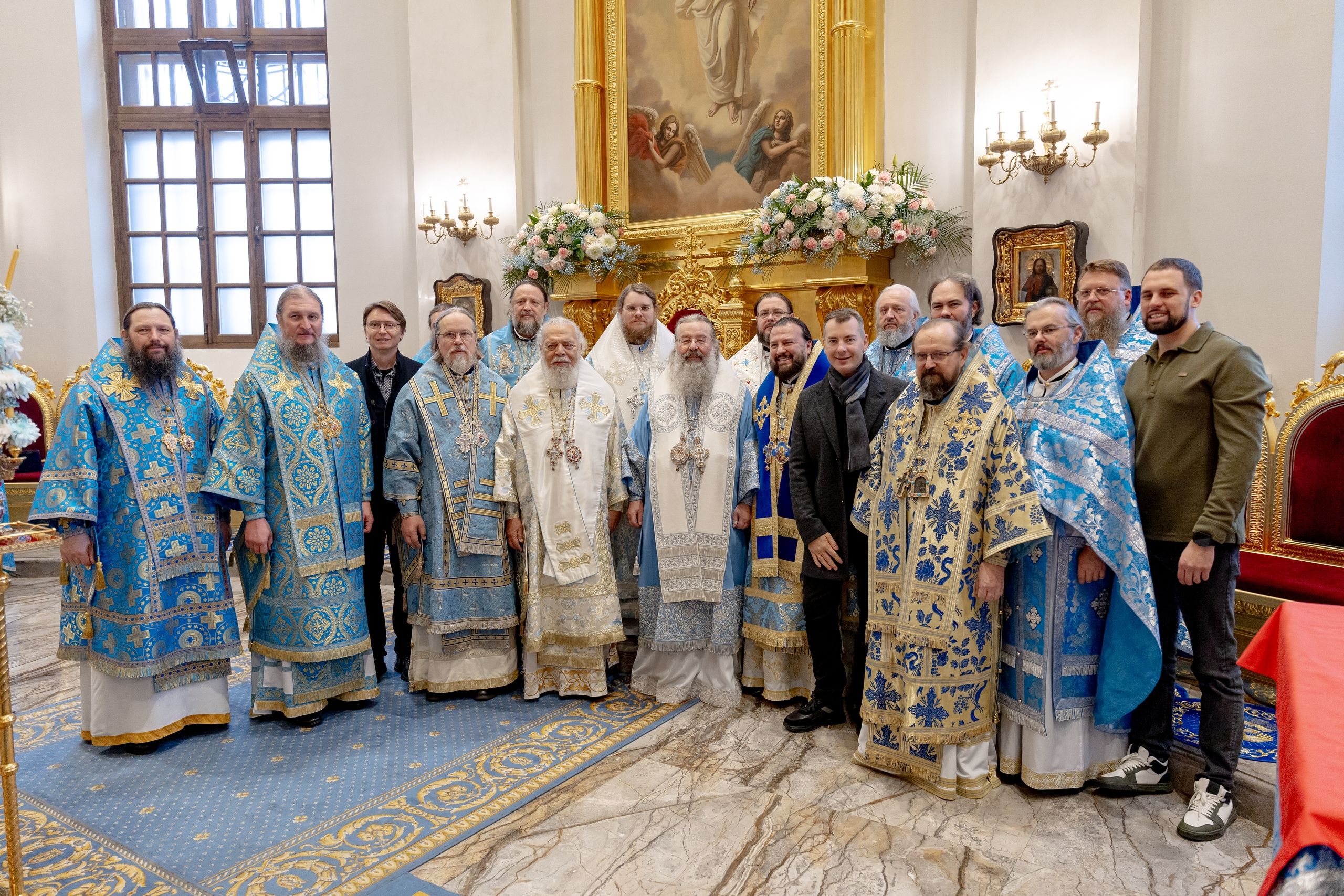 Архипастырям сослужили представитель Патриарха Болгарского при Патриархе Московском и всея Руси архимандрит Феоктист (Димитров), представитель Православной Церкви Чешских земель и Словакии при Патриархе Московском и всея Руси архимандрит Серафим (Шемятовский), представитель Православной Церкви в Америке при Патриархе Московском и всея Руси протоиерей Даниил Андреюк, секретарь Татарстанской митрополии иеромонах Кирилл (Корытко), наместник Казанского Богородицкого мужского монастыря игумен Марк (Виленский), ректор Казанской духовной семинарии иерей Никита Кузнецов, благочинные церковных округов, настоятели храмов и монастырей Казанской епархии.
