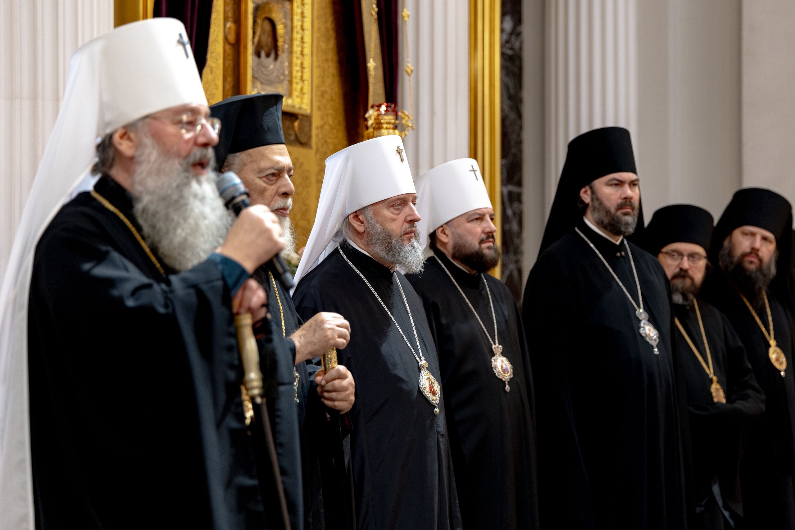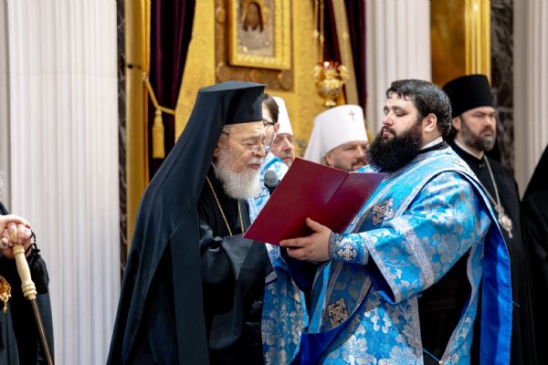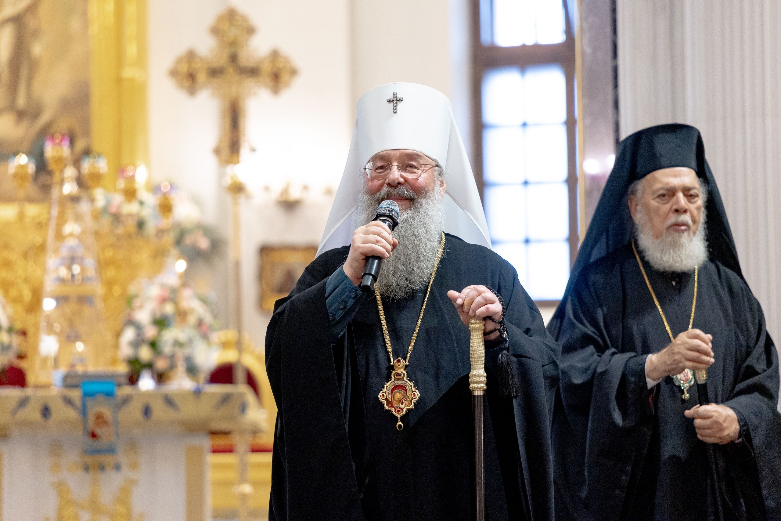 Сегодня мы, представители Поместных Православных Церквей: Антиохийской, Болгарской, Чешской и Американской, благодаря митрополиту Кириллу свидетельствуем здесь о нашем единстве в духе мира и любви. В этот прекрасный праздник мы рады передать вам, дорогой владыка, что предстоятели наших Церквей считают вас одним из выдающихся архиереев Русской Церкви. А у нас на Востоке высоко ценят Вас за Ваш вклад в дело укрепления взаимопонимания между людьми разных исповеданий.