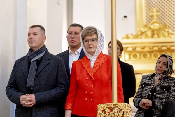 В завершение участники арт-группы LARGO, которые также по традиции прибыли в столицу Татарстана на праздник Казанской иконы Божией Матери, исполнили с амвона духовный кант «О, Всепетая Царица».