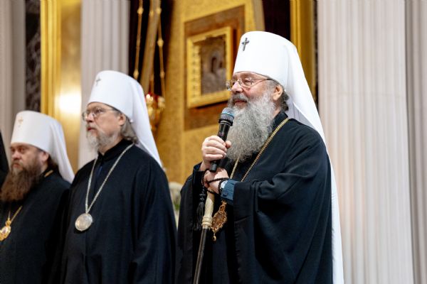 Митрополит Кирилл тепло поприветствовал и поблагодарил за молитвы архипастырей и священнослужителей, прибывших в Казань для участия в церковных торжествах: