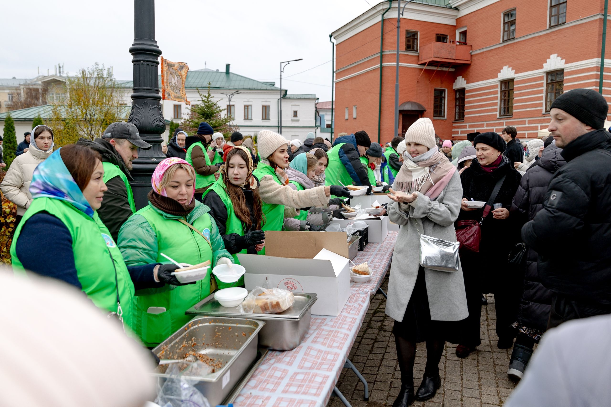 На территории Богородицкой обители была организована трапеза для прихожан и паломников.