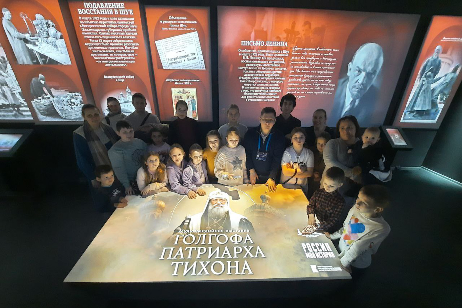 В период школьных каникул воспитанники и педагоги воскресных школ посетили экспозицию «Голгофа Патриарха Тихона» в мультимедийном историческом парке «Россия — моя история». Выставка посвящена 100-летию со дня блаженной кончины святителя Тихона, Патриарха Московского и всея Руси.