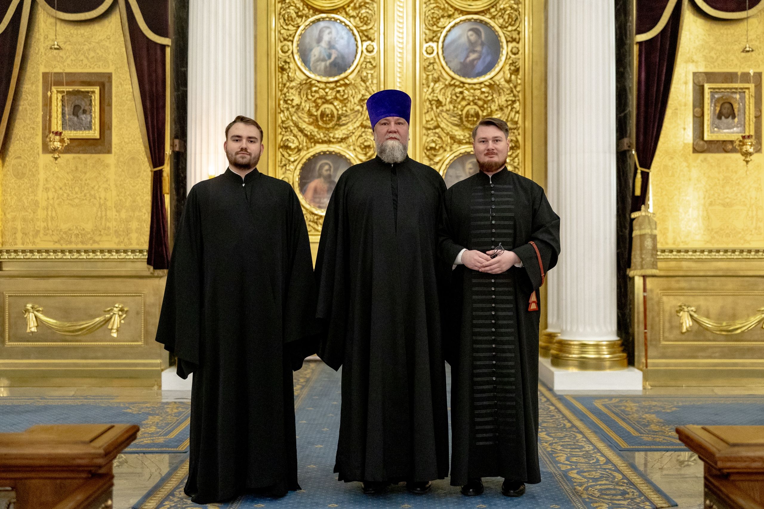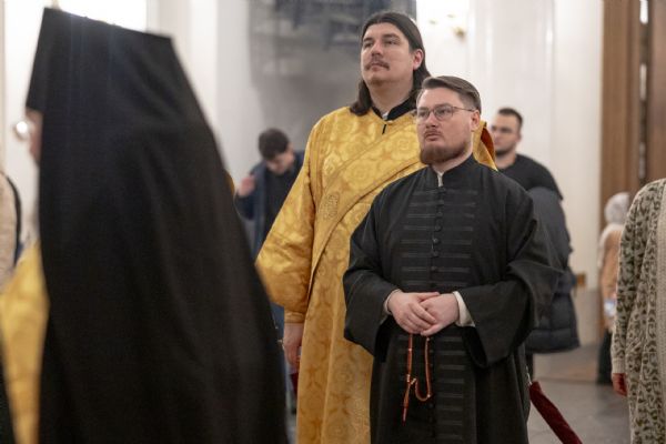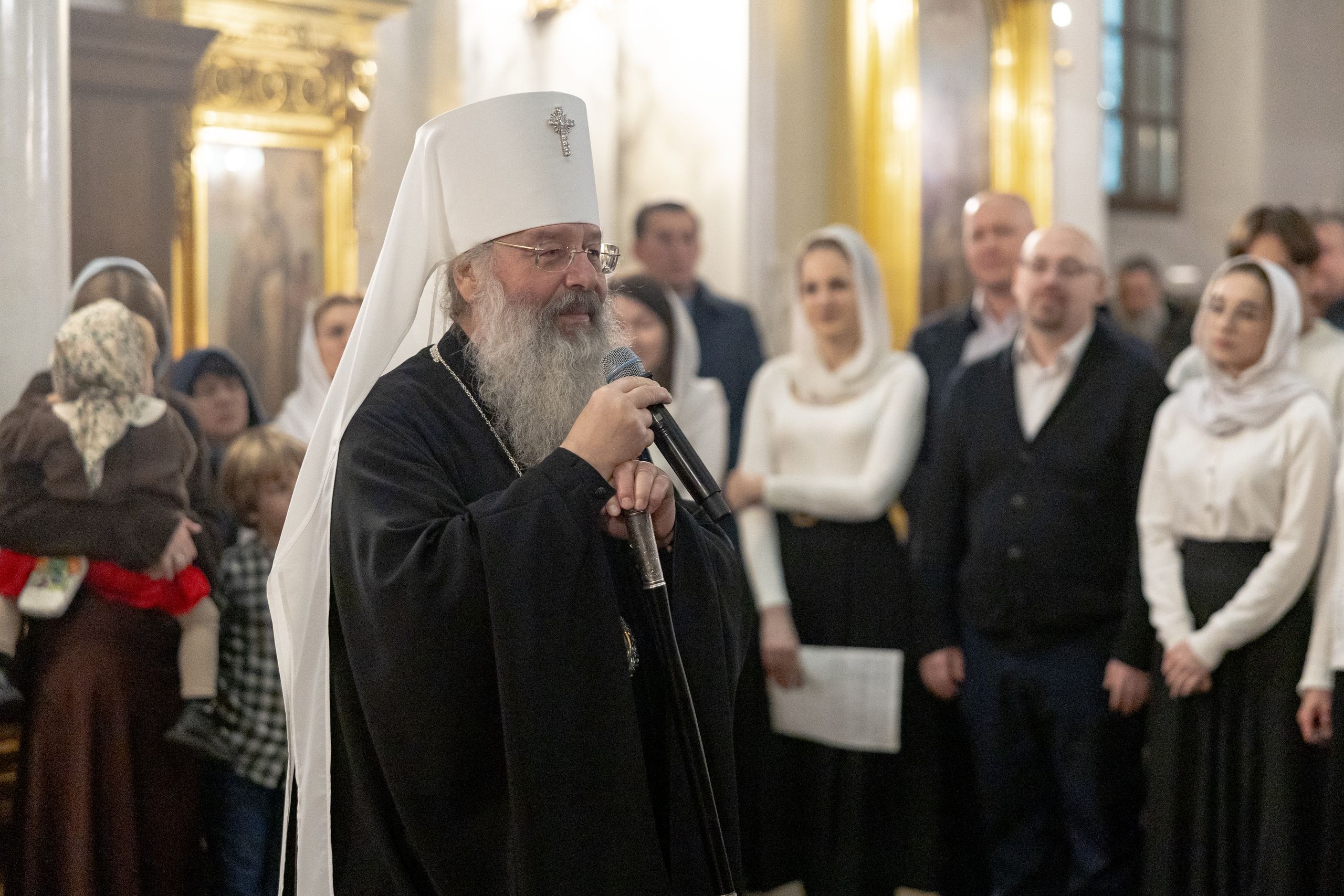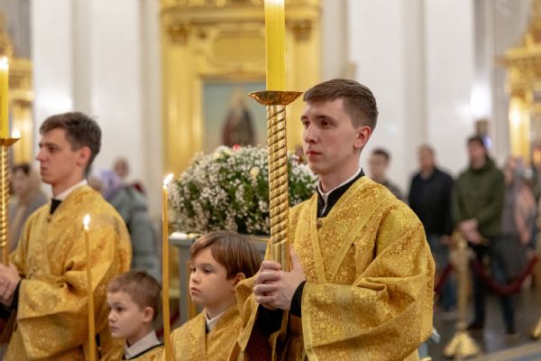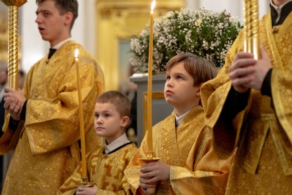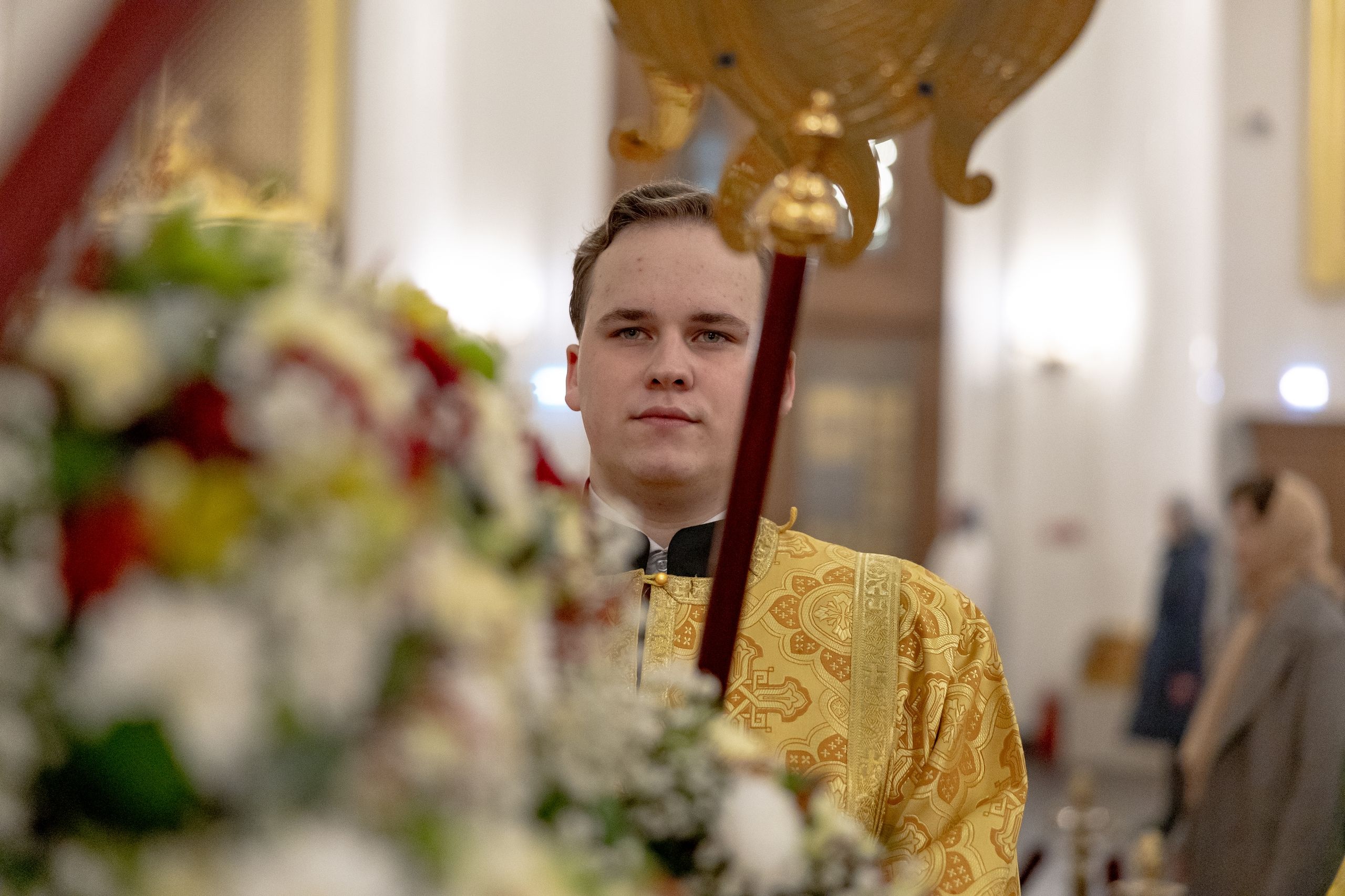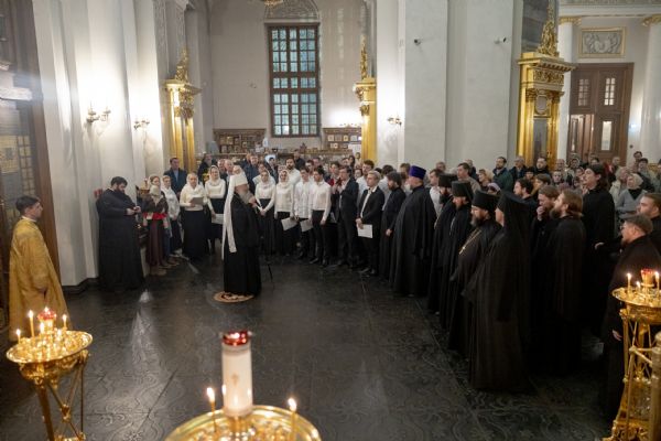 Песнопения исполнили два архиерейских хора: смешанный под управлением Марины Литвиненко и мужской под управлением Дениса Рогова.