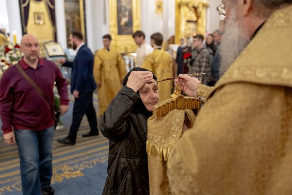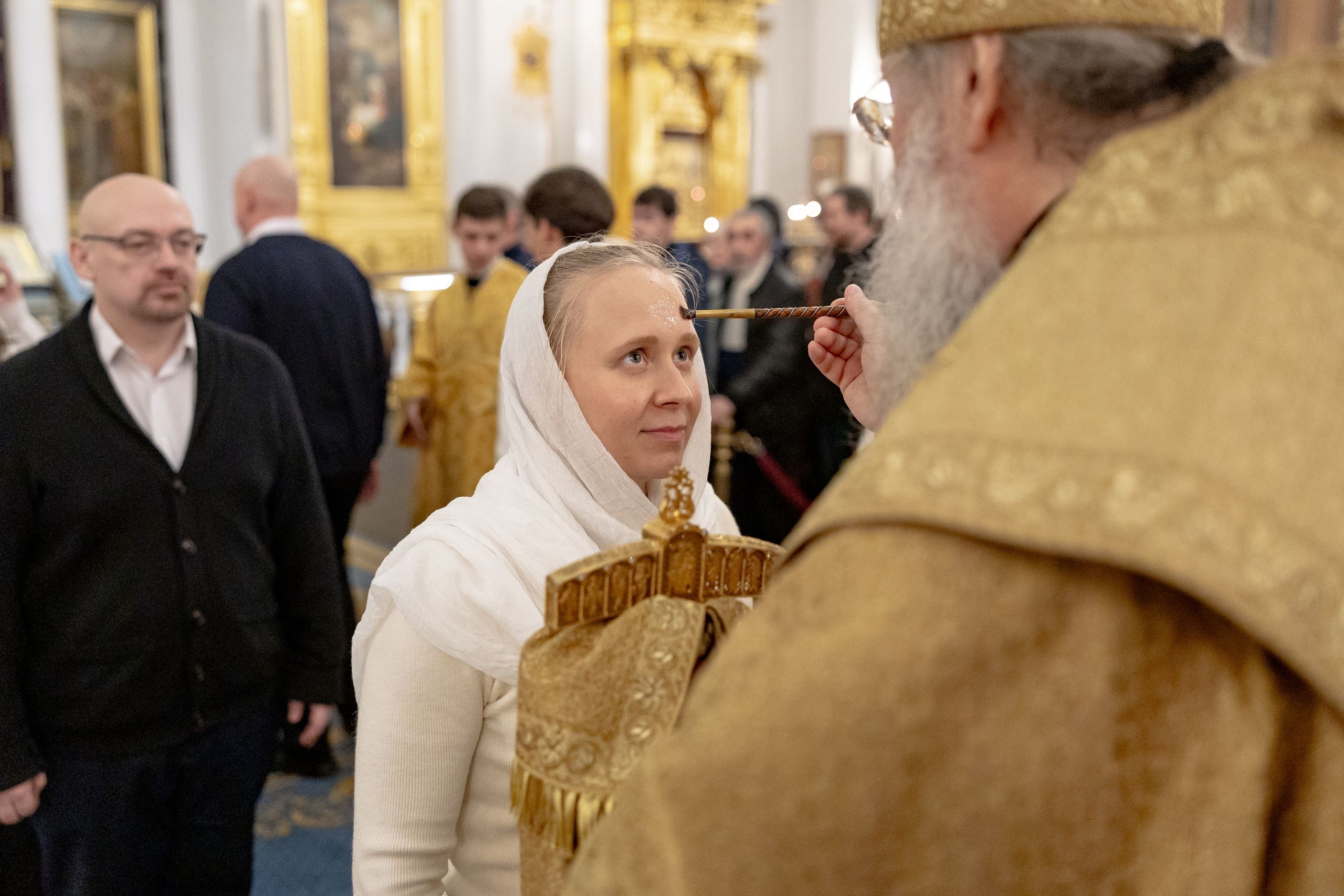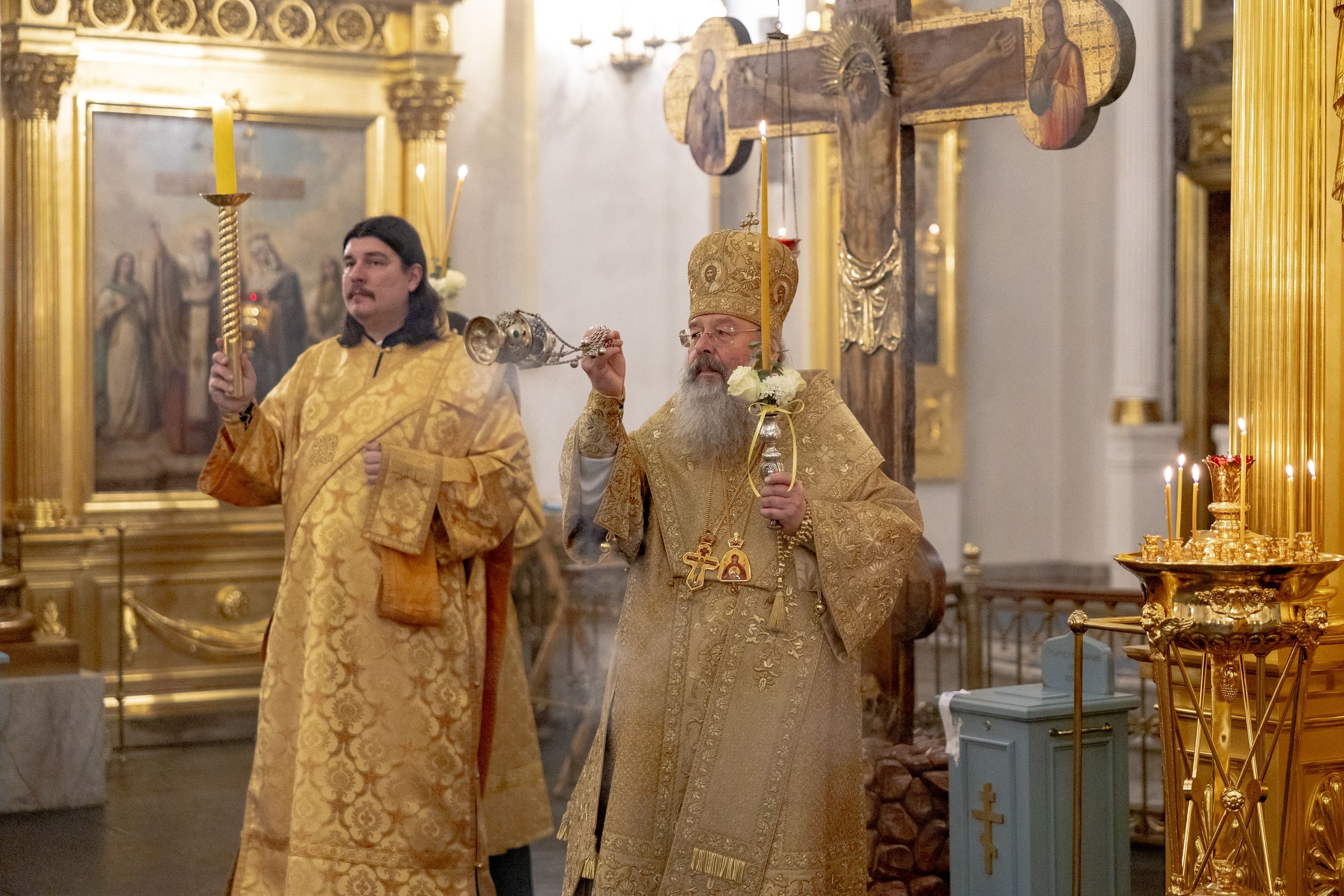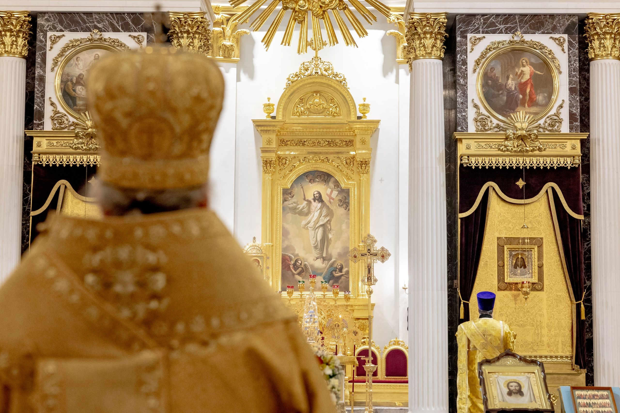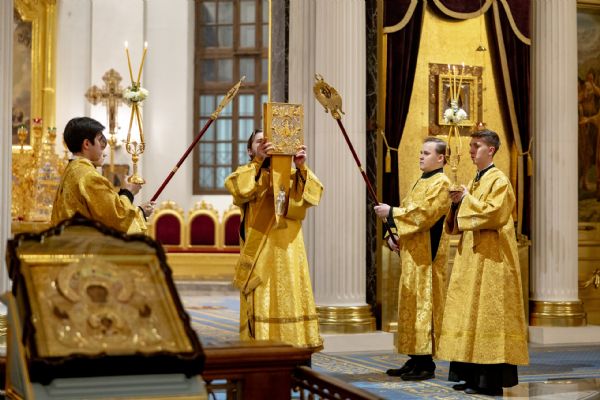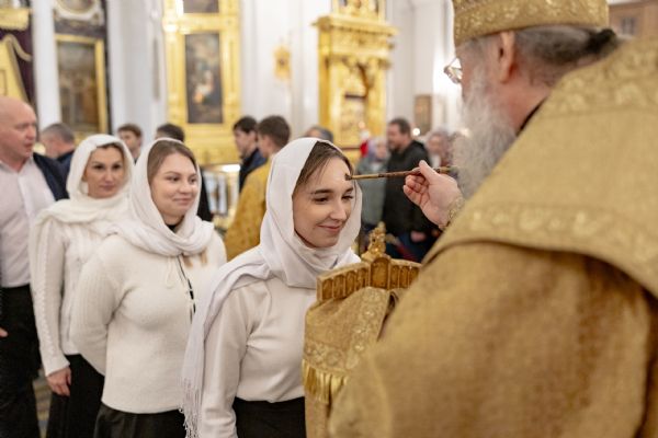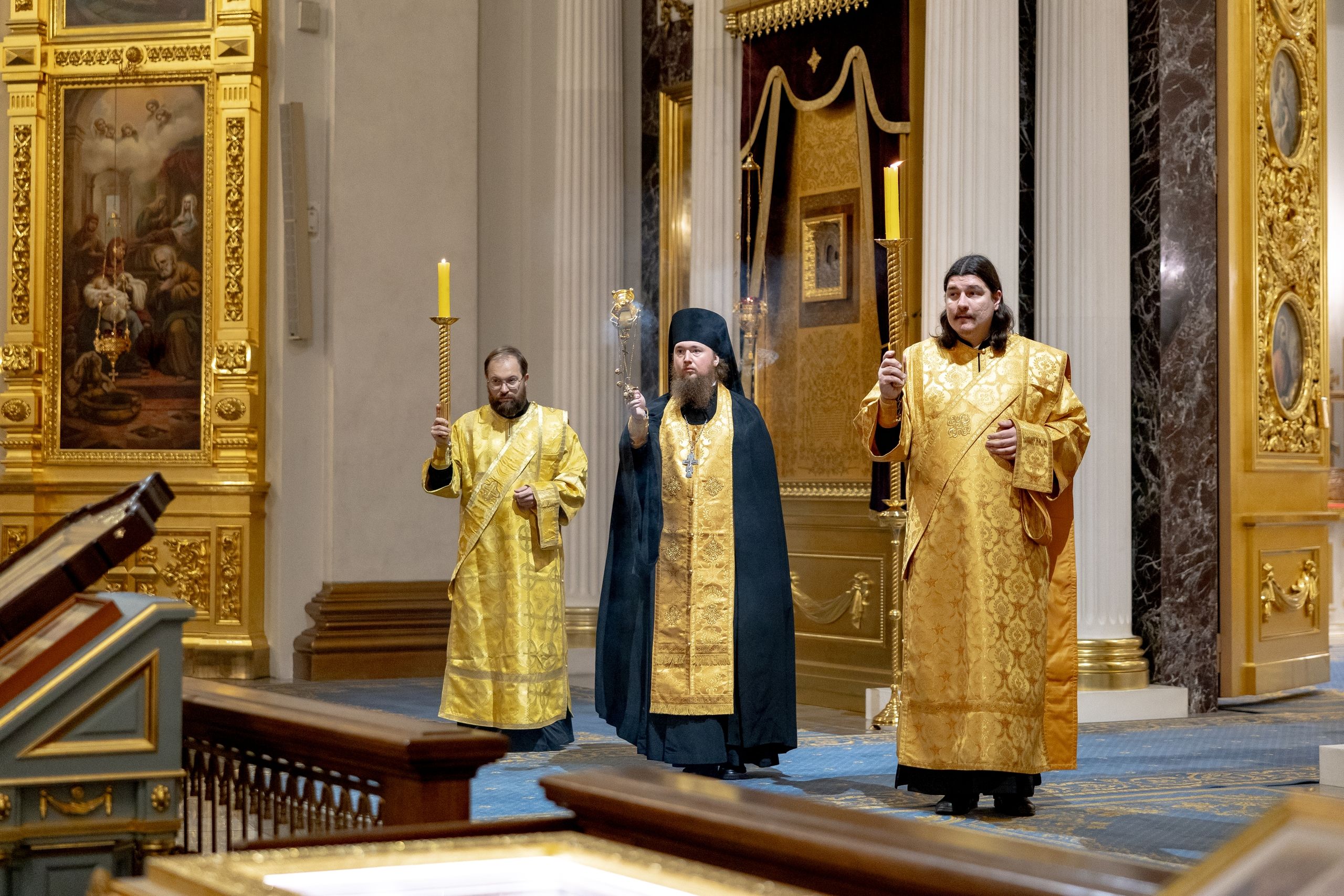 Песнопения исполнили два архиерейских хора: смешанный под управлением Марины Литвиненко и мужской под управлением Дениса Рогова.