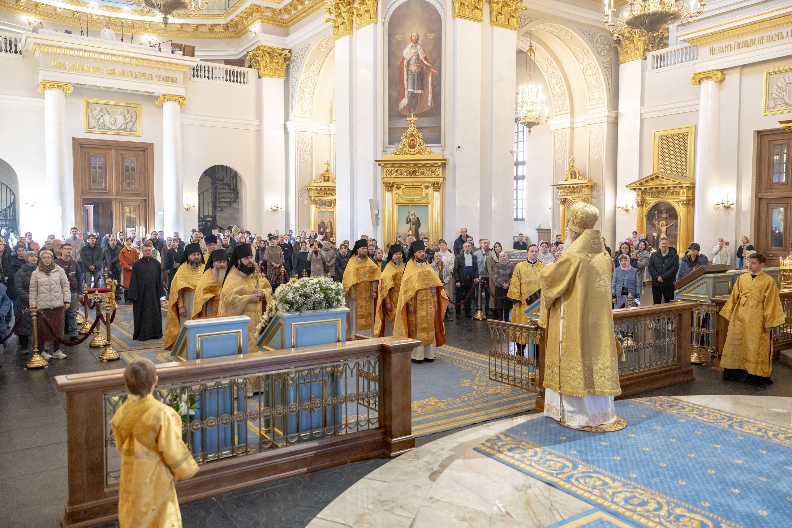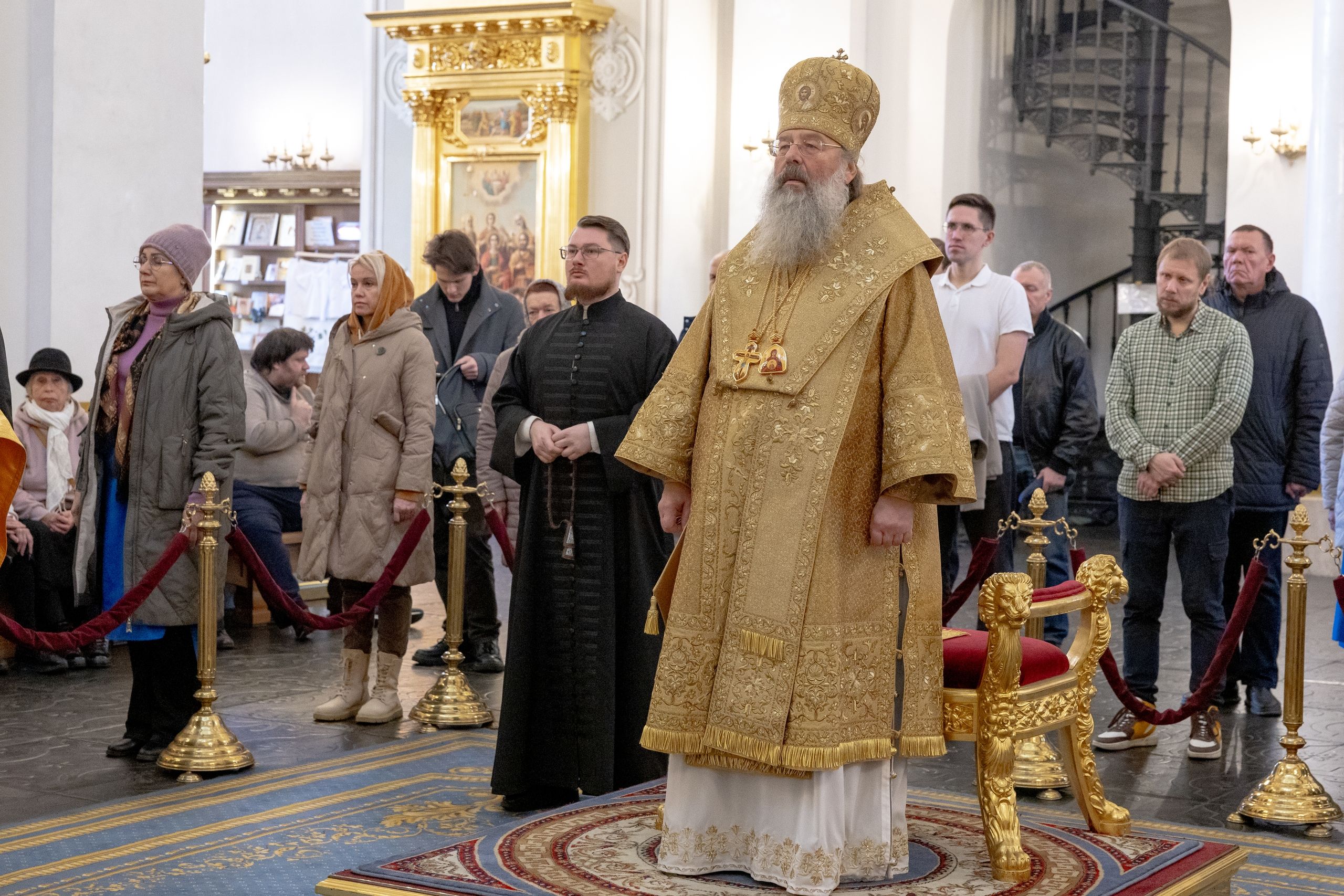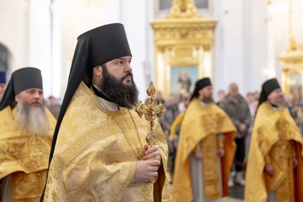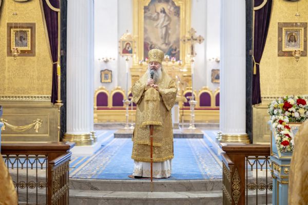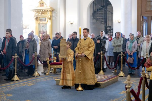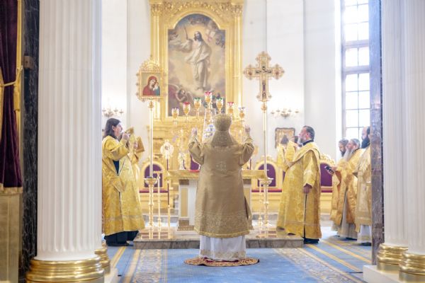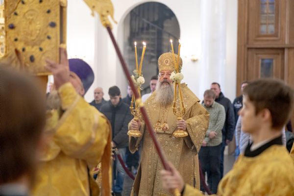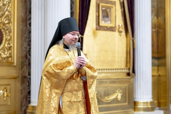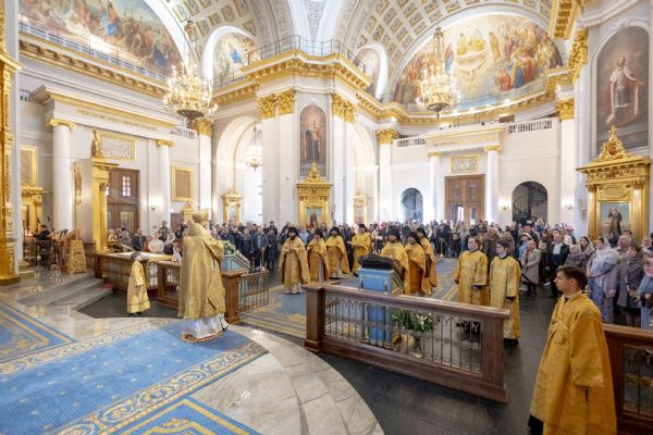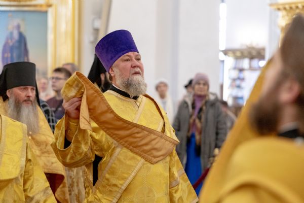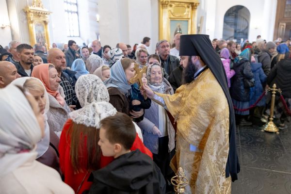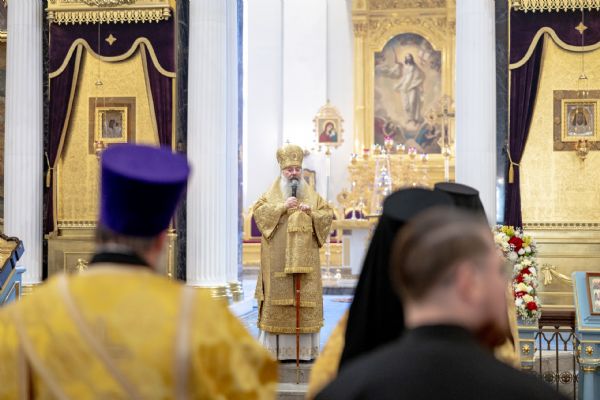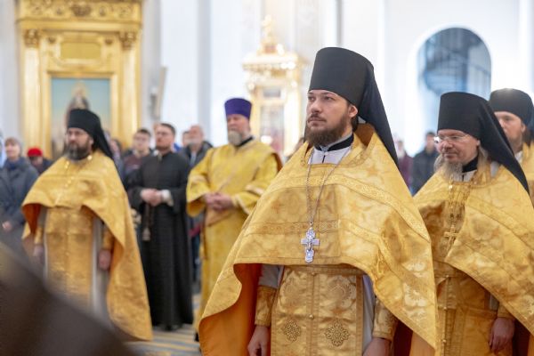 На мирной и сугубой ектениях были вознесены молитвенные прошения о Российском воинстве и о мире. По запричастном стихе проповедь произнёс иеромонах Гермоген (Рубан).