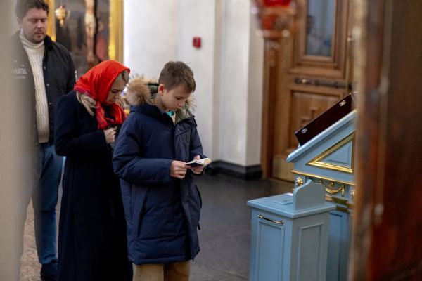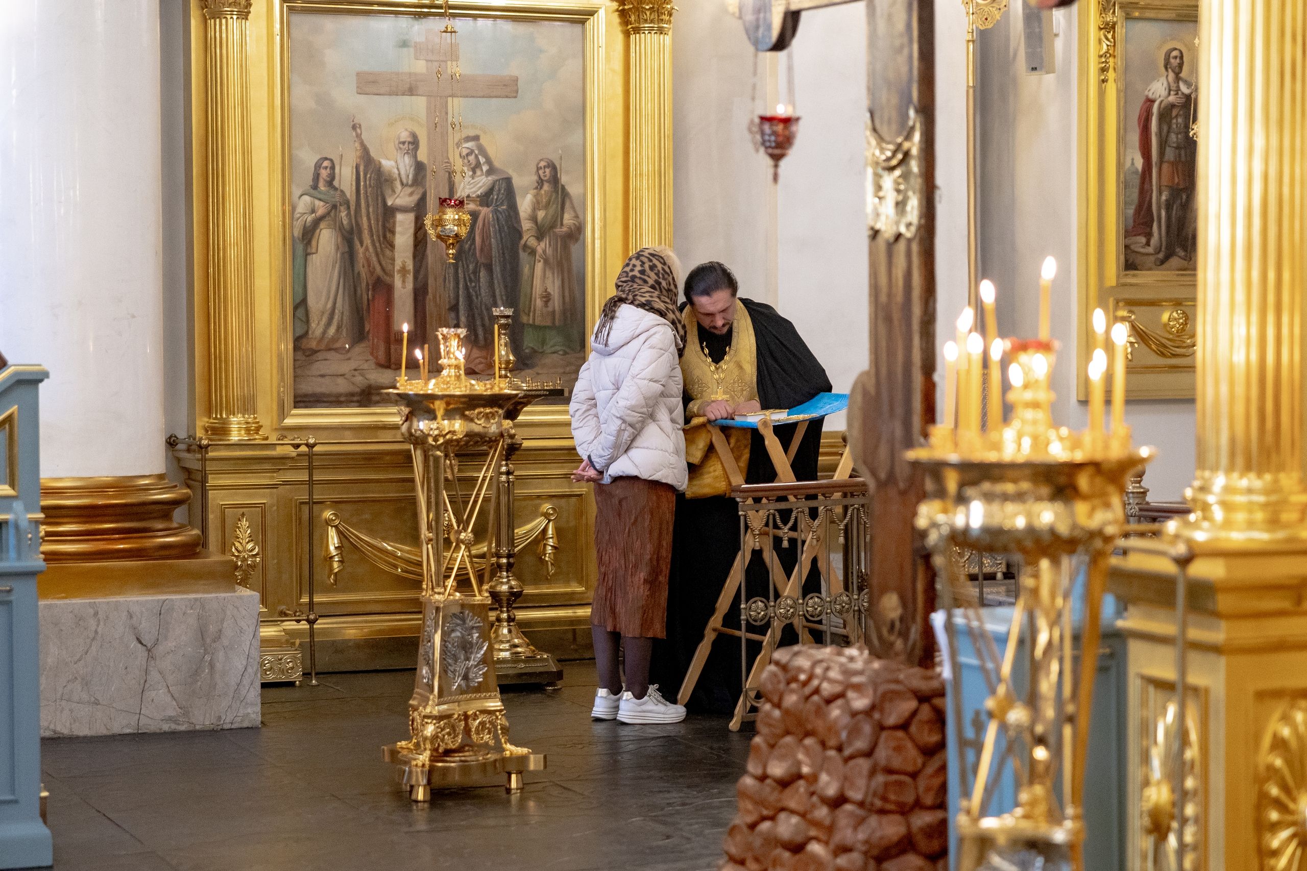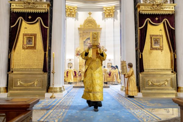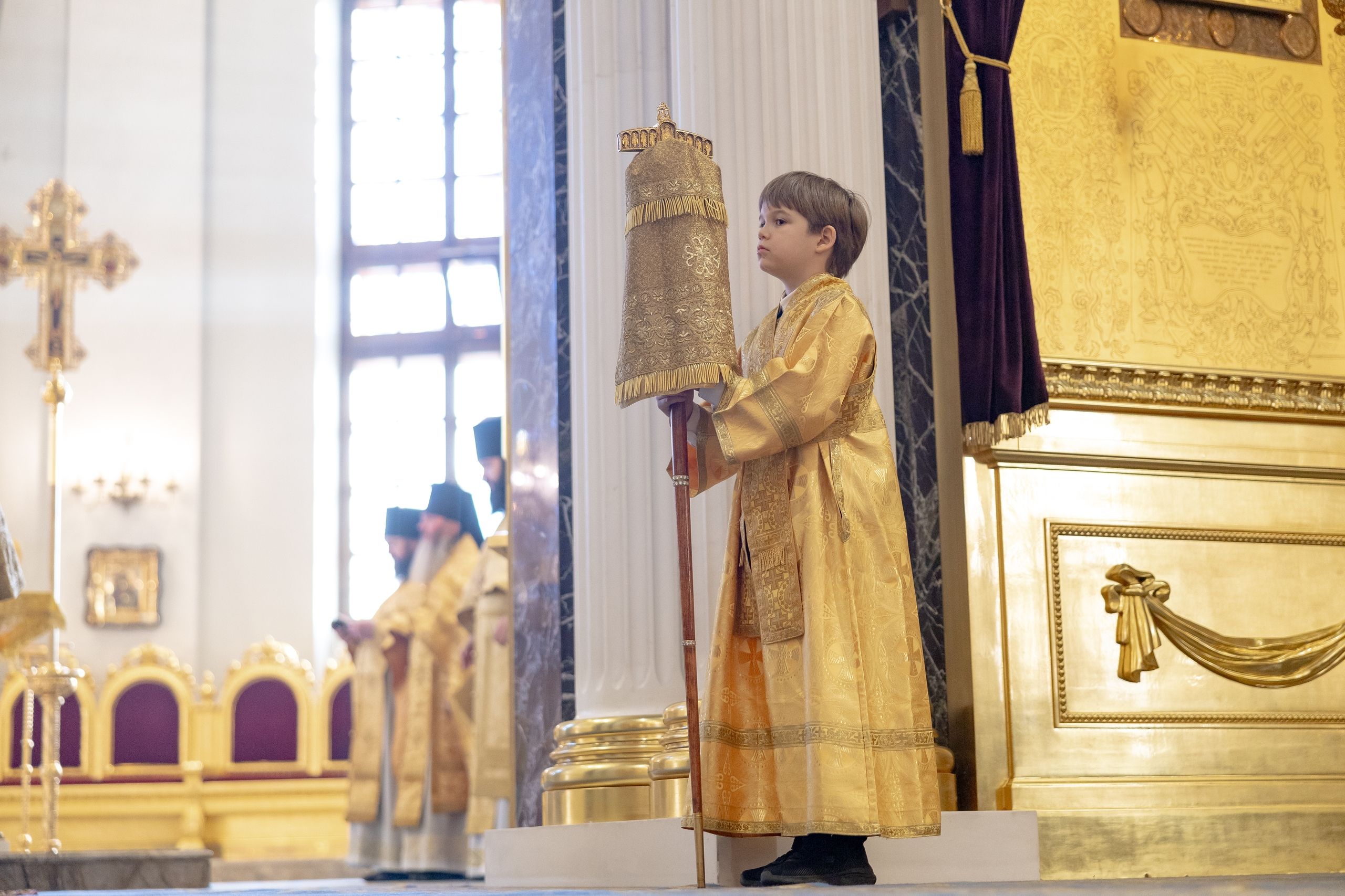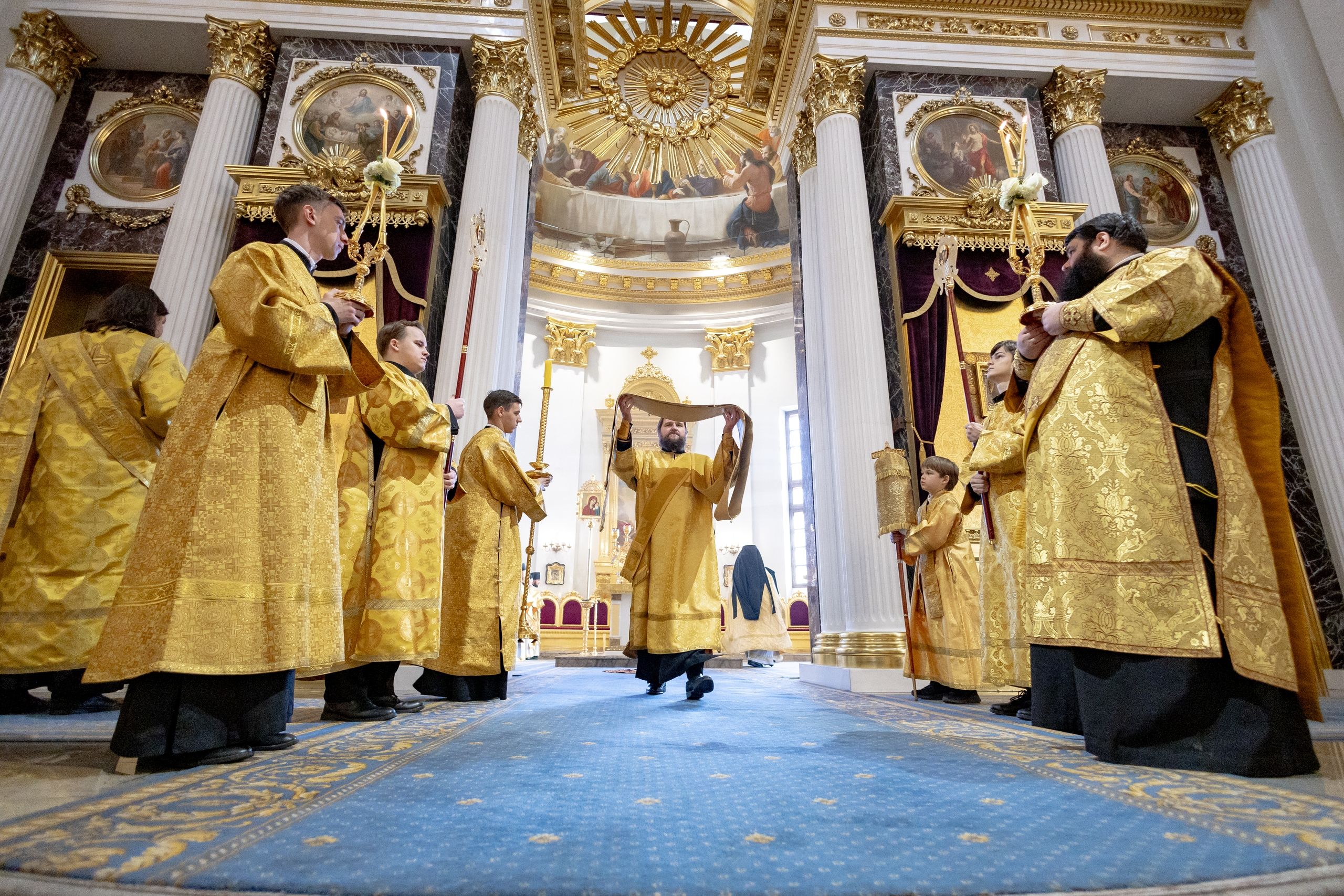 На мирной и сугубой ектениях были вознесены молитвенные прошения о Российском воинстве и о мире. По запричастном стихе проповедь произнёс иеромонах Гермоген (Рубан).