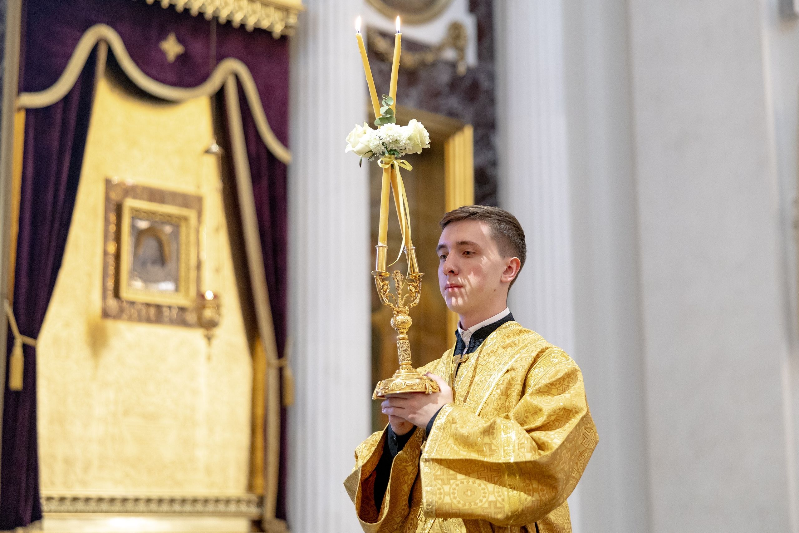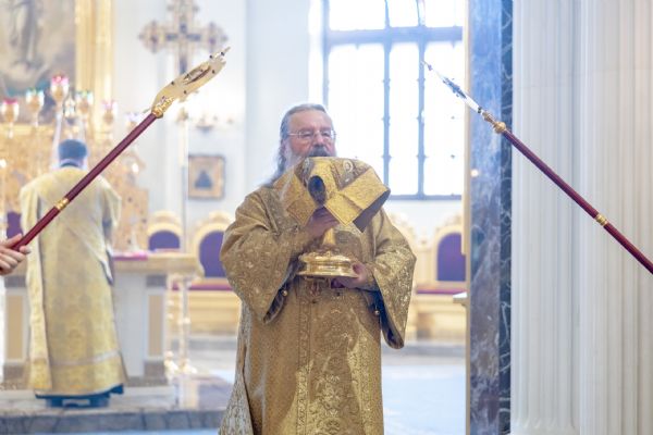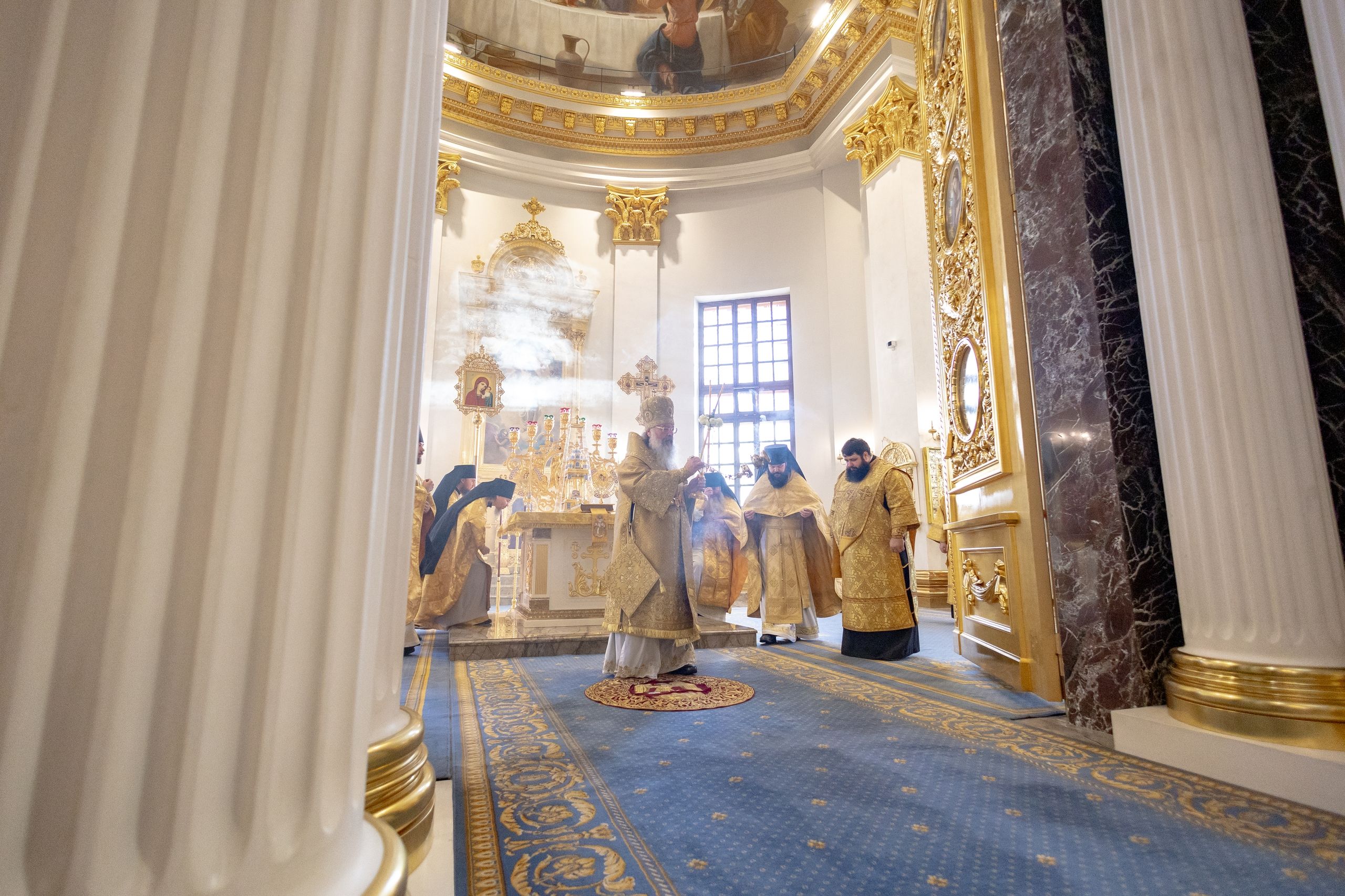 Его Высокопреосвященству сослужили наместник игумен Марк (Виленский) и братия обители в священном сане. Песнопения исполнил архиерейский смешанный хор под управлением Марины Литвиненко.