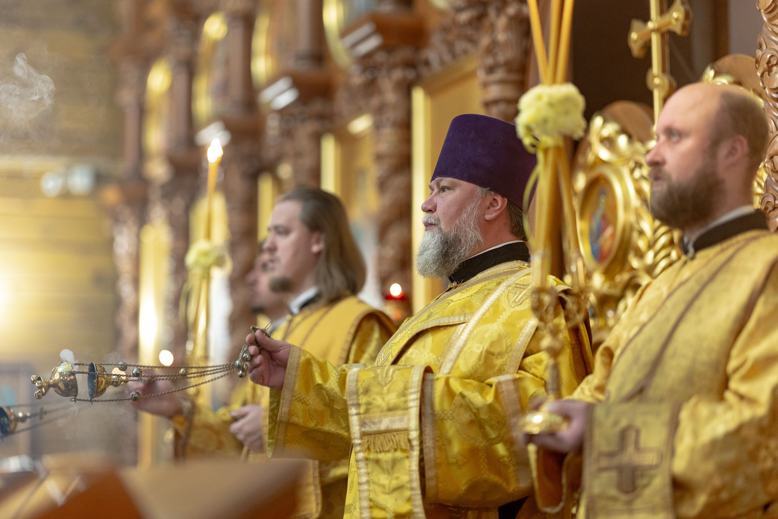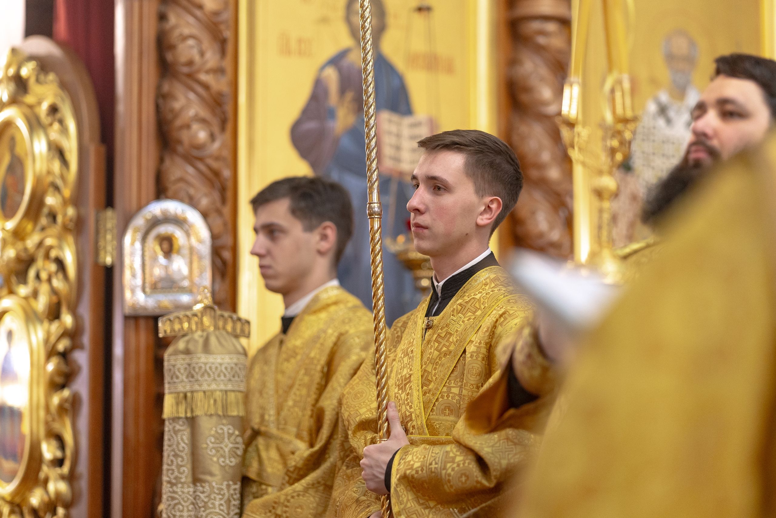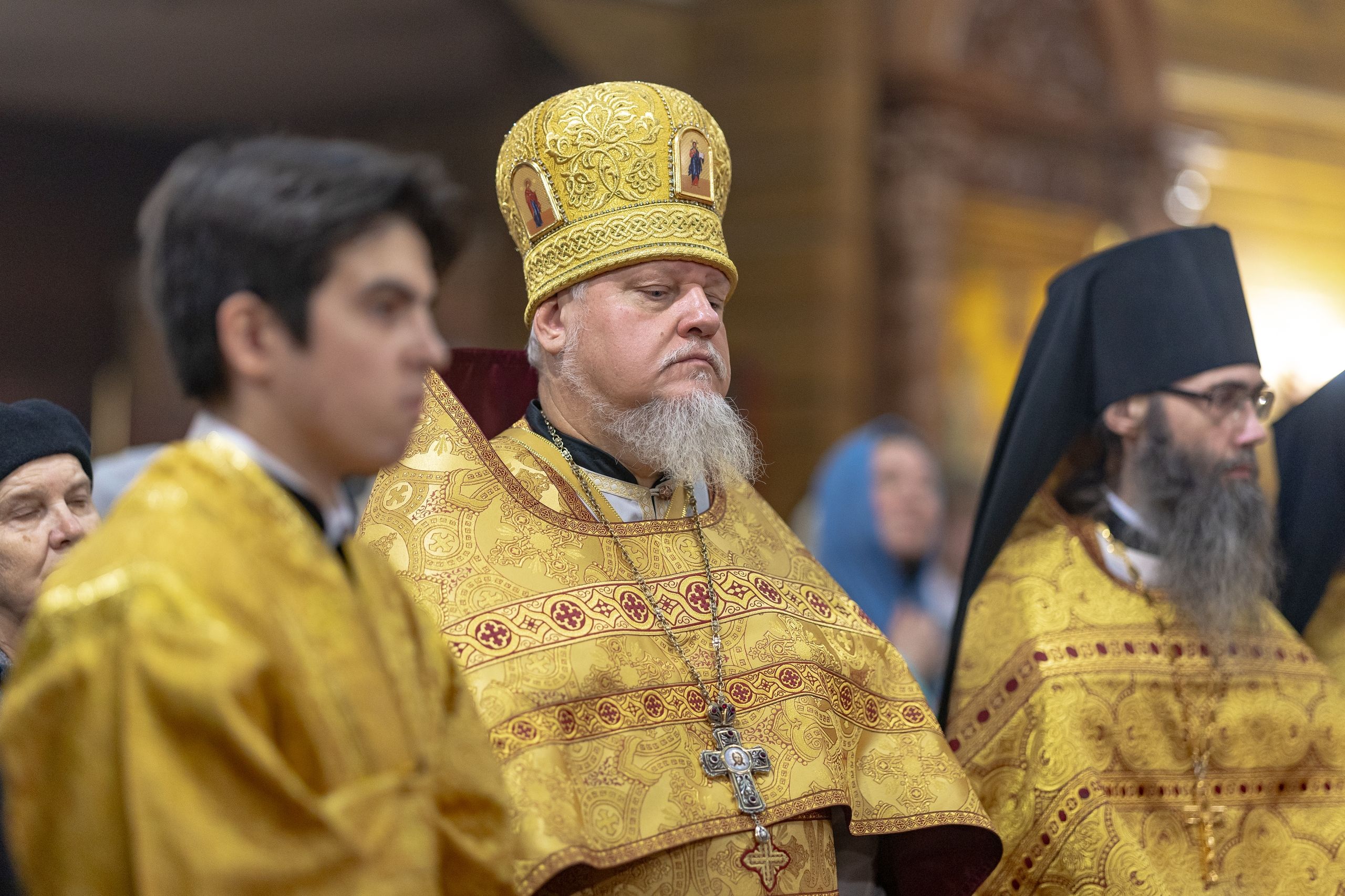 Его Высокопреосвященству сослужили секретарь Татарстанской митрополии иеромонах Кирилл (Корытко), настоятель храма протоиерей Владимир Самойленко, благочинный III Казанского округа протоиерей Алексий Краевский, благочинный Зеленодольского округа протоиерей Константин Люкшин, настоятель Введенского Кизического монастыря города Казани игумен Пимен (Ивентьев), настоятель Иоанно-Предтеченского монастыря города Казани игумен Алексий (Яцейко), клирик Александро-Невского храма города Казани протоиерей Сергий Хохлов, настоятель Кирилловского храма города Казани иерей Василий Крючков, настоятель Спасо-Евдокиевского храма города Казани иерей Димитрий Аликин, настоятель Сергиевского (молодёжного) храма города Казани иерей Артемий Лушкин, клирик храма иерей Евгений Марданов.