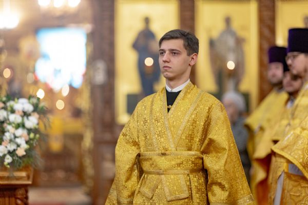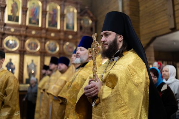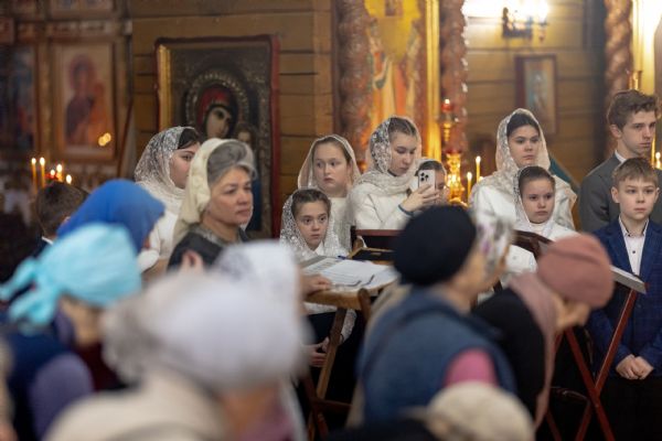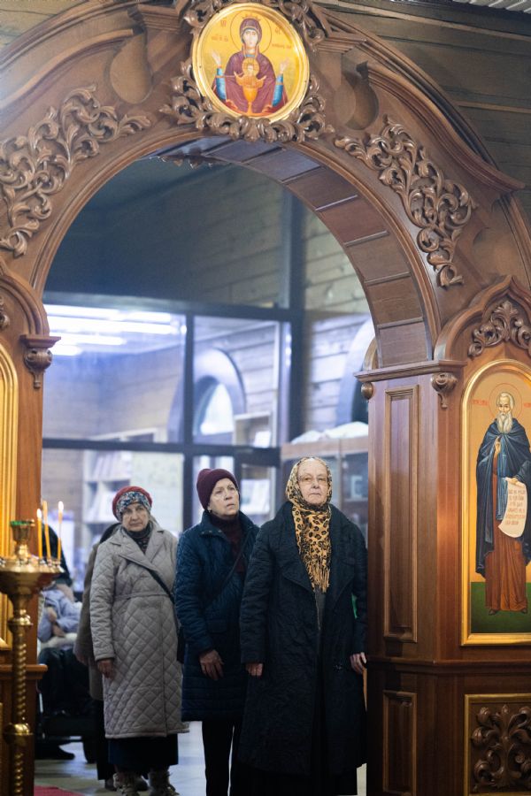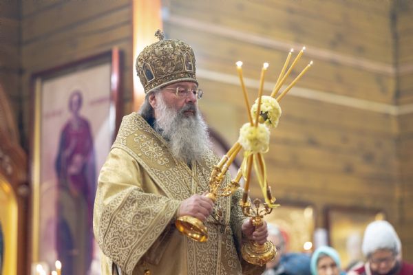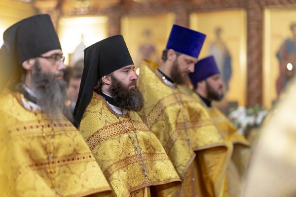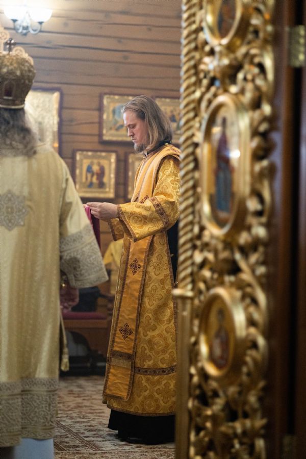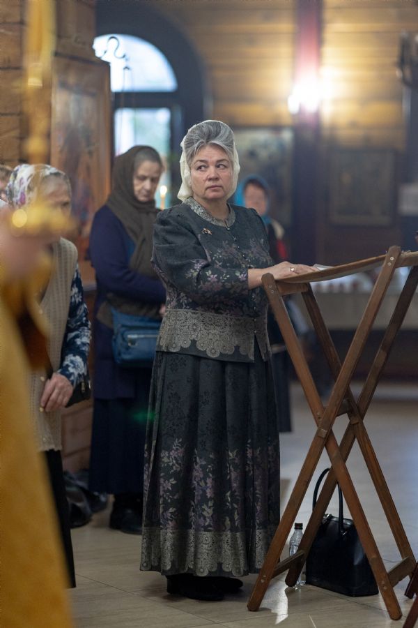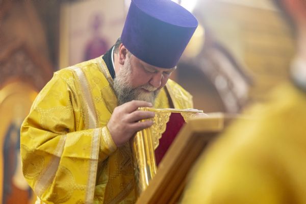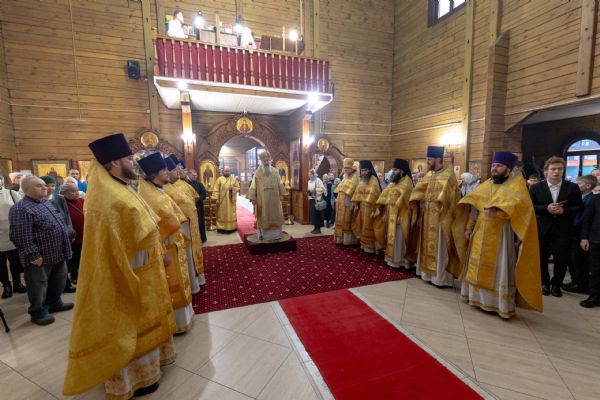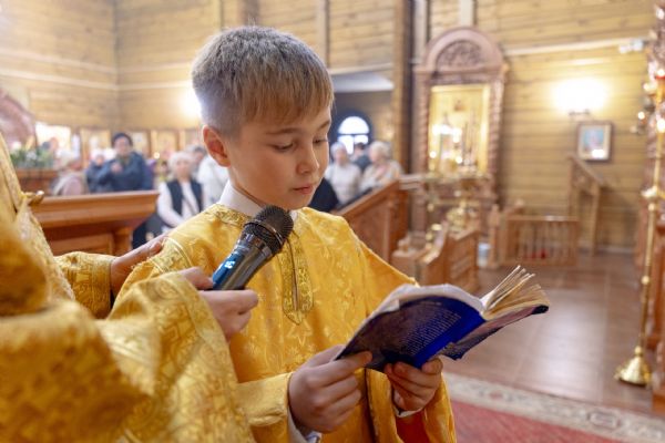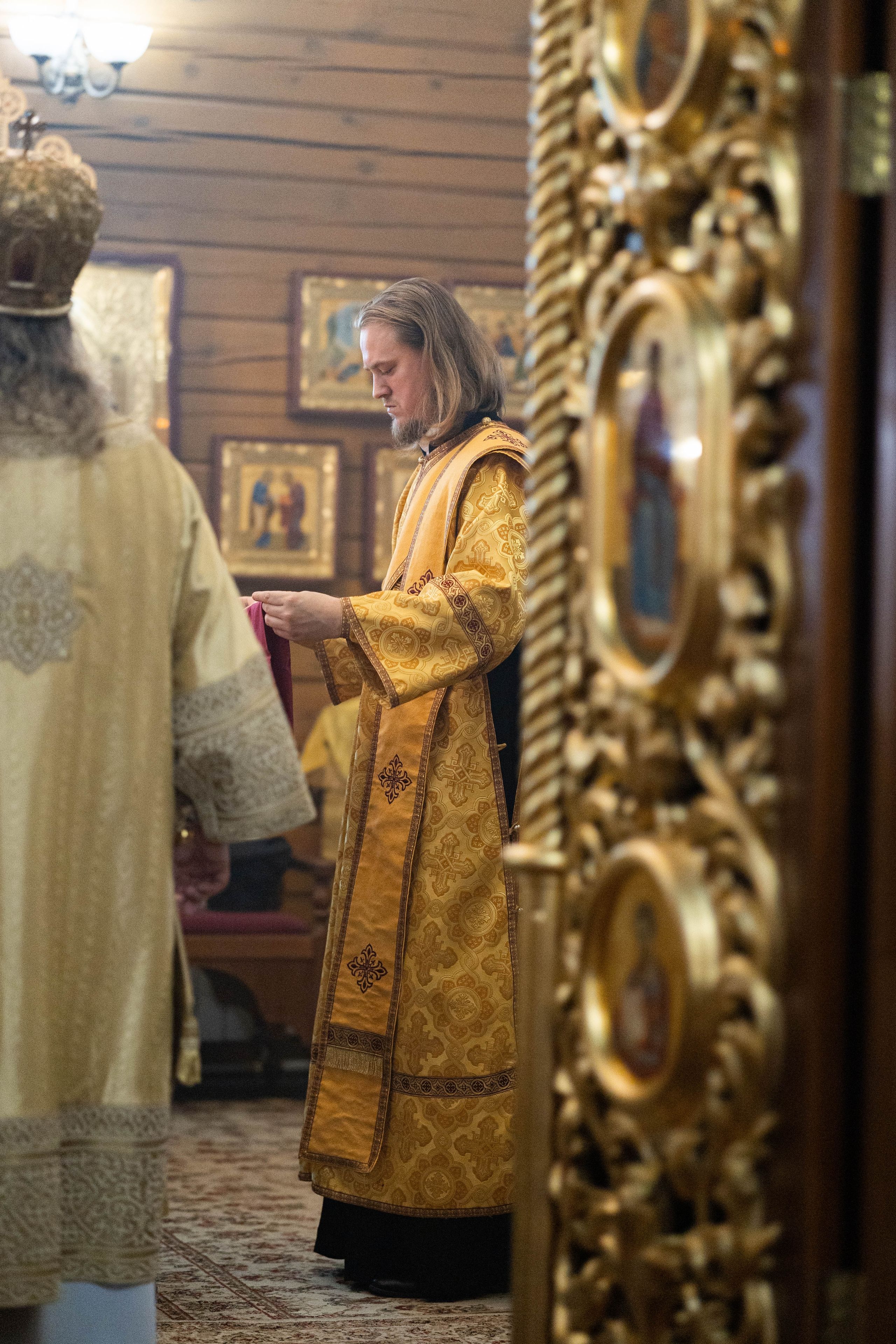 На мирной и сугубой ектениях были вознесены молитвы о Российском воинстве и о мире. По запричастном стихе проповедь произнёс иерей Евгений Марданов. В завершение было совершено славление святителю Тихону, Патриарху Московскому и всея России.