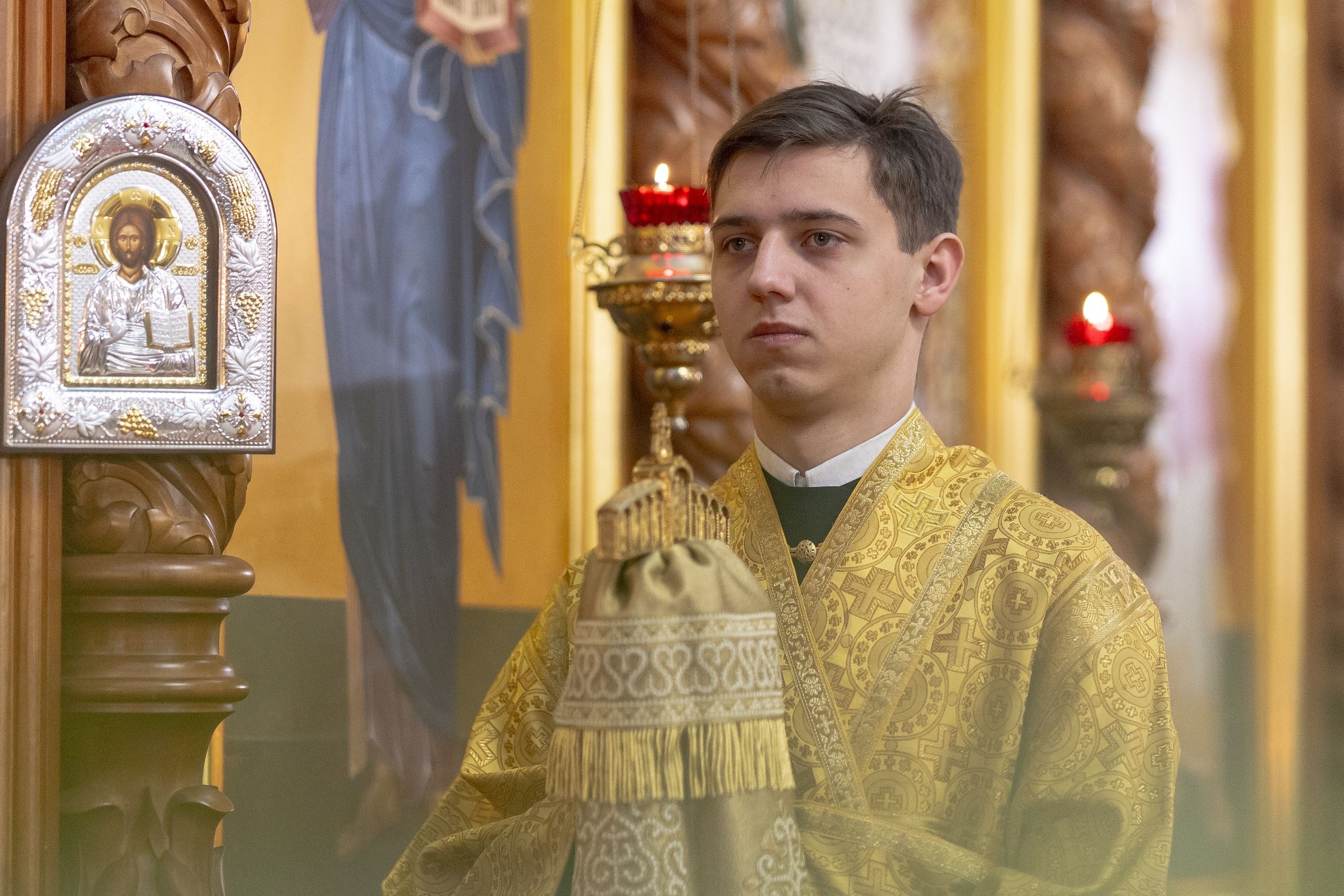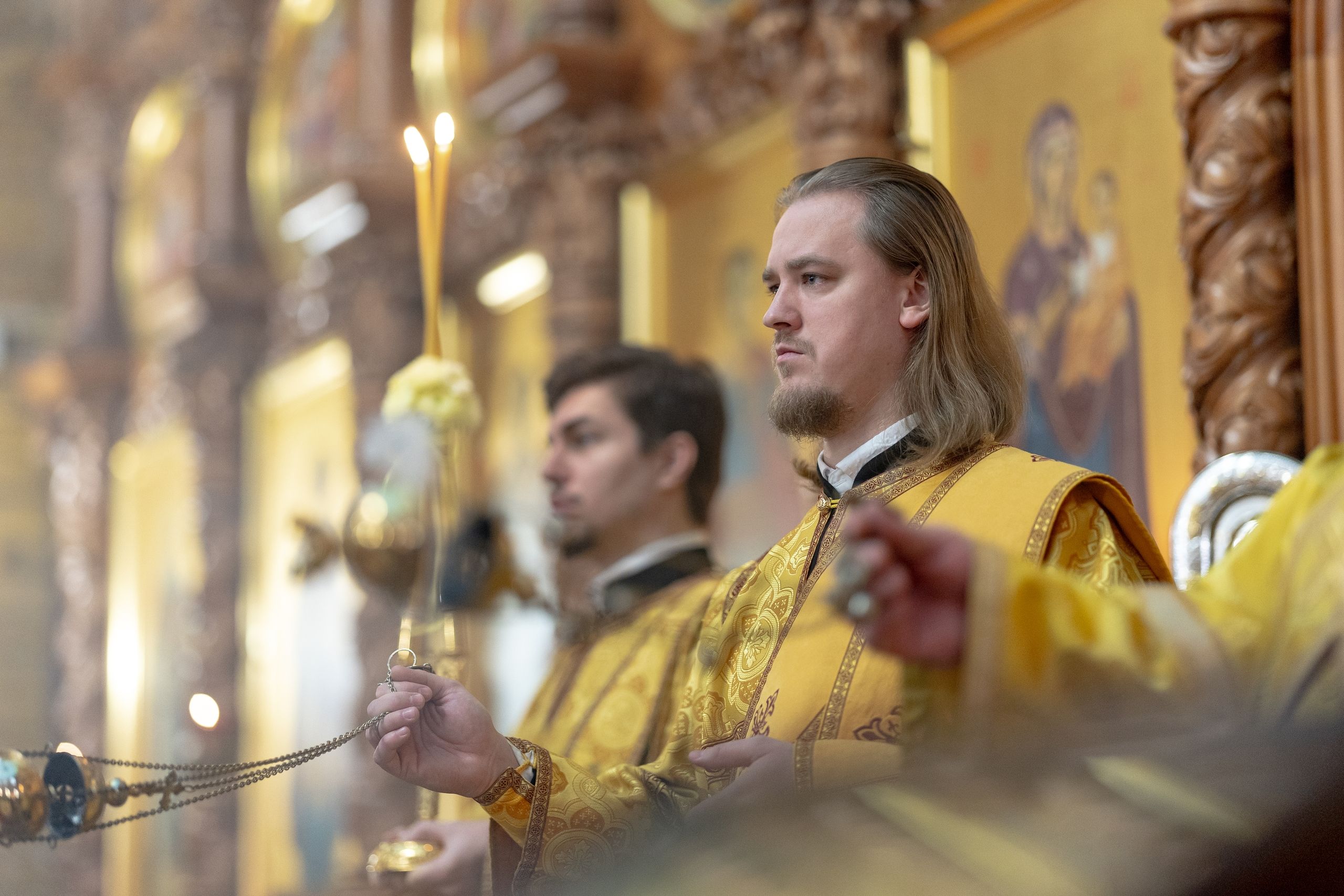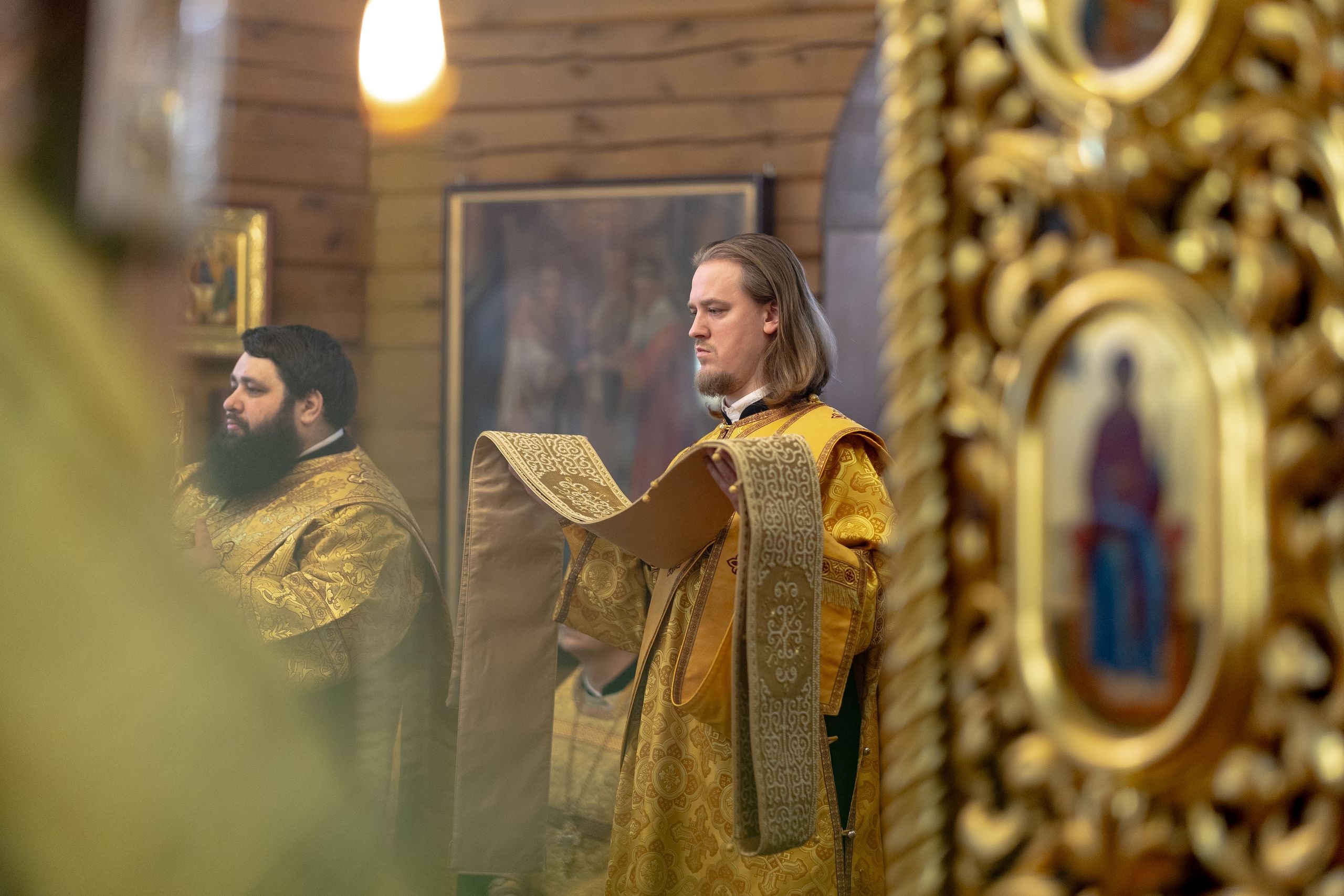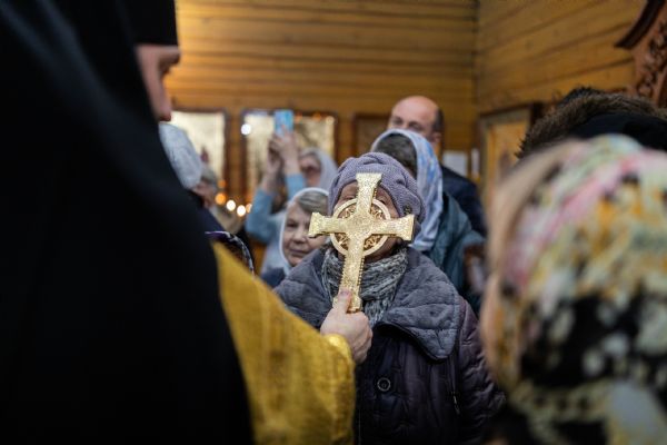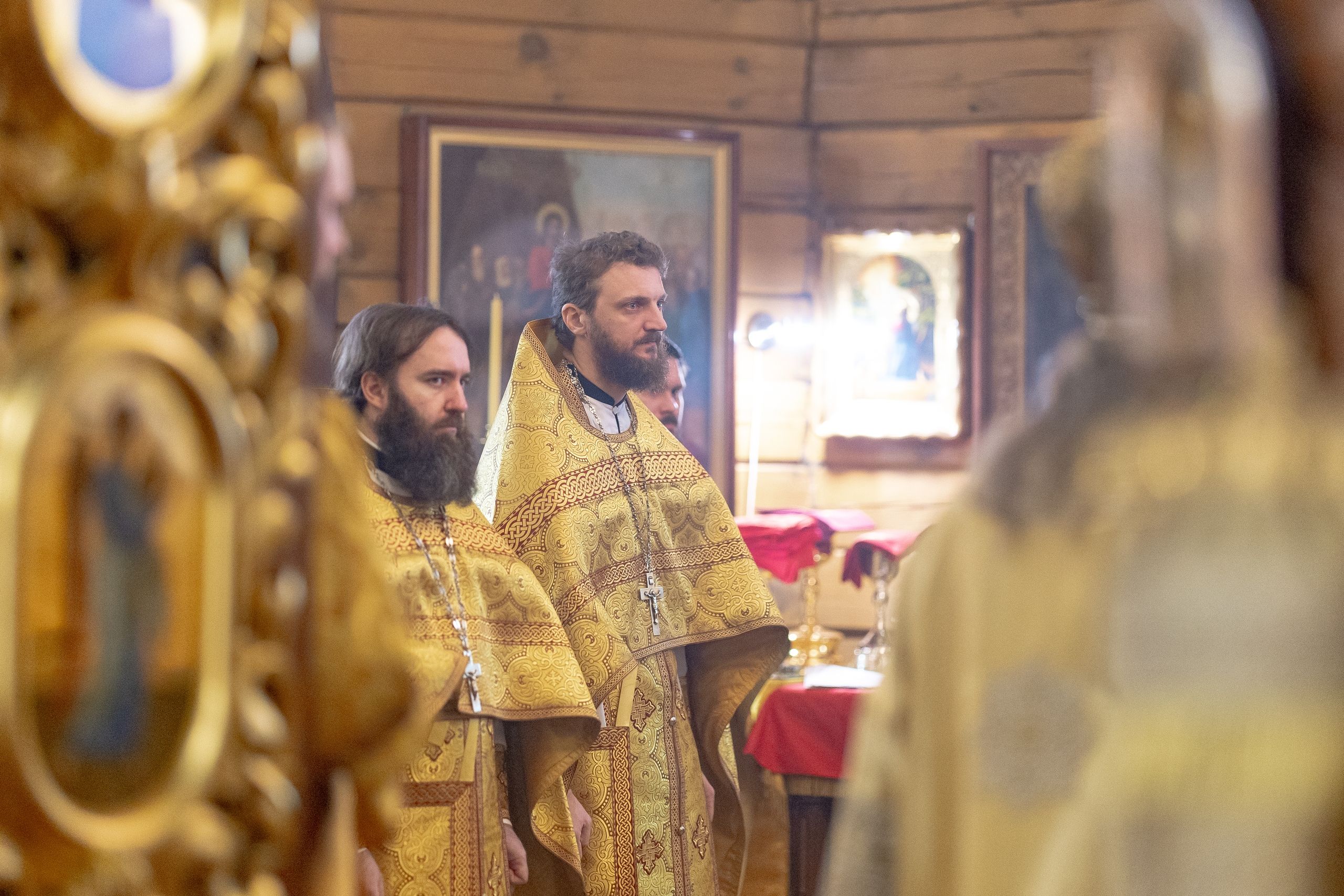На мирной и сугубой ектениях были вознесены молитвы о Российском воинстве и о мире. По запричастном стихе проповедь произнёс иерей Евгений Марданов. В завершение было совершено славление святителю Тихону, Патриарху Московскому и всея России.