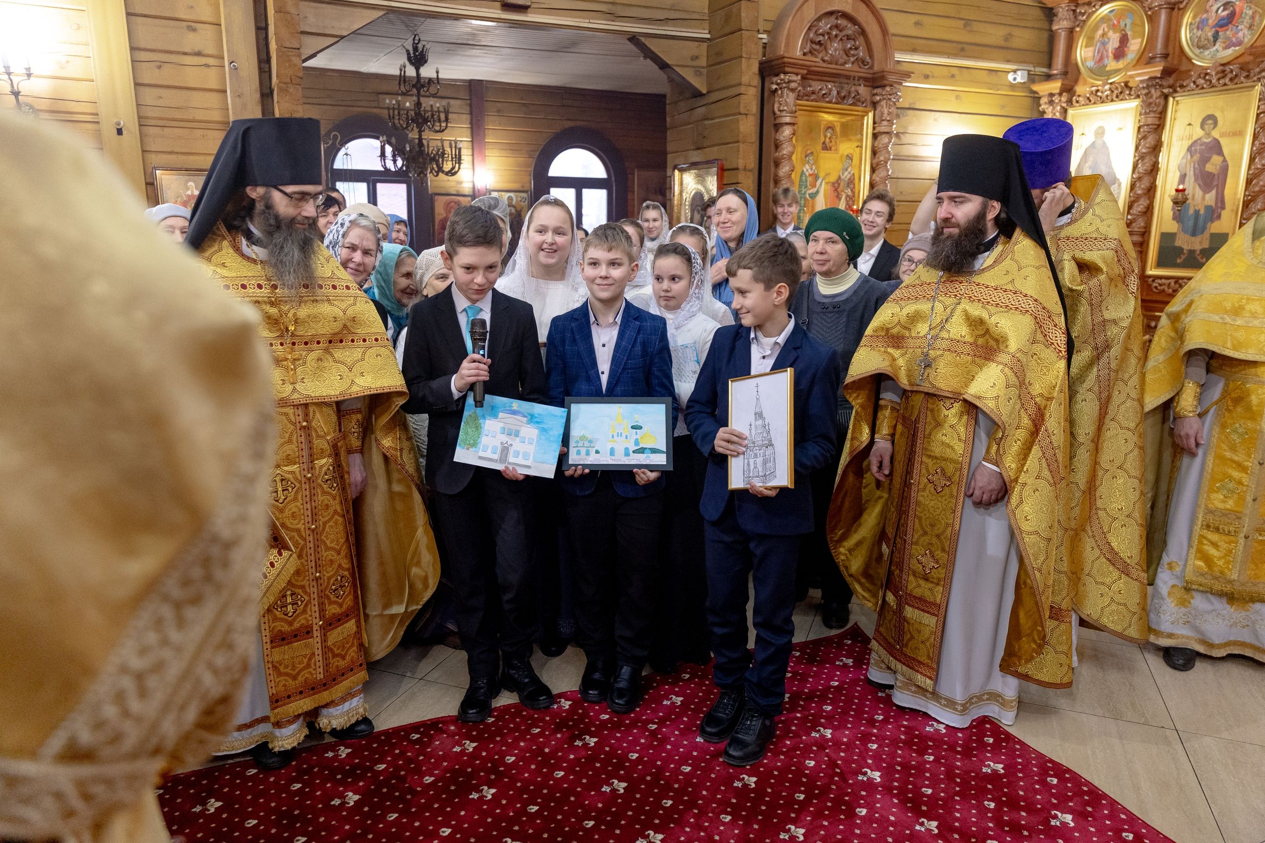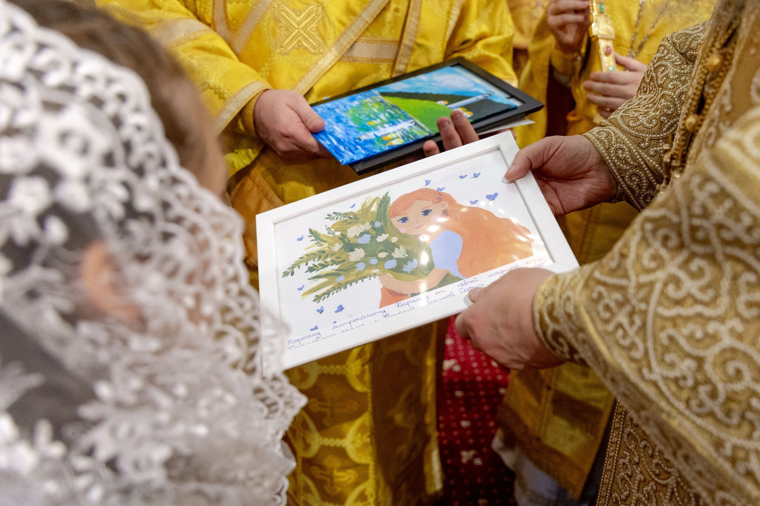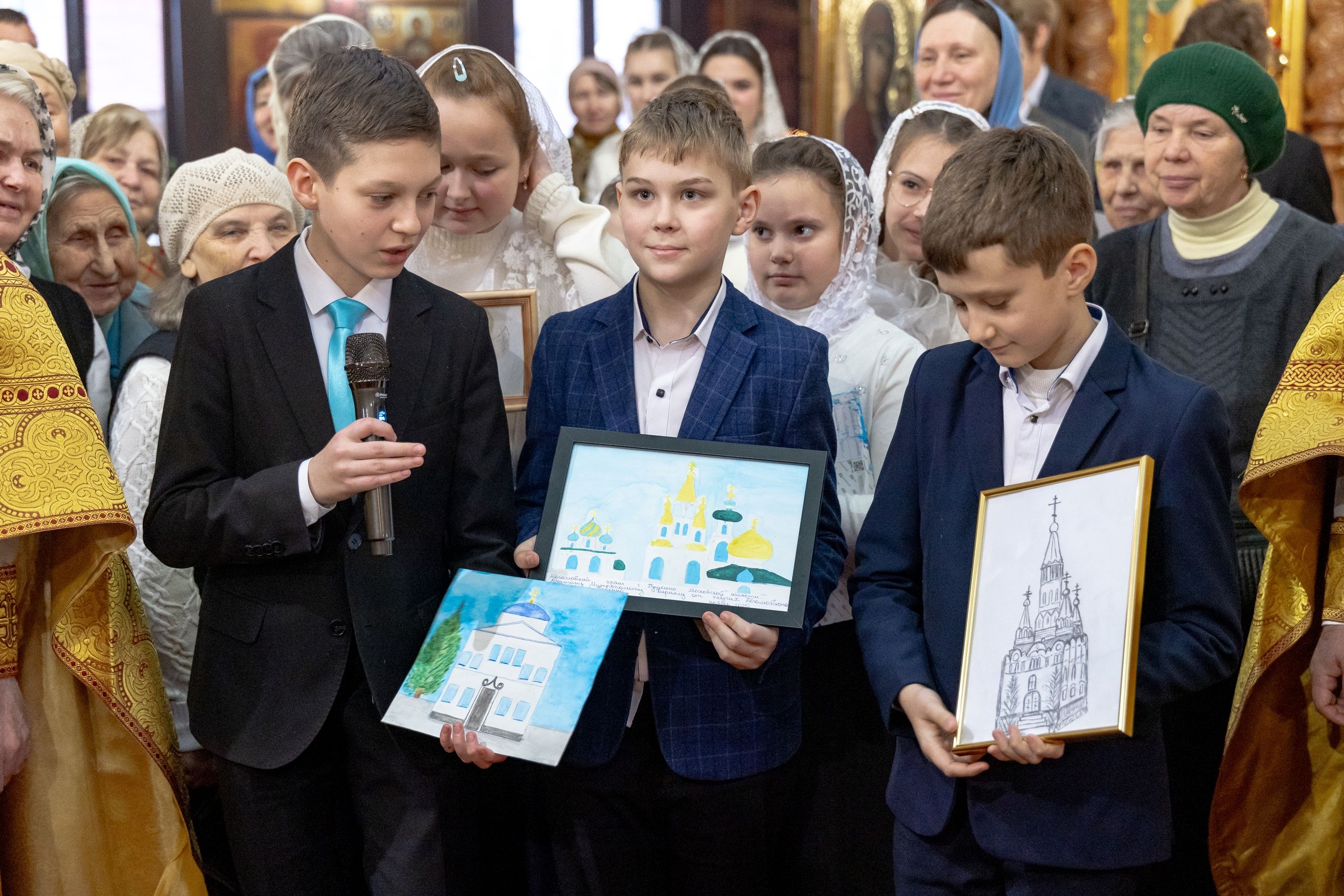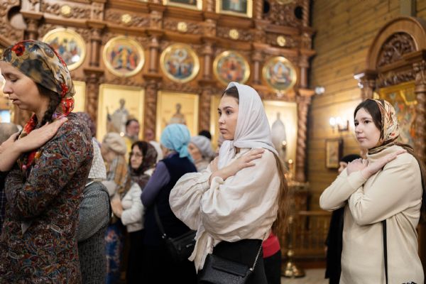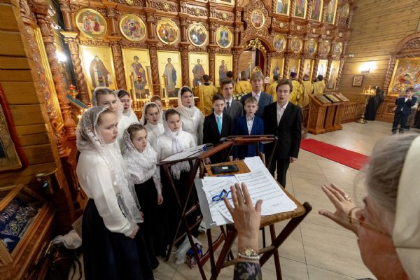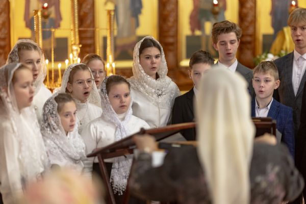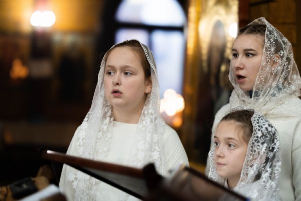 Песнопения исполнили архиерейский смешанный хор Казанской епархии под управлением Марины Литвиненко и детский хор Боголюбского храма города Пушкино (Московская область) под управлением матушки Надежды Клименко.