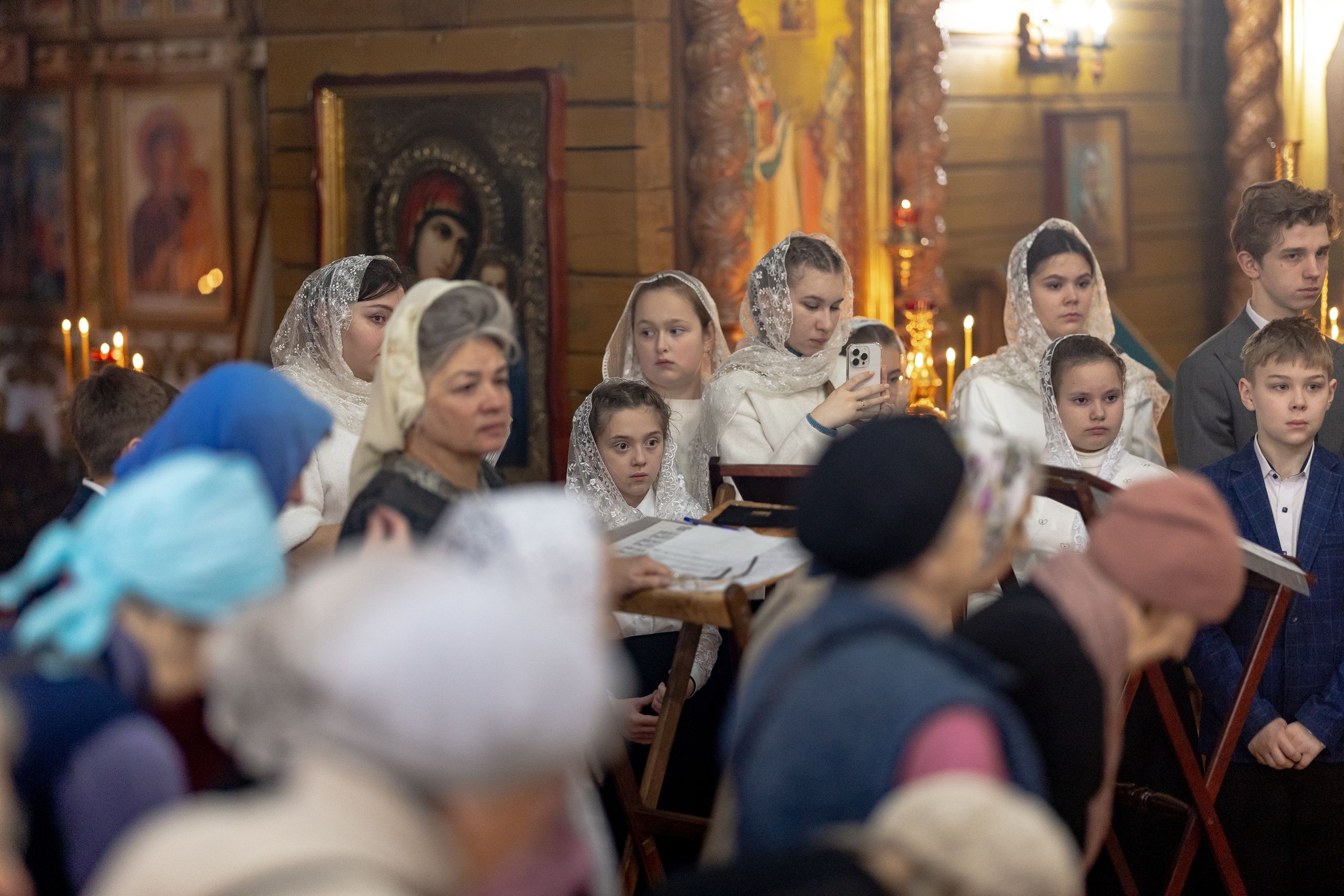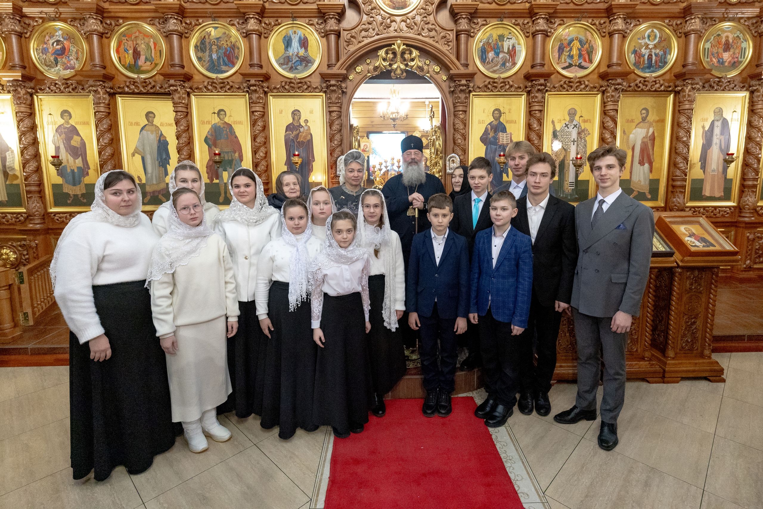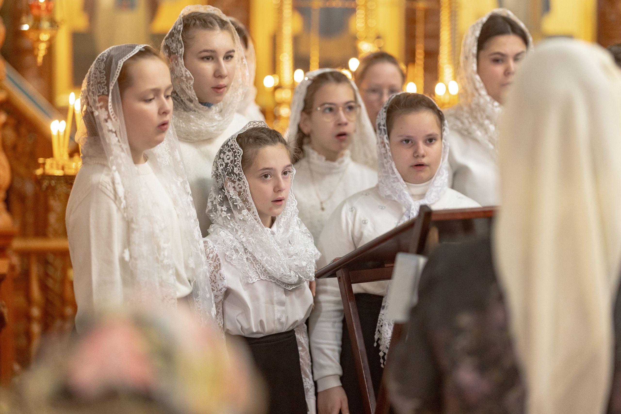 Песнопения исполнили архиерейский смешанный хор Казанской епархии под управлением Марины Литвиненко и детский хор Боголюбского храма города Пушкино (Московская область) под управлением матушки Надежды Клименко.