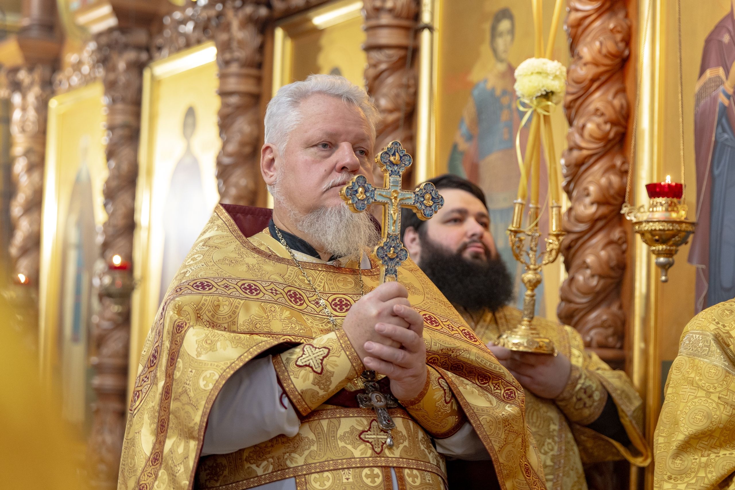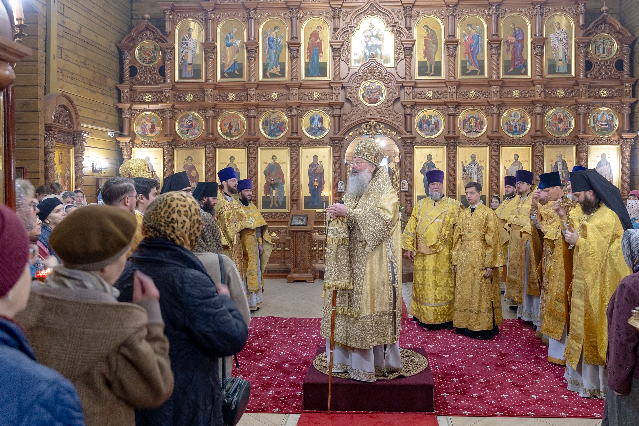 Вы, прихожане этого прихода, в прямом смысле тихоновцы. На приходе есть храм святителя Тихона, сегодня здесь престольный праздник. Сегодня мы вспоминаем избрание святителя Тихона на Московский Патриарший престол. Затем были и другие Патриархи. Каждый Предстоятель Церкви, включая нашего Святейшего Патриарха Кирилла, несёт невозможный по человеческим меркам крест служения Богу, Отечеству и людям. И поэтому мы всегда сугубо молимся о здравии Святейшего Патриарха, молимся о том, чтобы Господь дал нашему Первосвятителю благодать, силу духа и мудрость непоколебимо вести корабль церковный по этому житейскому морю. Дай Бог, чтобы этот корабль, на котором все мы находимся, достиг Царства Небесного.