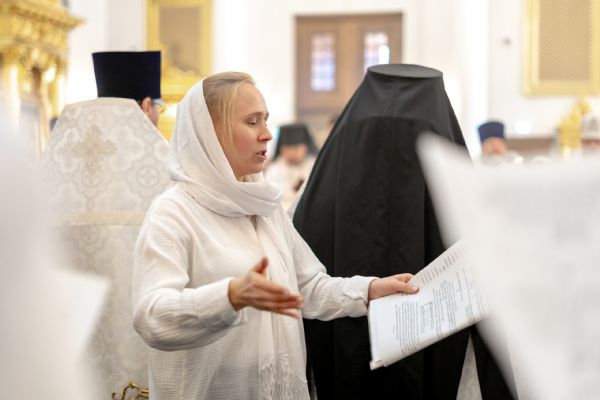Песнопения исполнил архиерейский смешанный хор под управлением Марины Литвиненко.