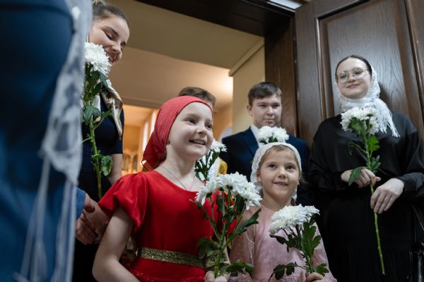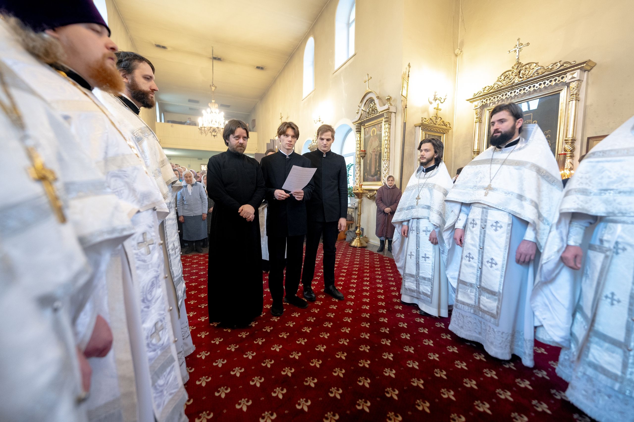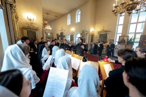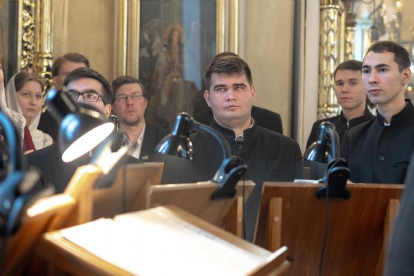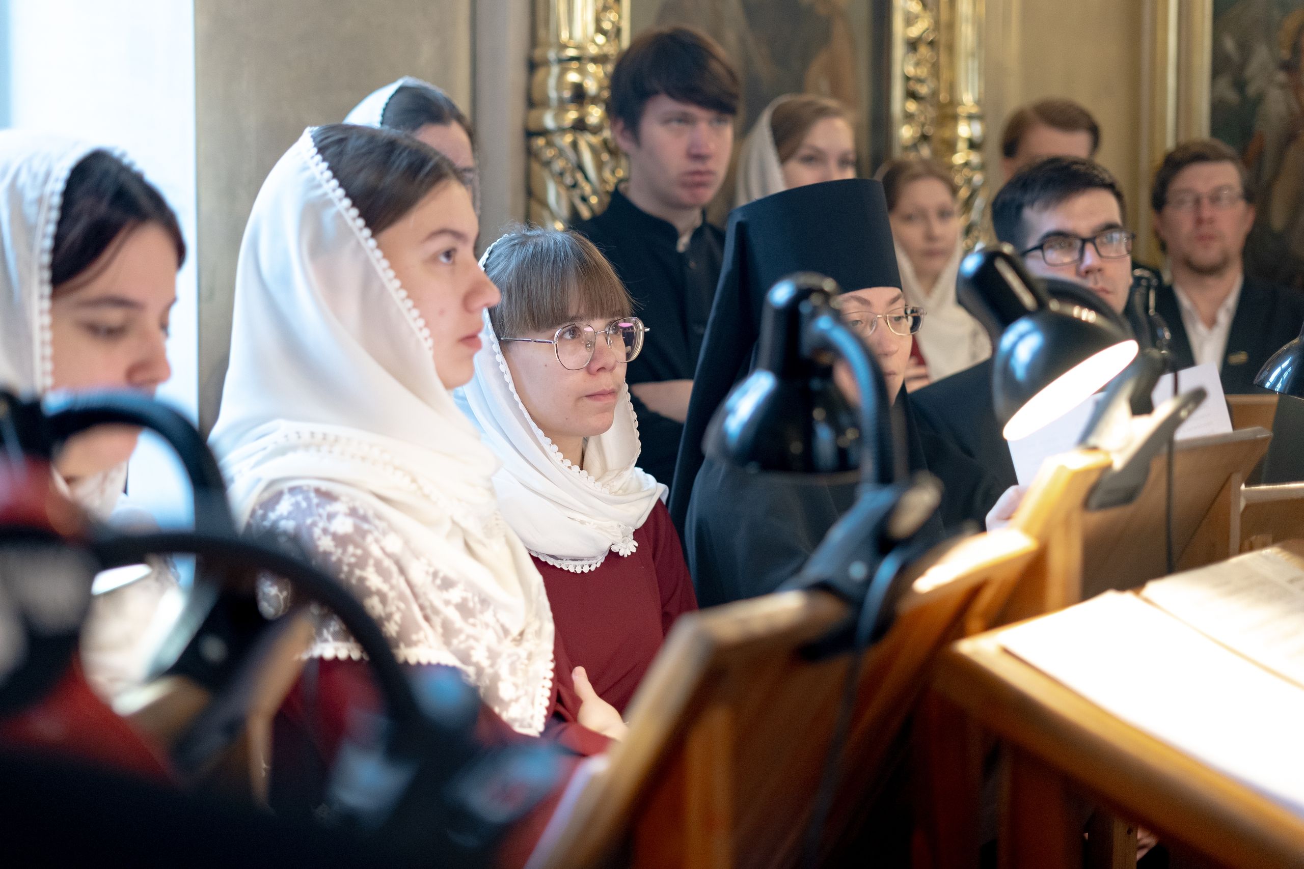 Богослужебные песнопения исполнил хор студентов под управлением Дениса Рогова.